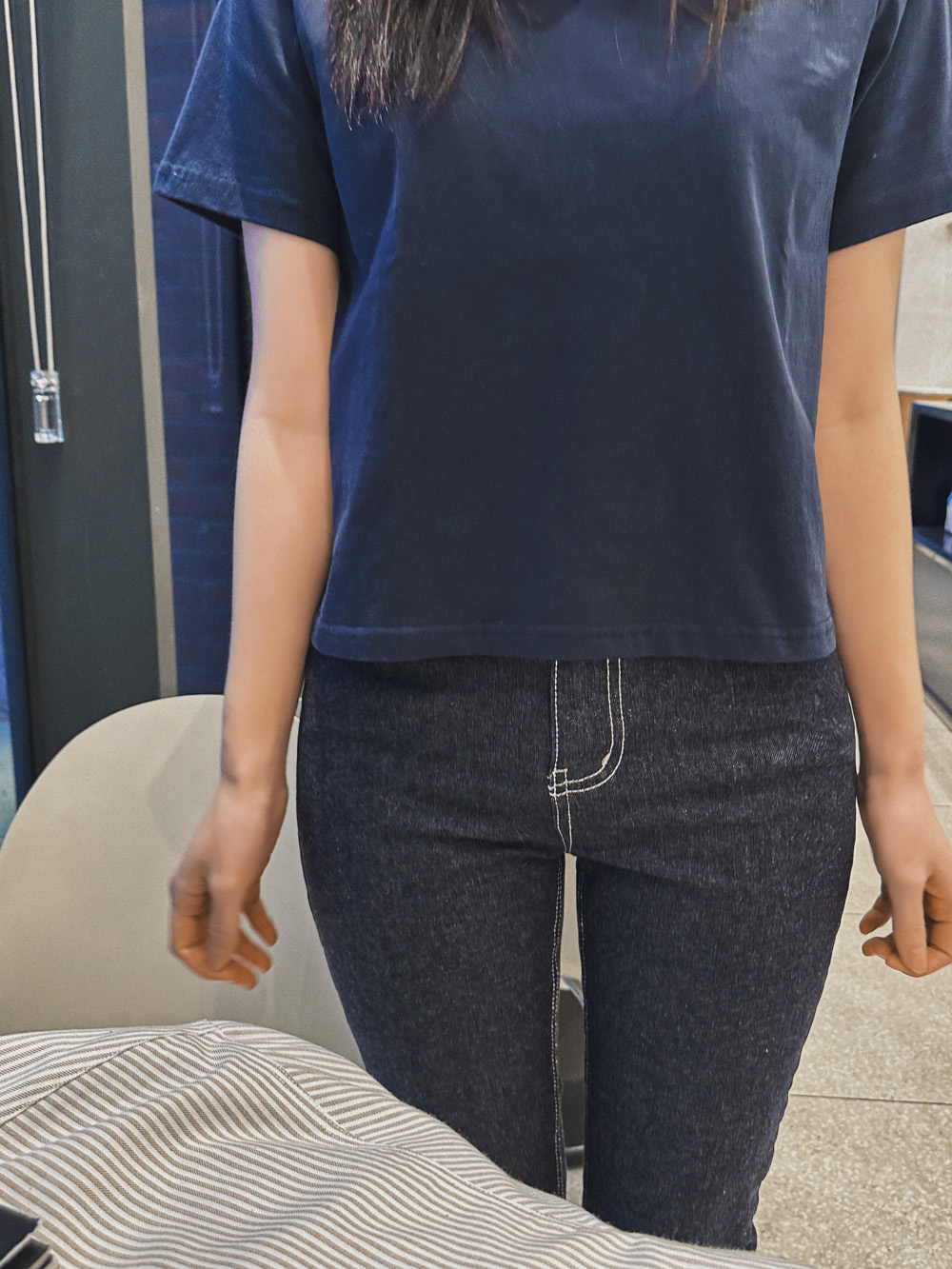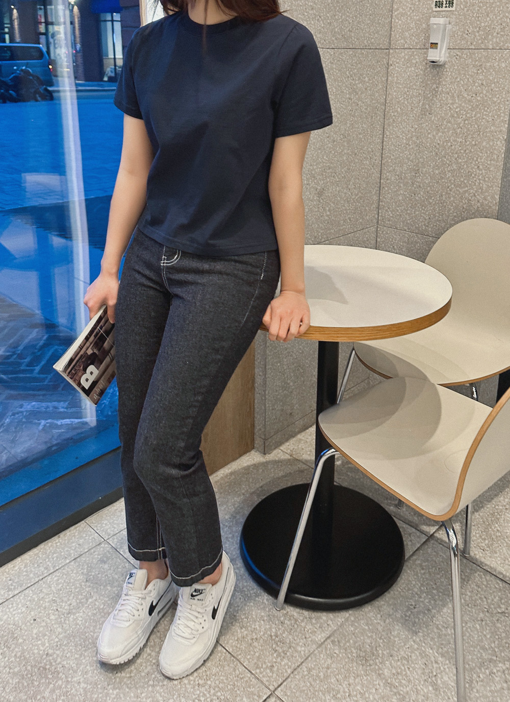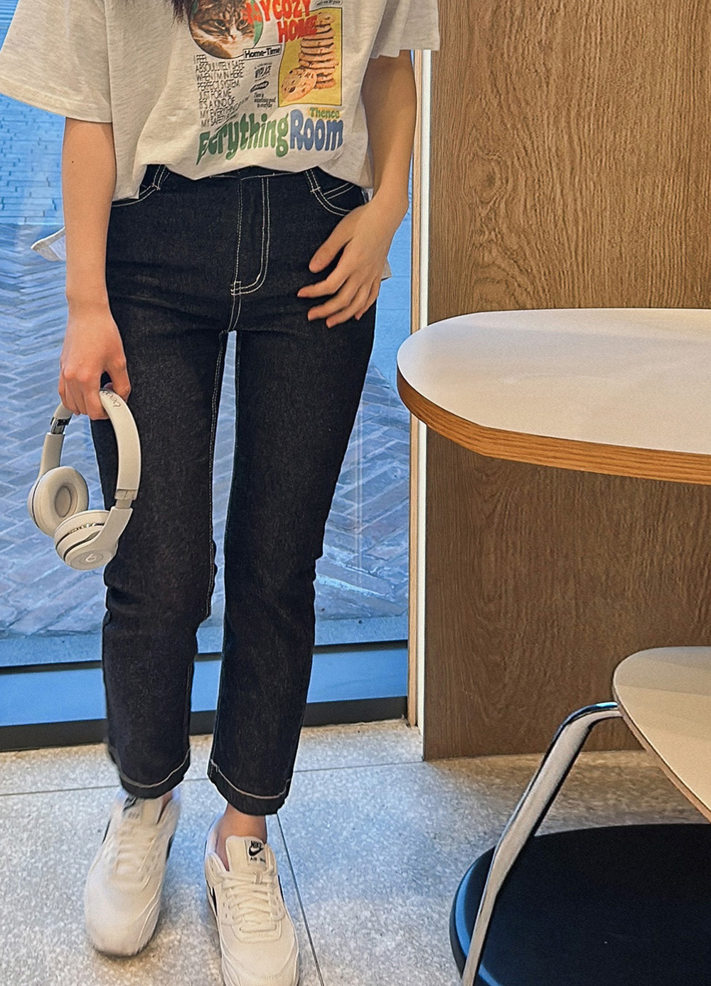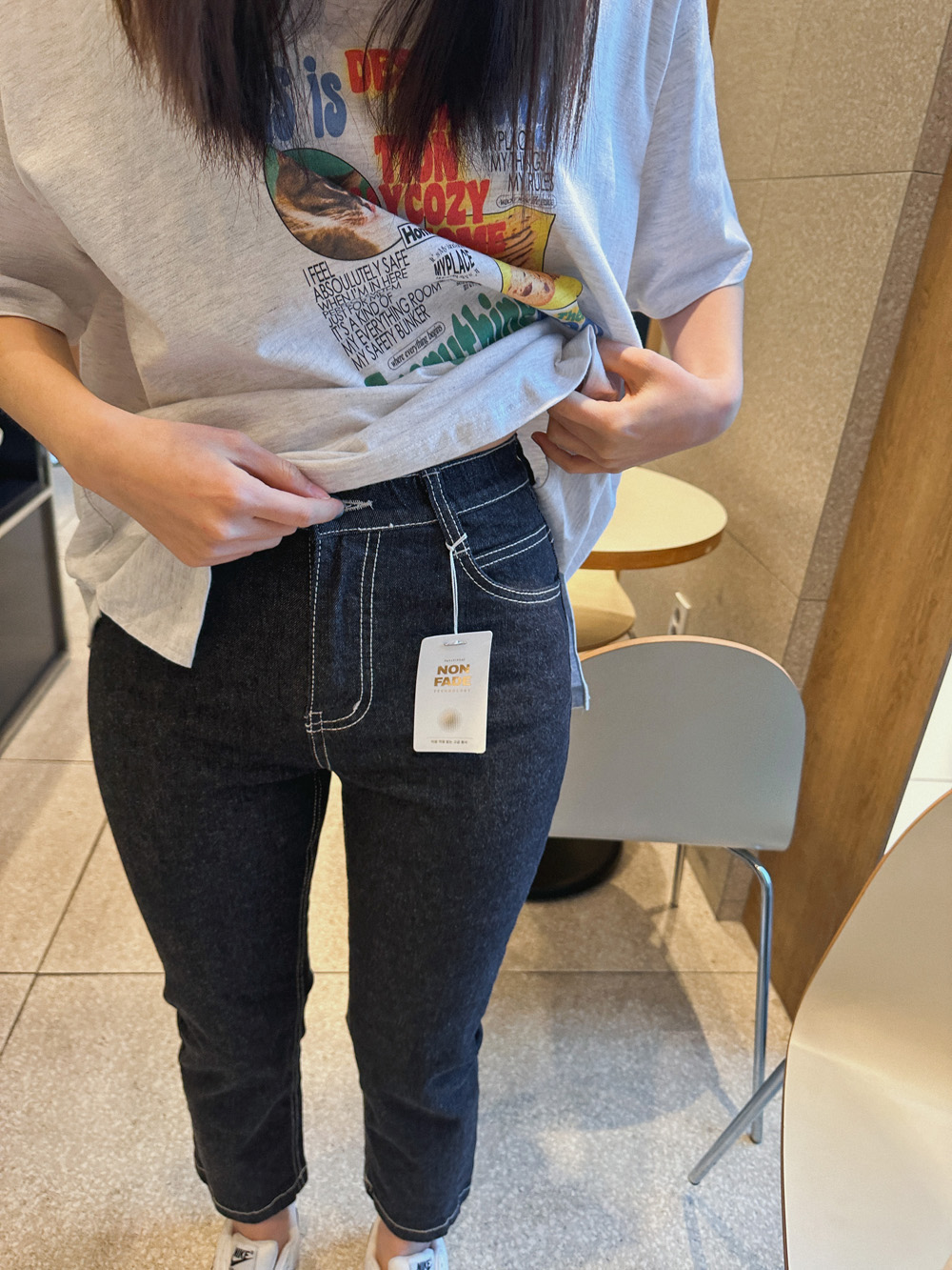 Dye-free raw spandex cropped jeans_S,M,L-1color. Don't worry about migration - stitch color matching, wear it stylishly - Styletiva