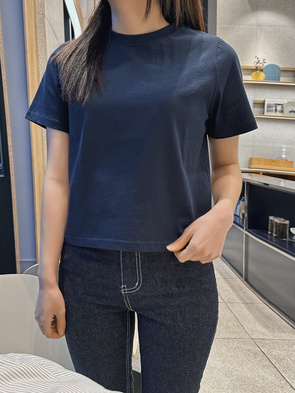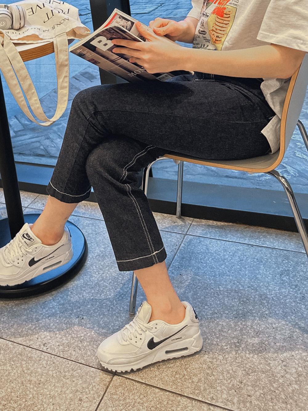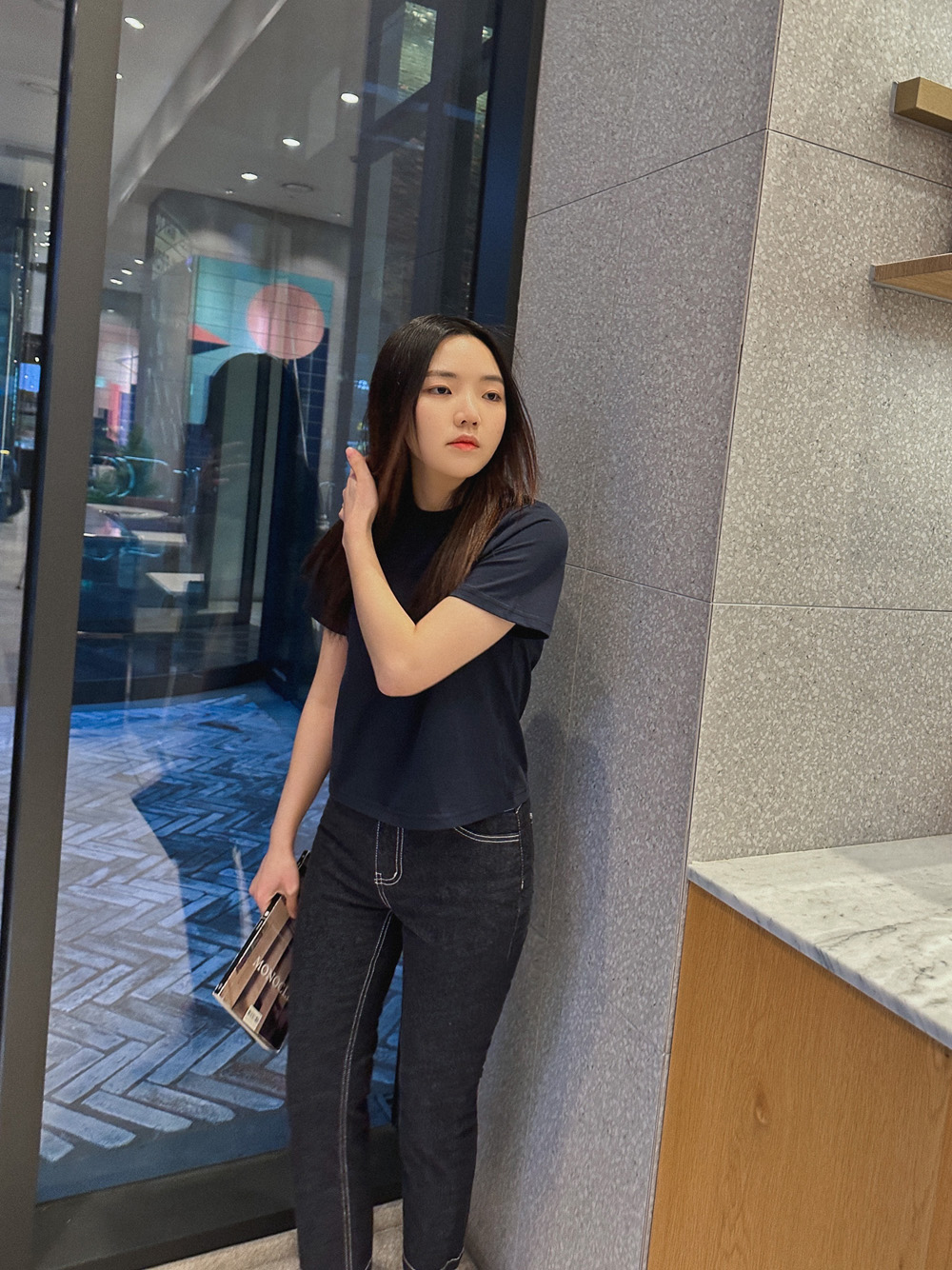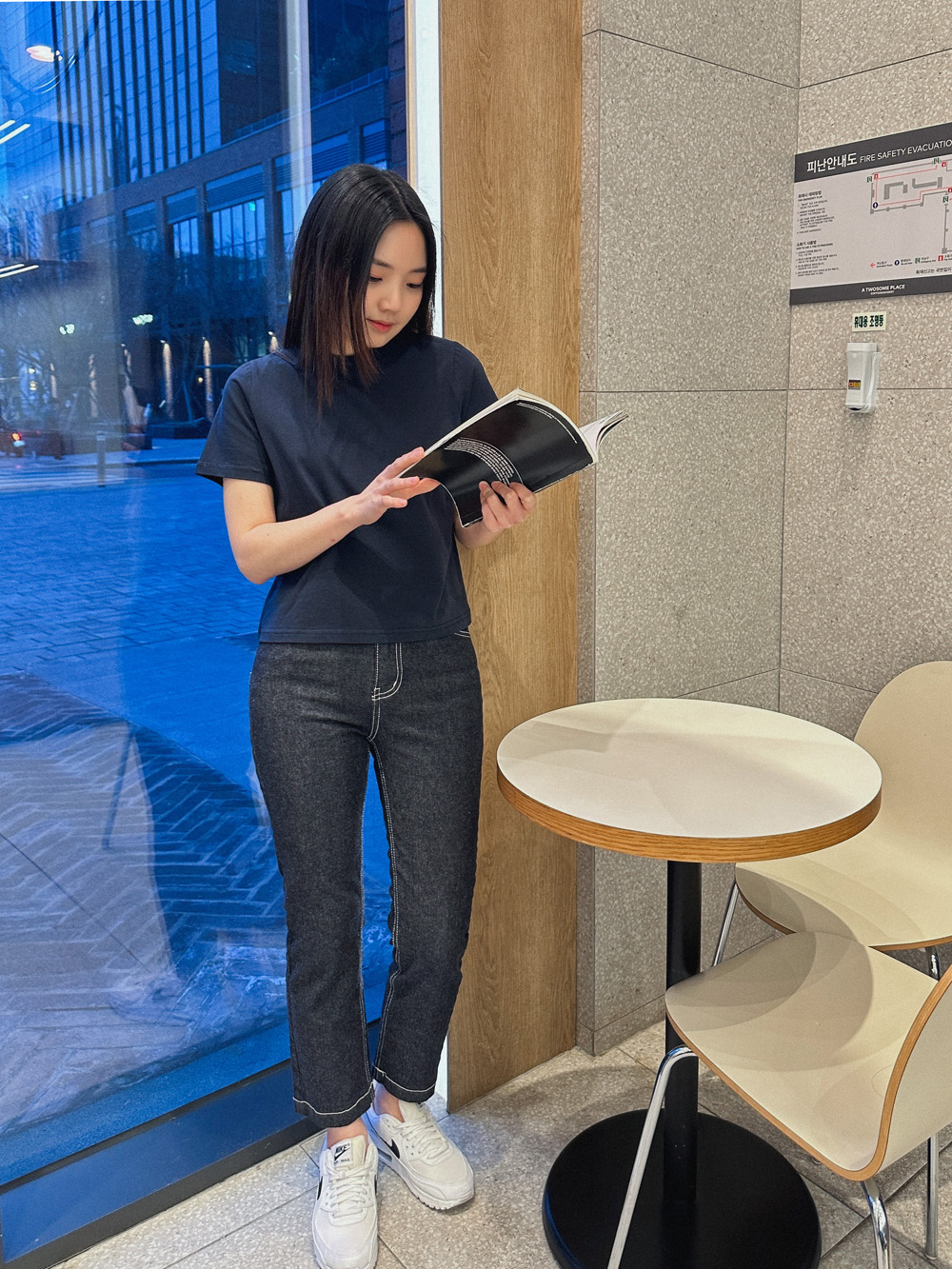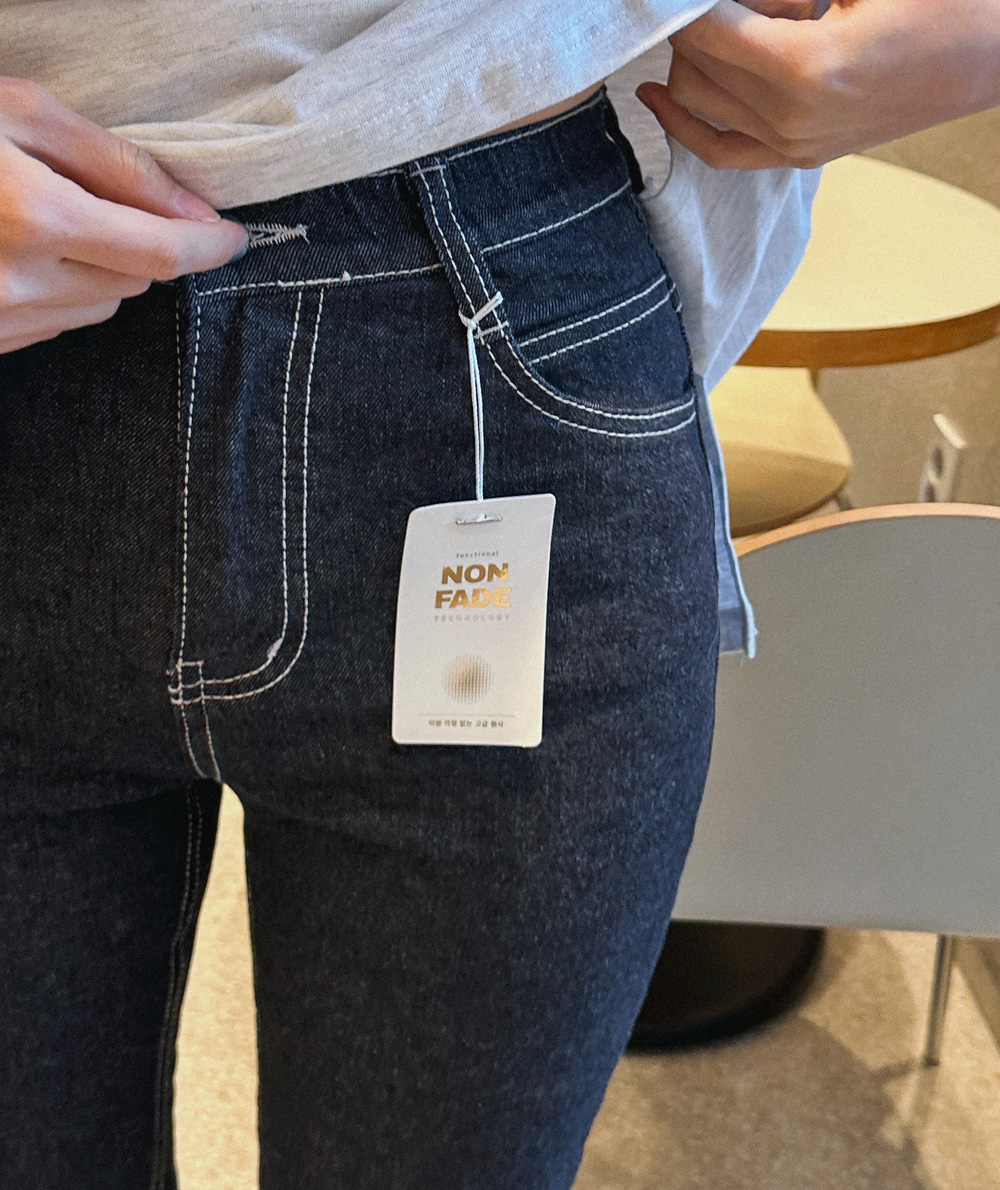 Dye-free raw spandex cropped jeans_S,M,L-1color. Don't worry about migration - stitch color matching, wear it stylishly - Styletiva