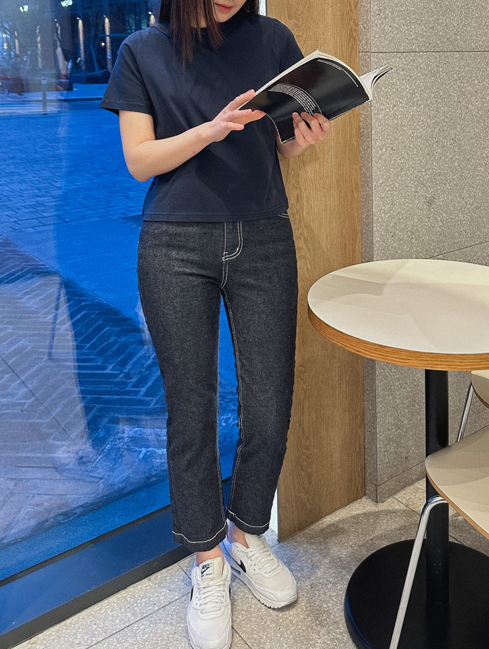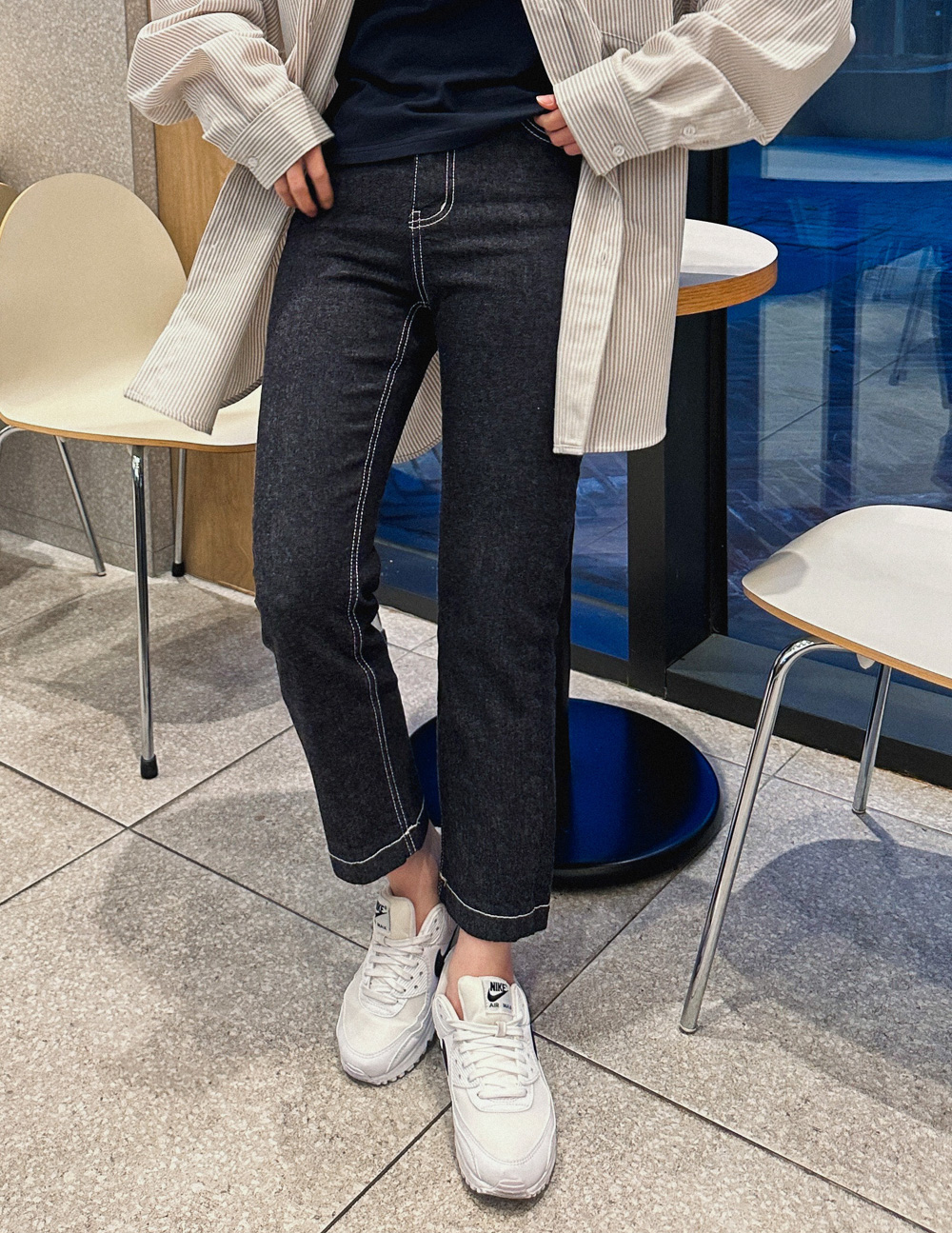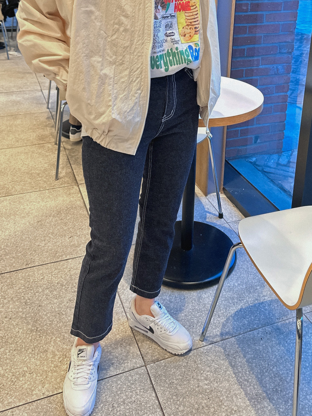 이염없는 생지스판 크롭청바지_S,M,L-1color. 이염 걱정 없어요-스티치배색, 멋스럽게 입어요 - 스타일티바