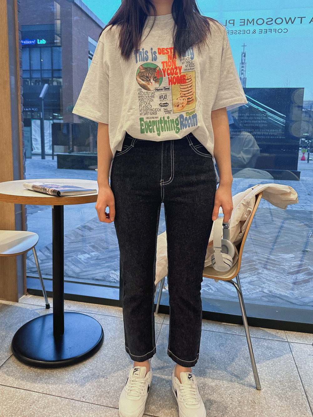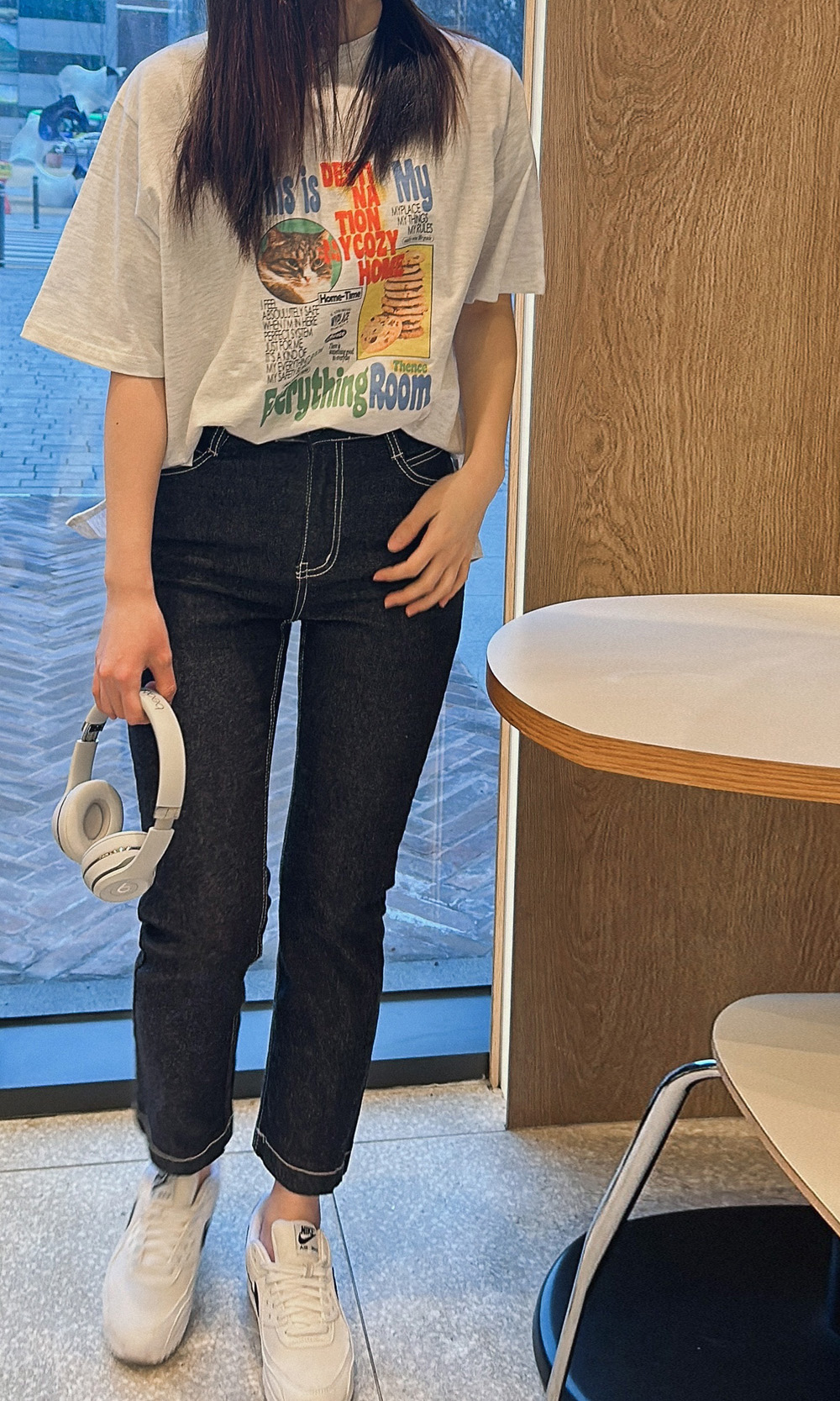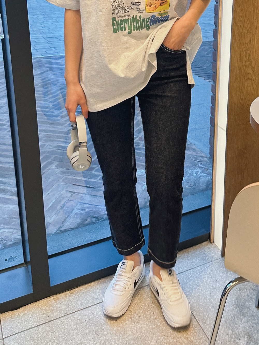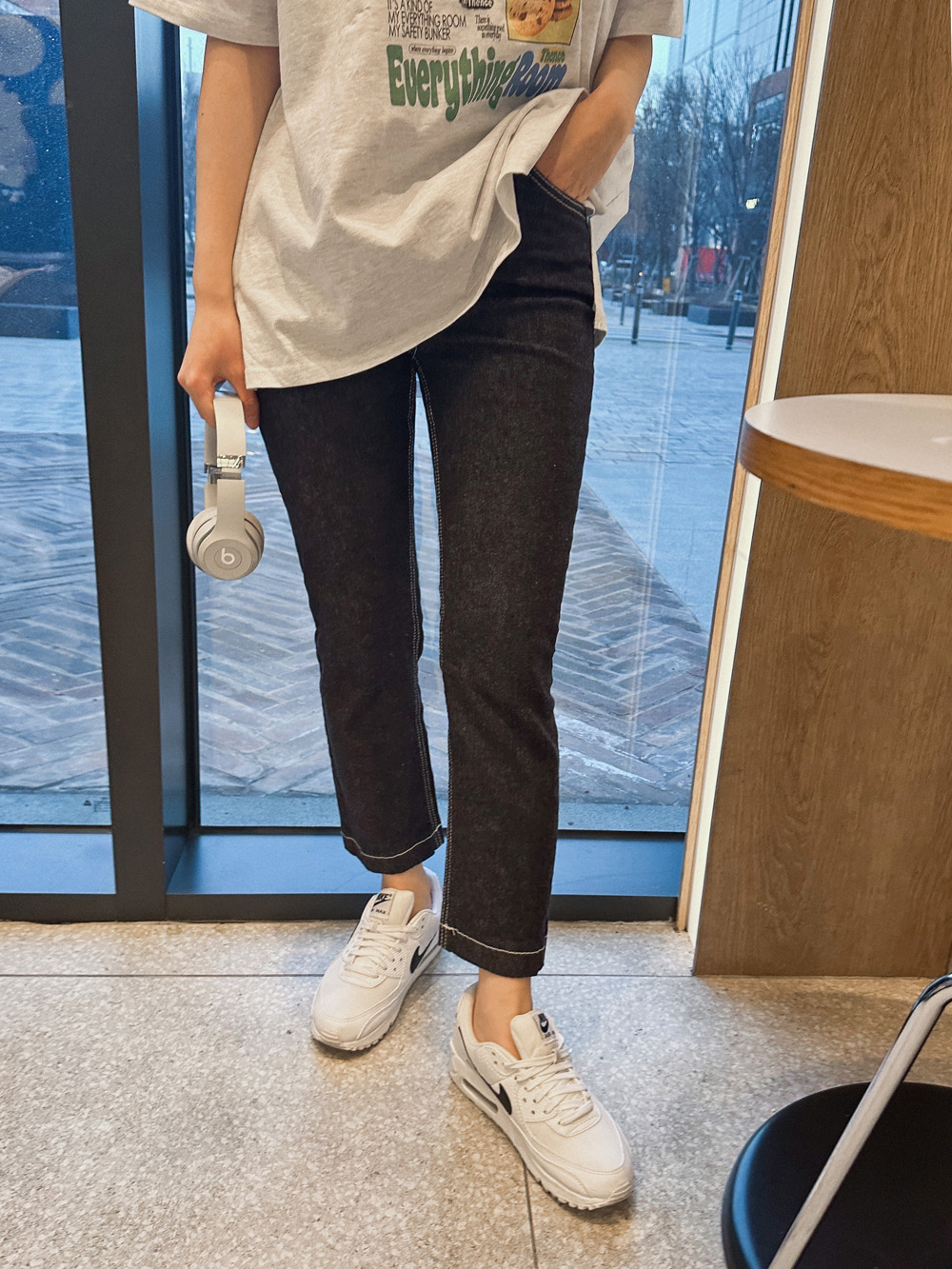 이염없는 생지스판 크롭청바지_S,M,L-1color. 이염 걱정 없어요-스티치배색, 멋스럽게 입어요 - 스타일티바