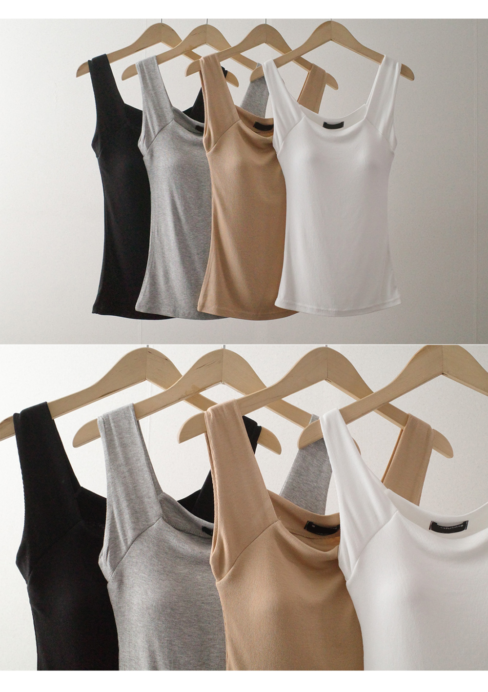 Square corrugated bra cap sleeveless-4color, full of rayon spandex, built-in cap-wear comfortably in 4 seasons - Styletiva