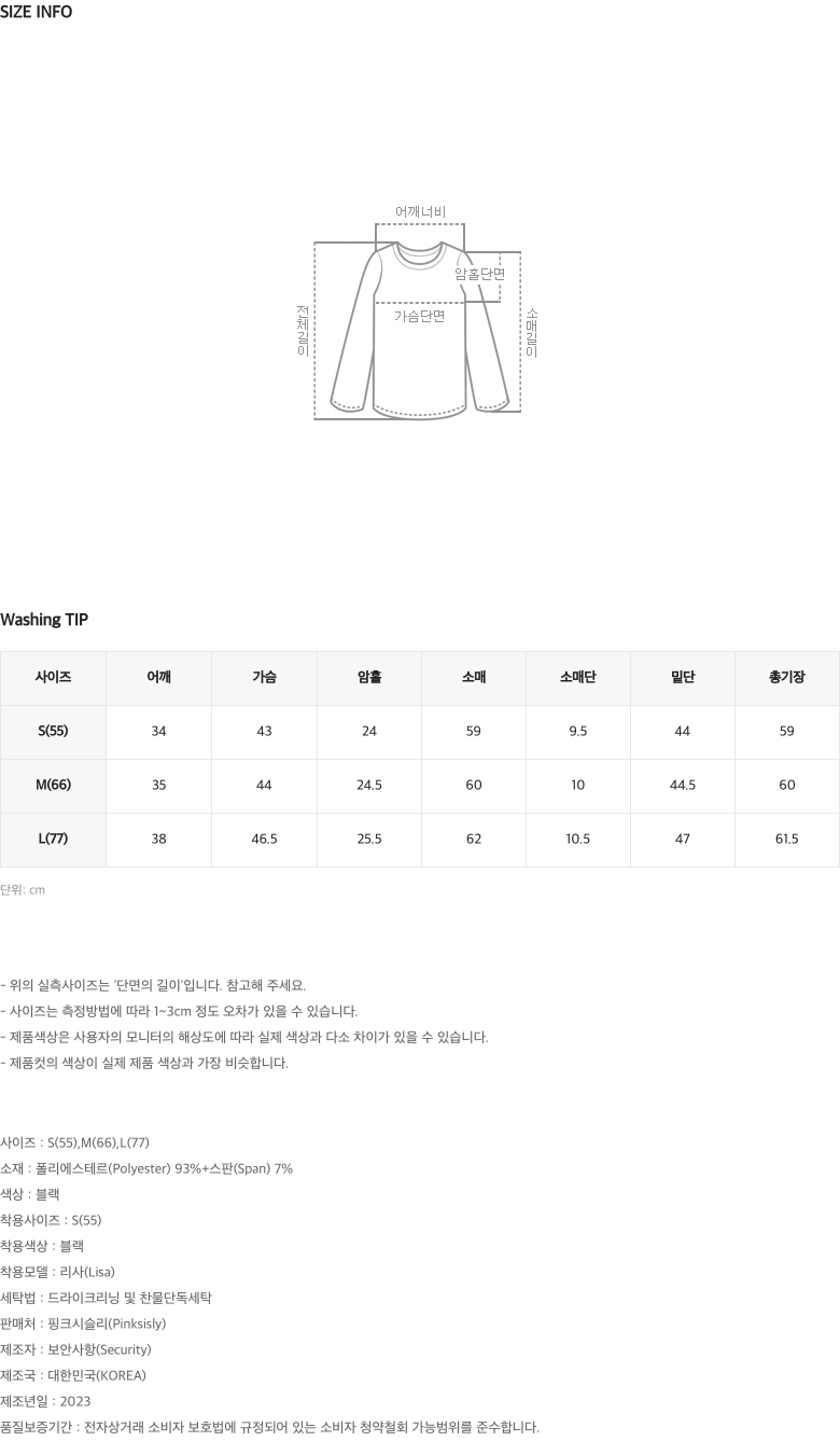 | 비침 | 전체적으로 비침이 없습니다 |
