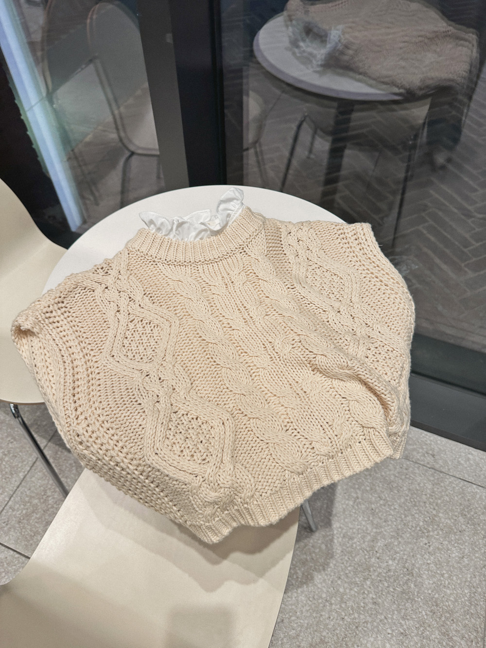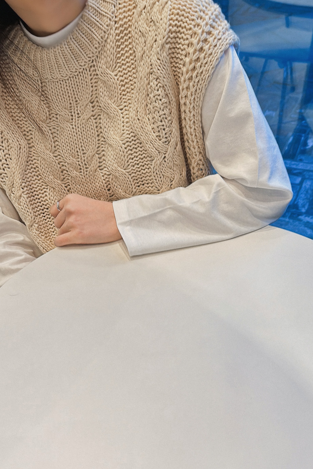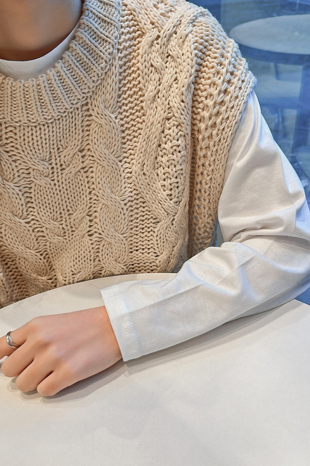 Cap round knit vest-3color, material like knitting-lightly layered - Styletiva