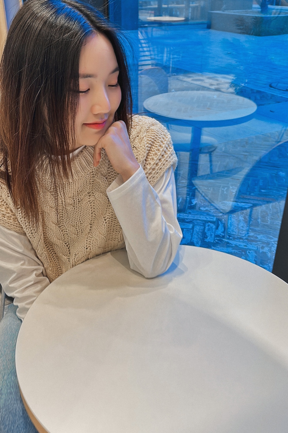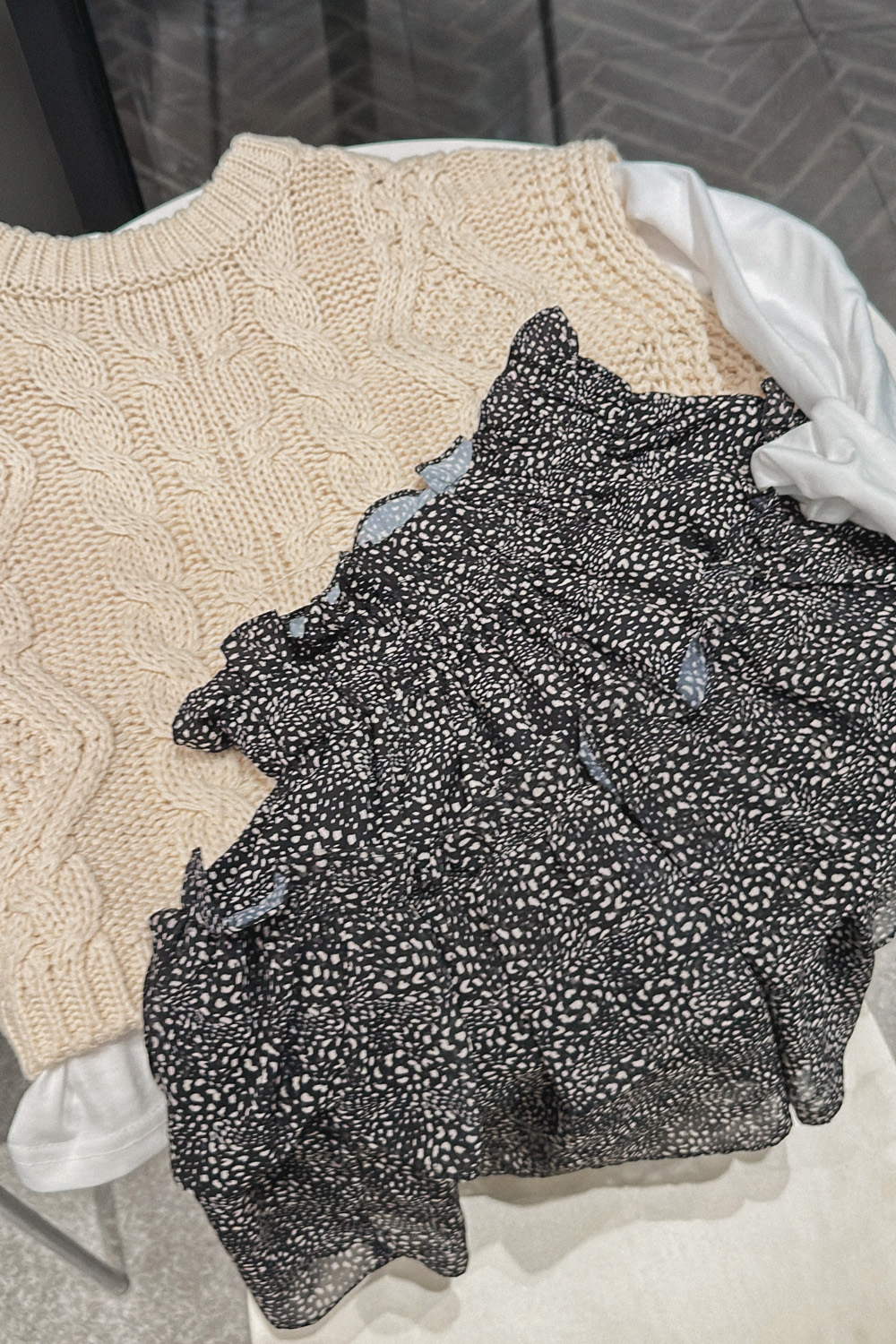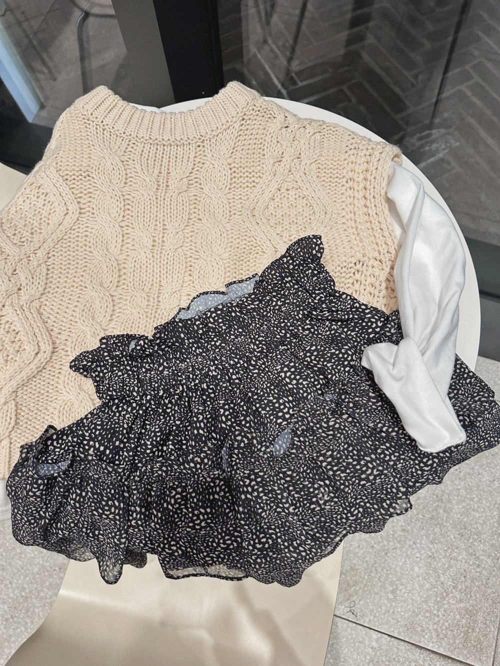 Cap round knit vest-3color, material like knitting-lightly layered - Styletiva