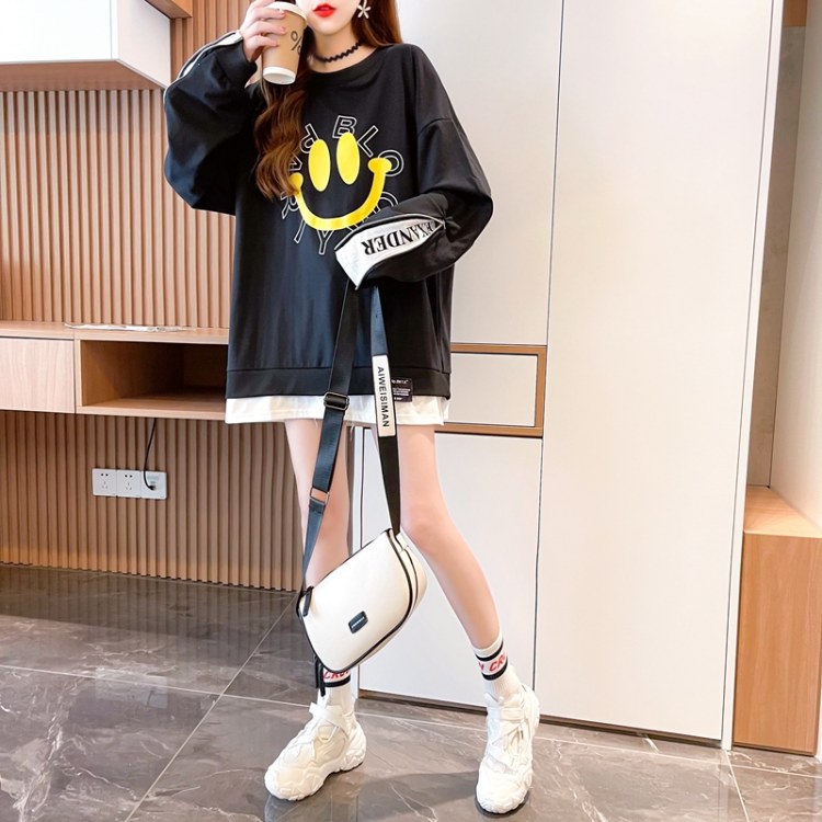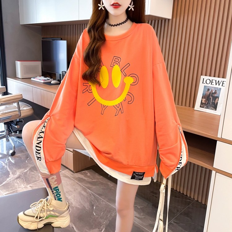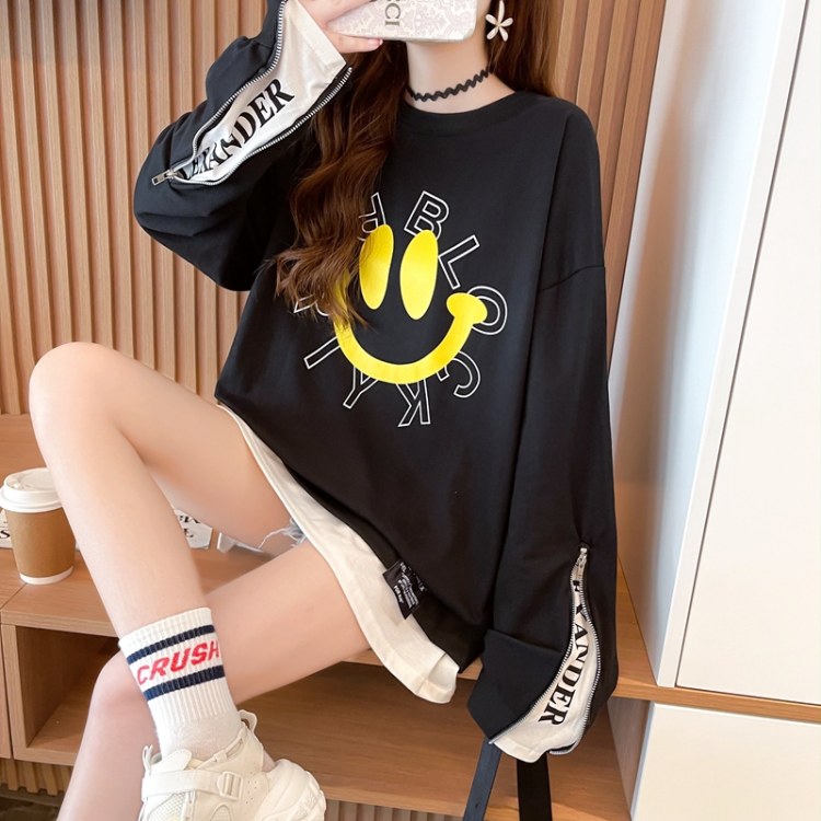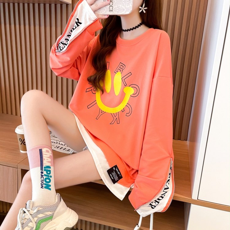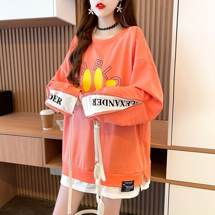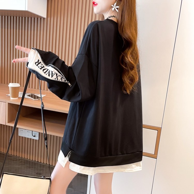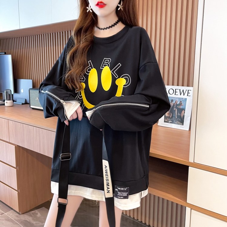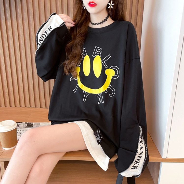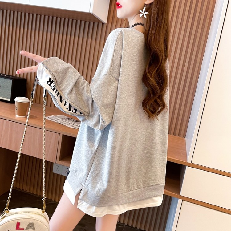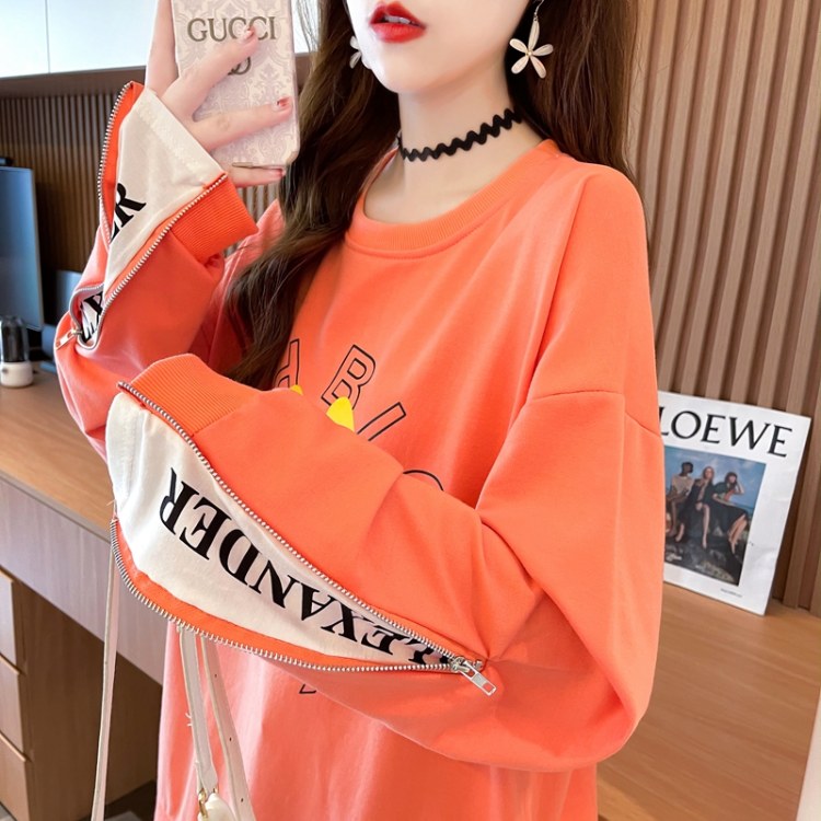 Cereah Sleeve Zipper English Boxy Sweatshirt
