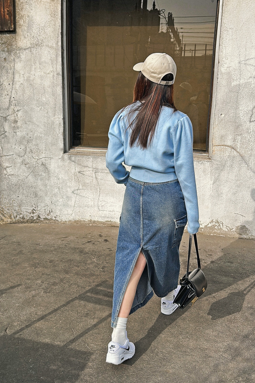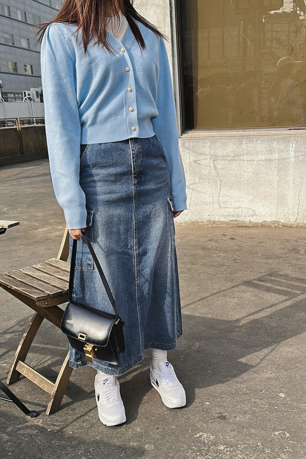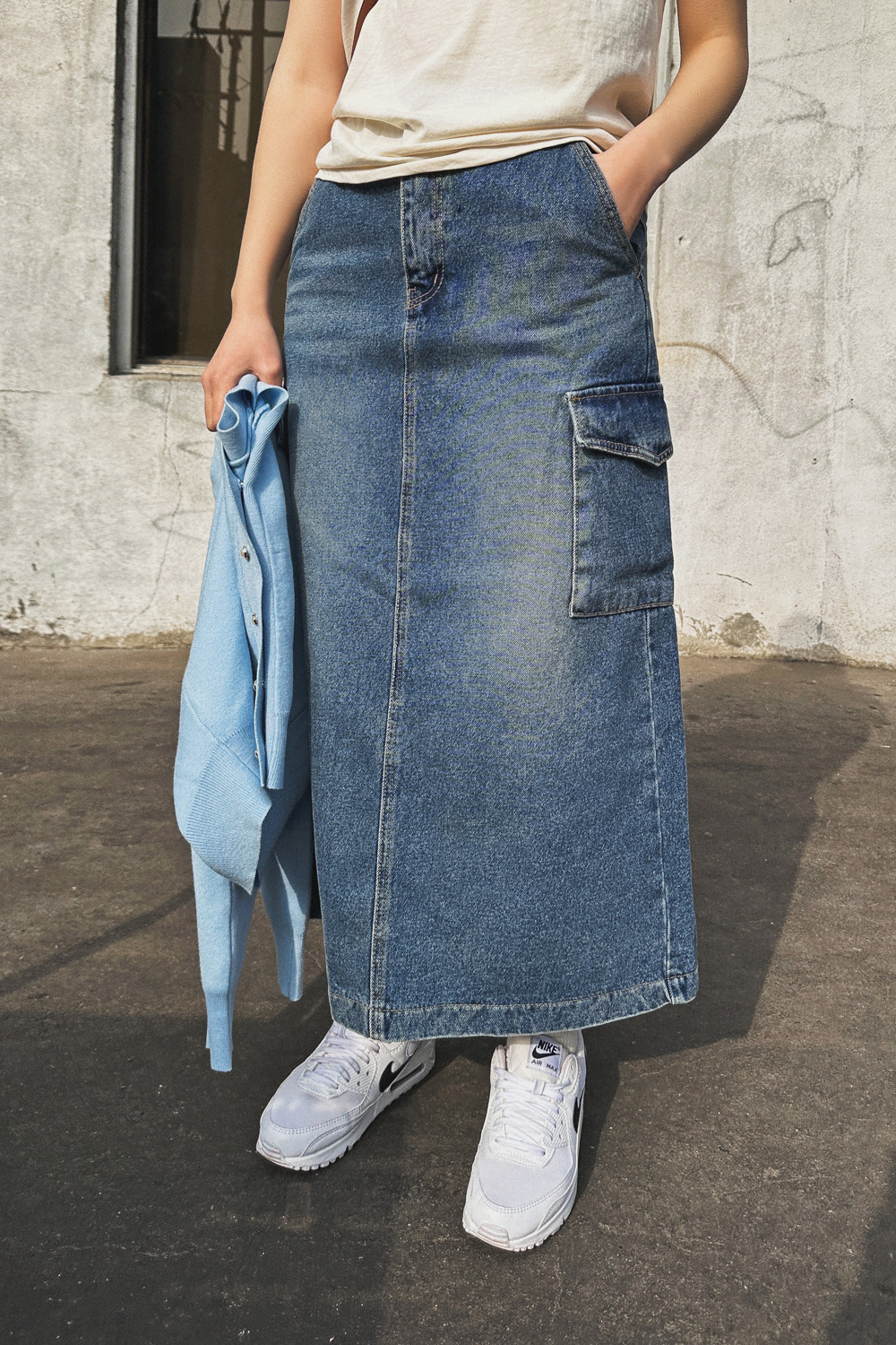 Cargo long blue skirt_S,M,L-1color - Styletiva