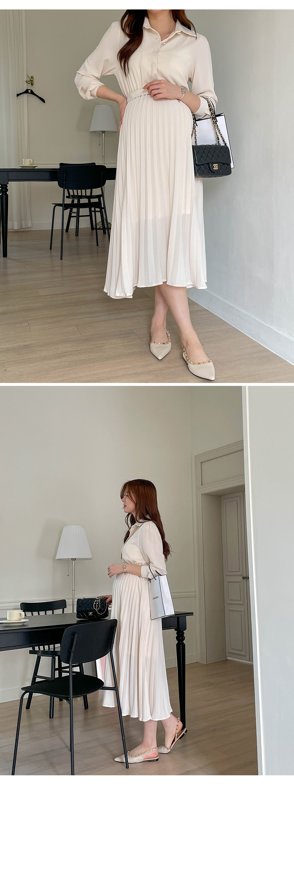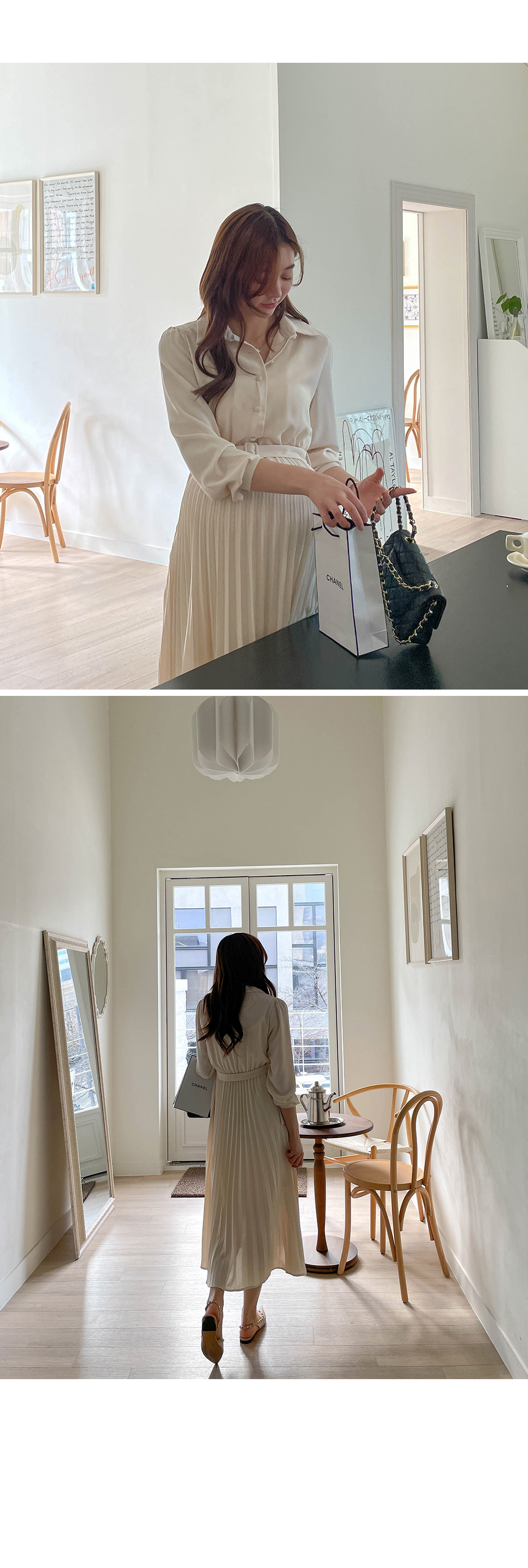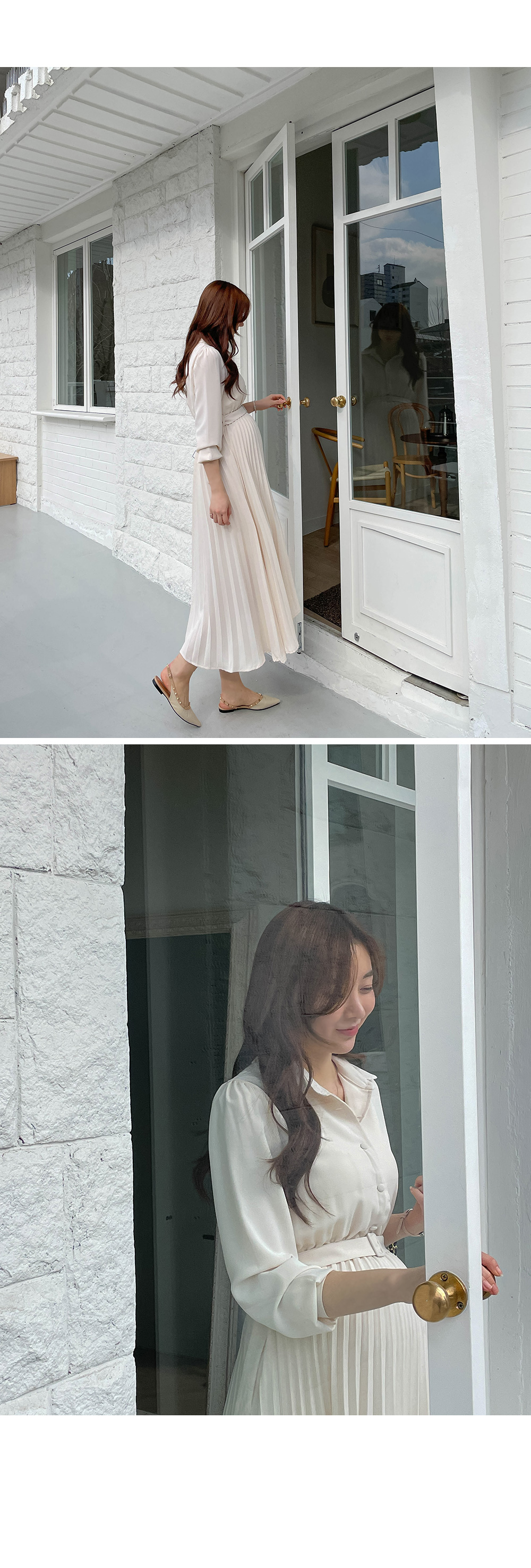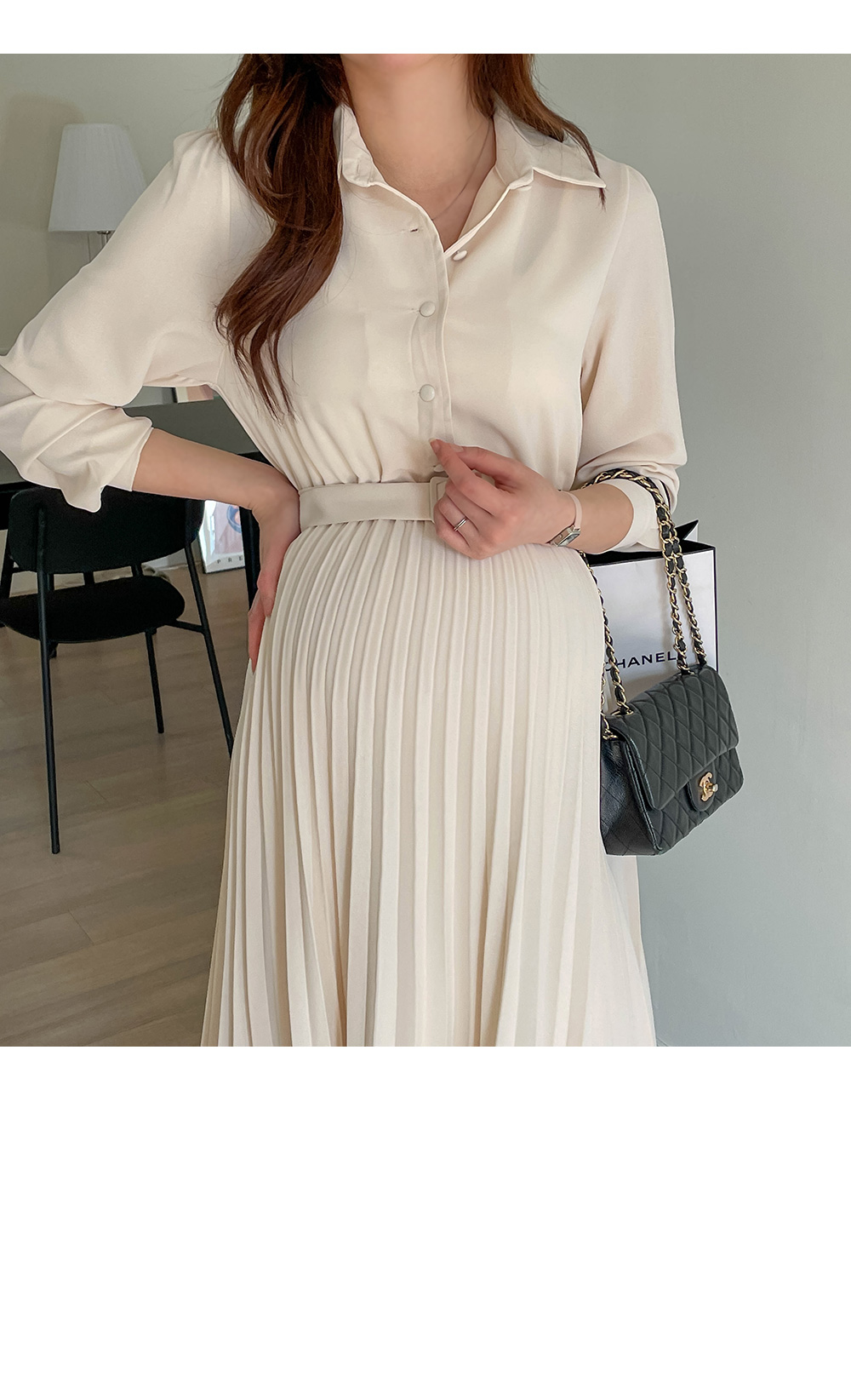 스커트 라인에 자잘한 기계 주름이 잡혀