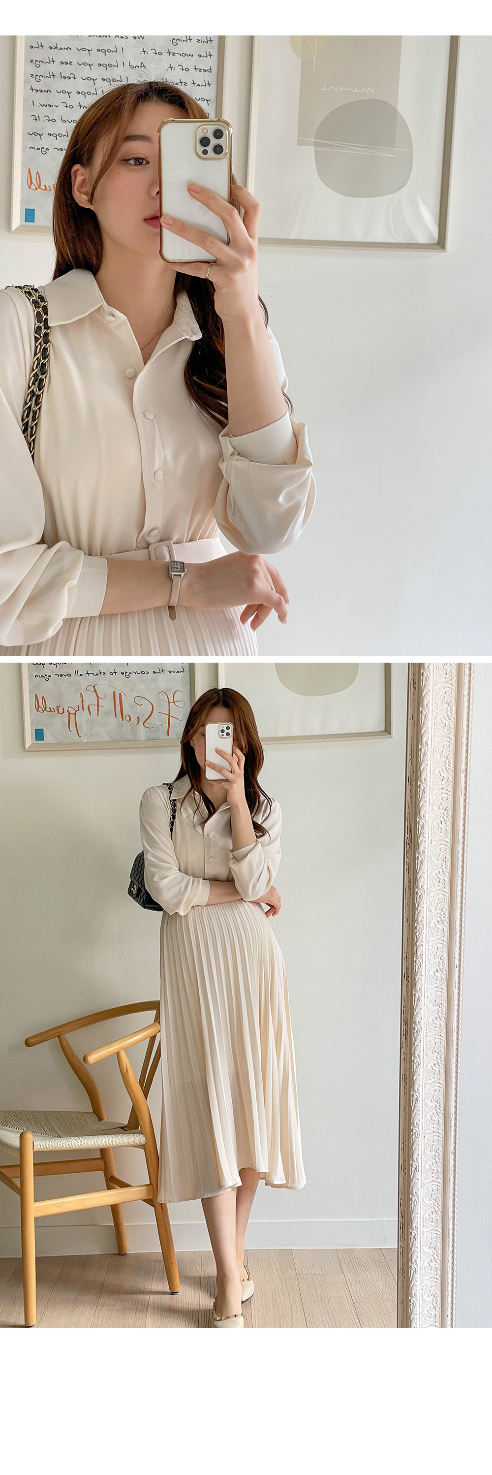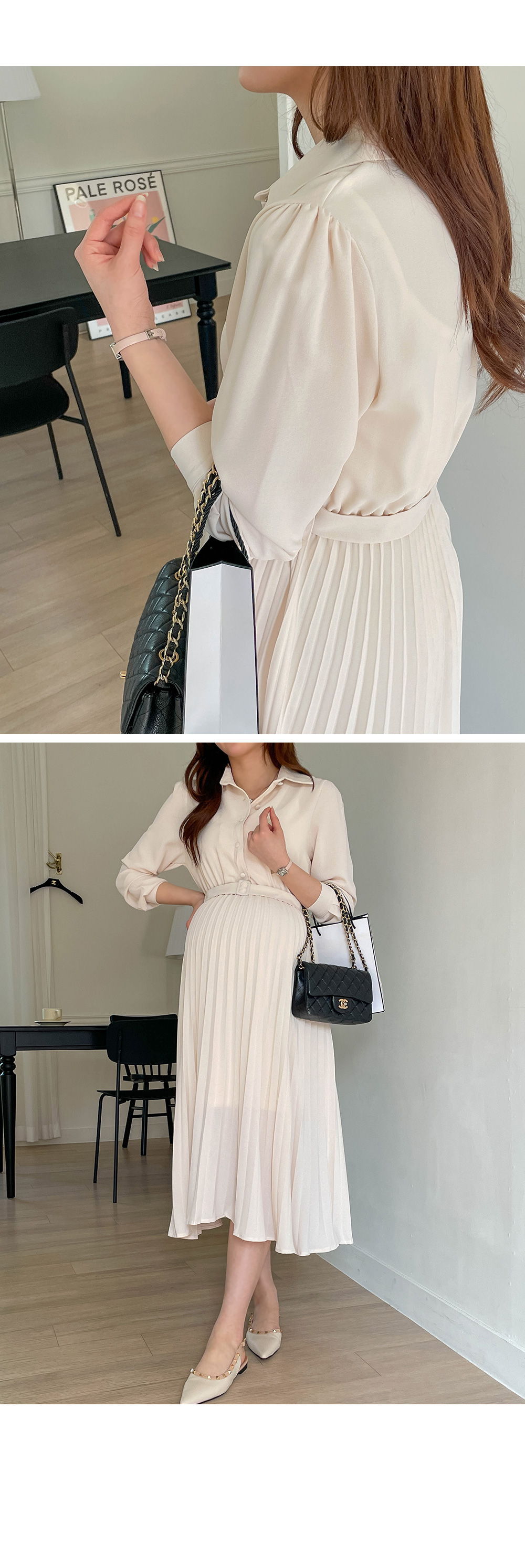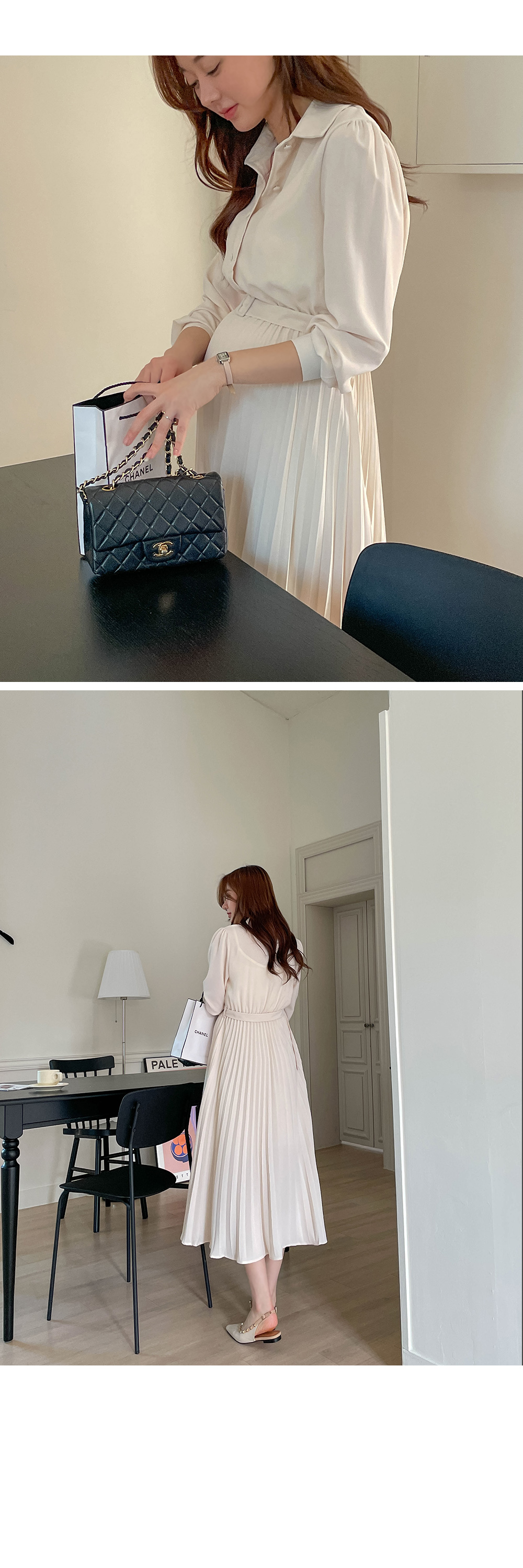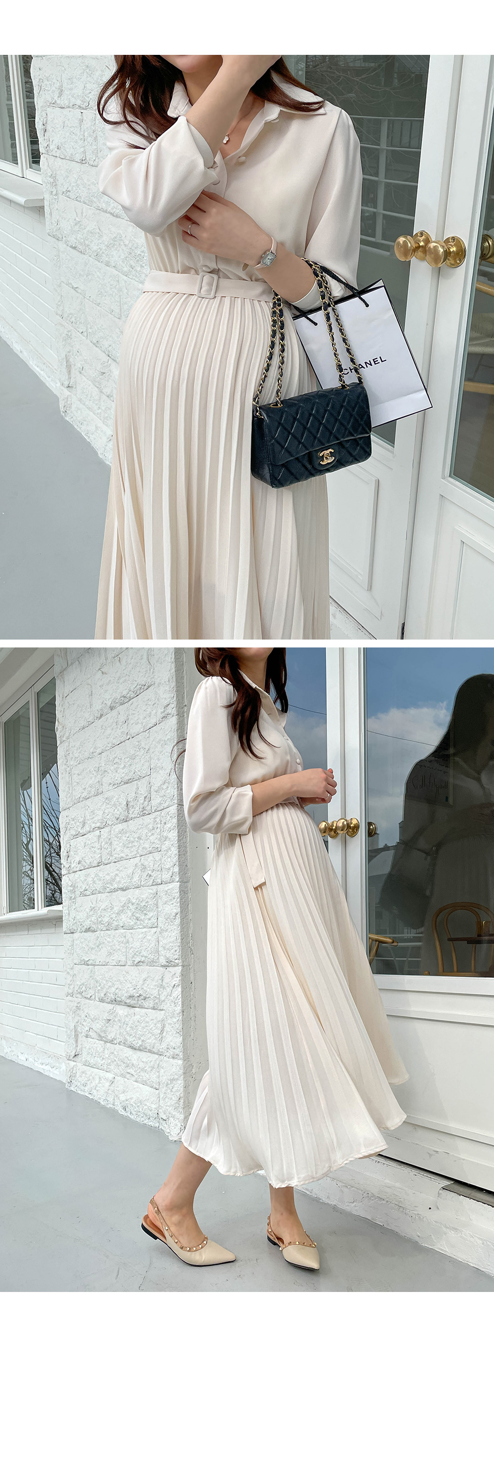스커트 라인에 자잘한 기계 주름이 잡혀