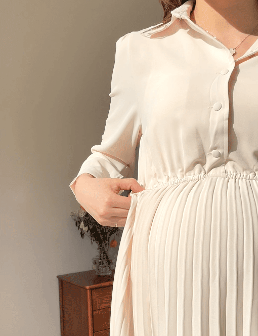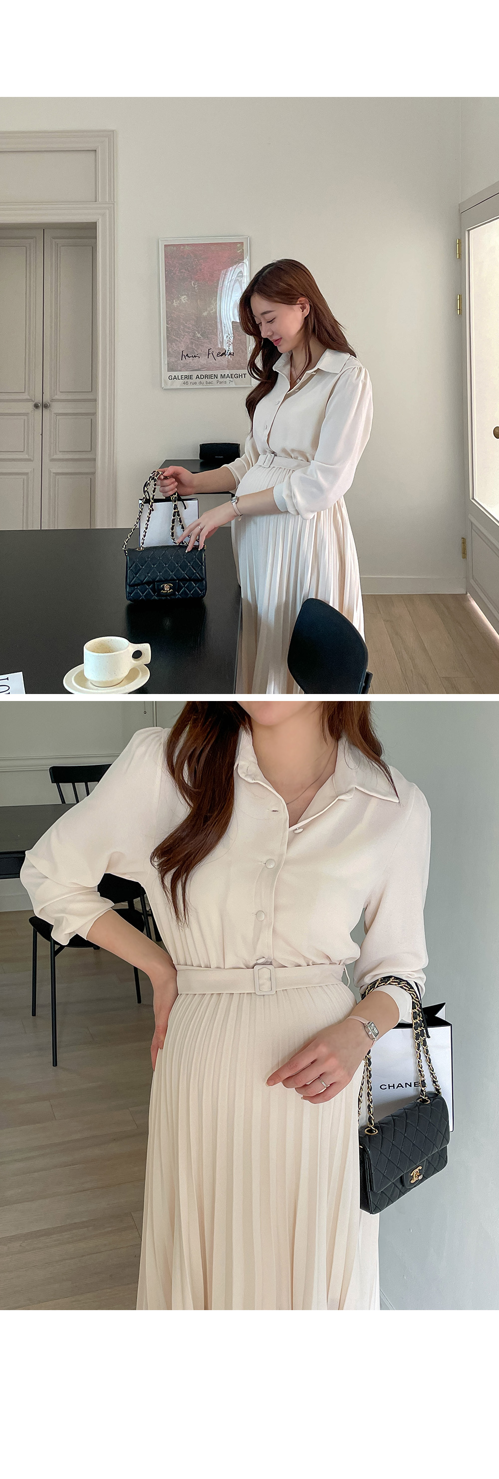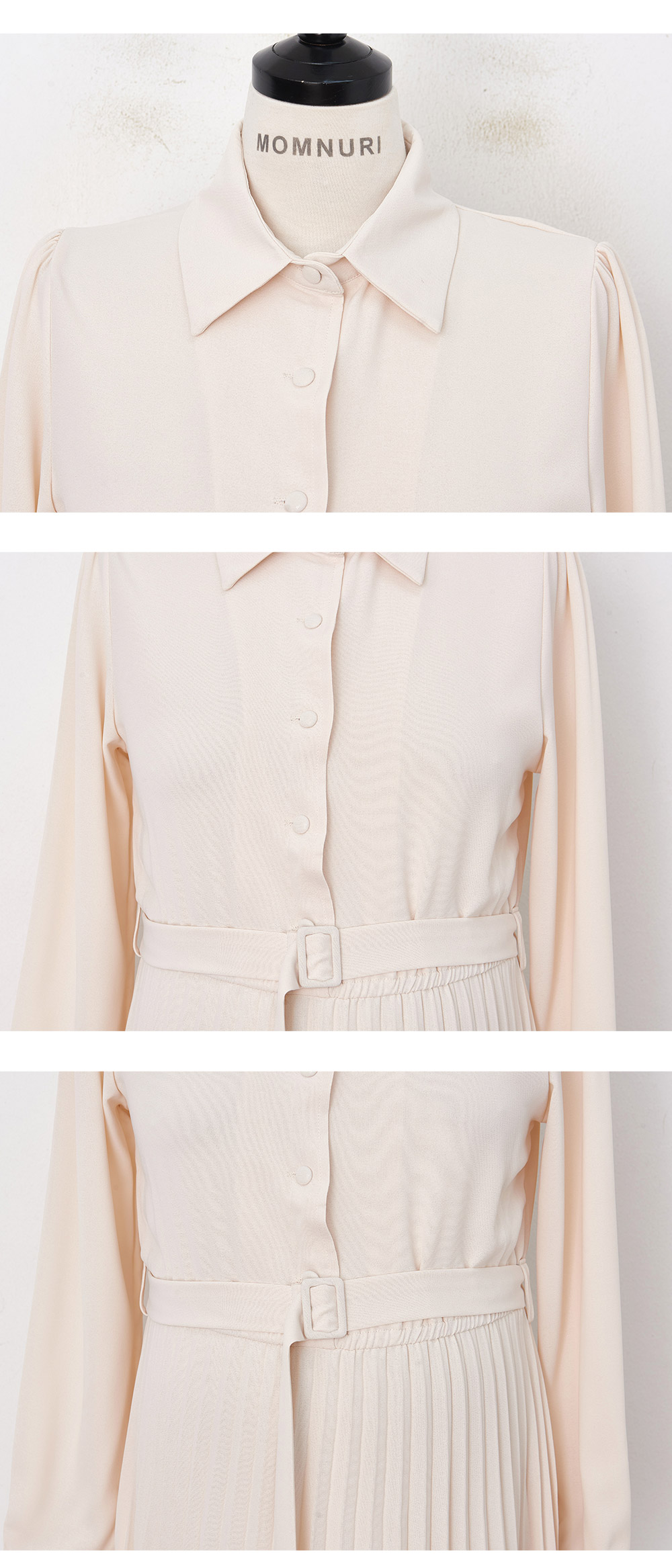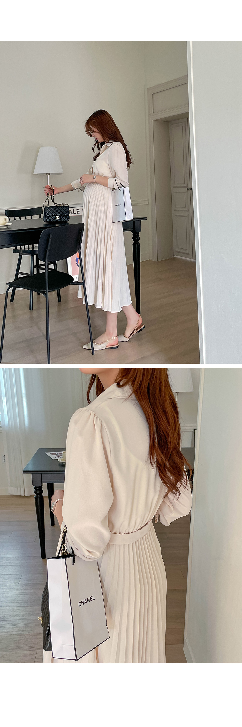 스커트 라인에 자잘한 기계 주름이 잡혀