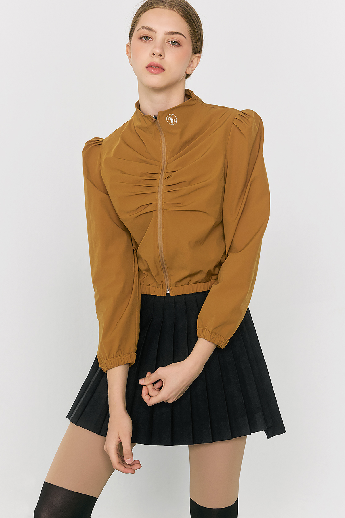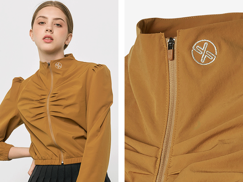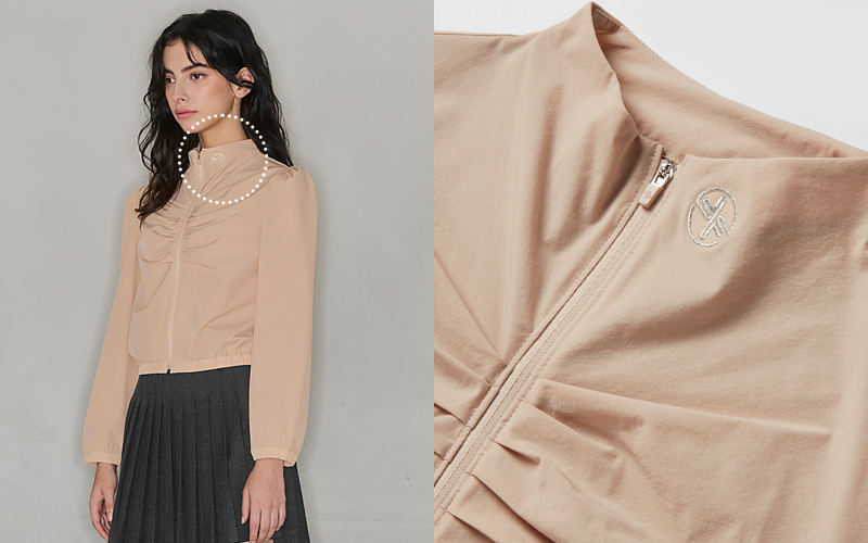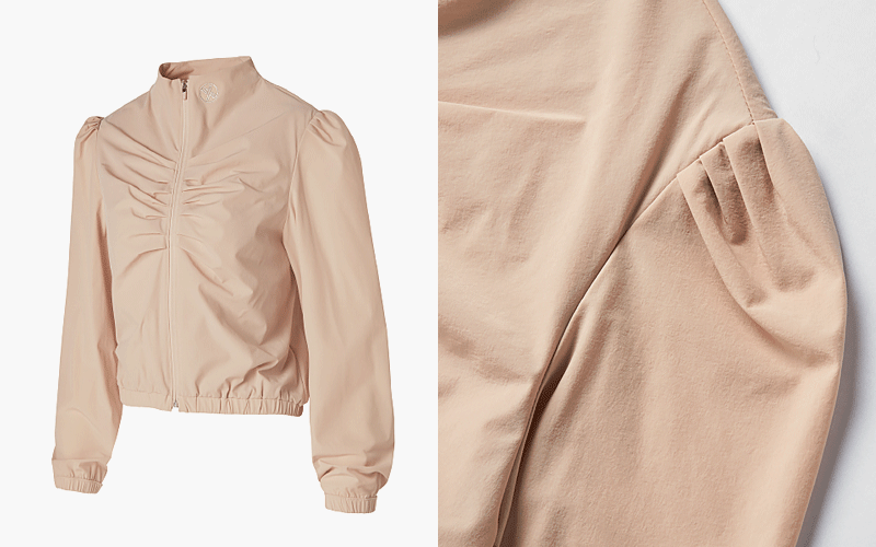 지퍼 라인 중앙과 어깨선에 셔링 주름을 잡아