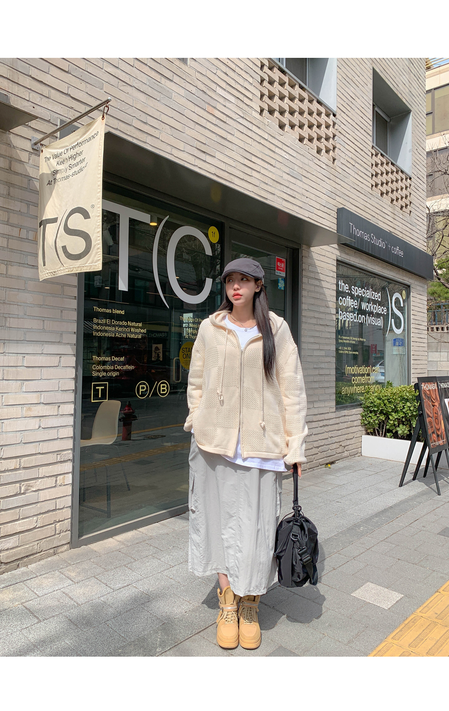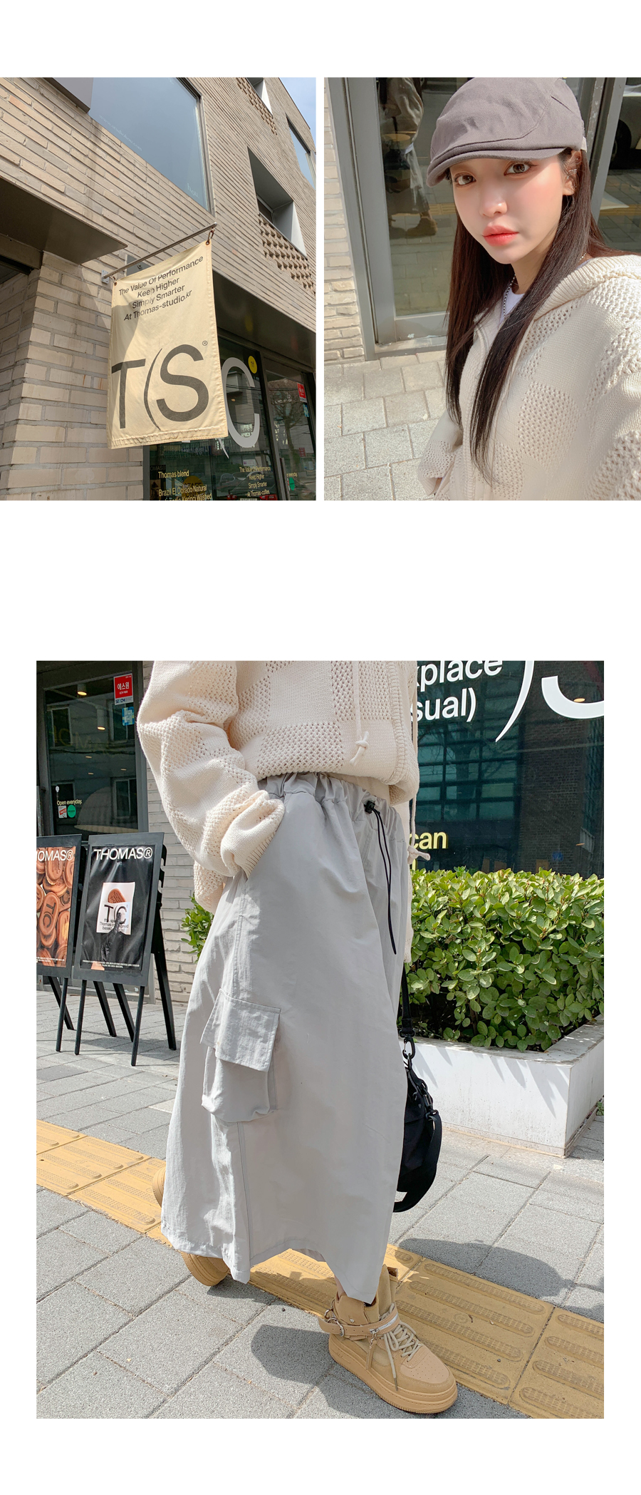 Stone cargo banding long skirt