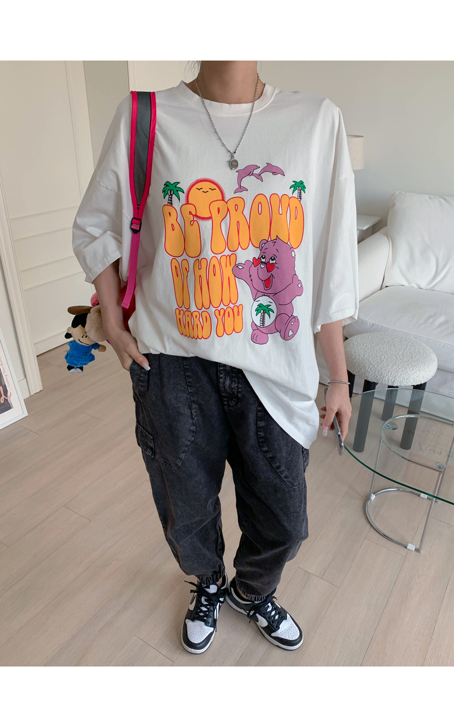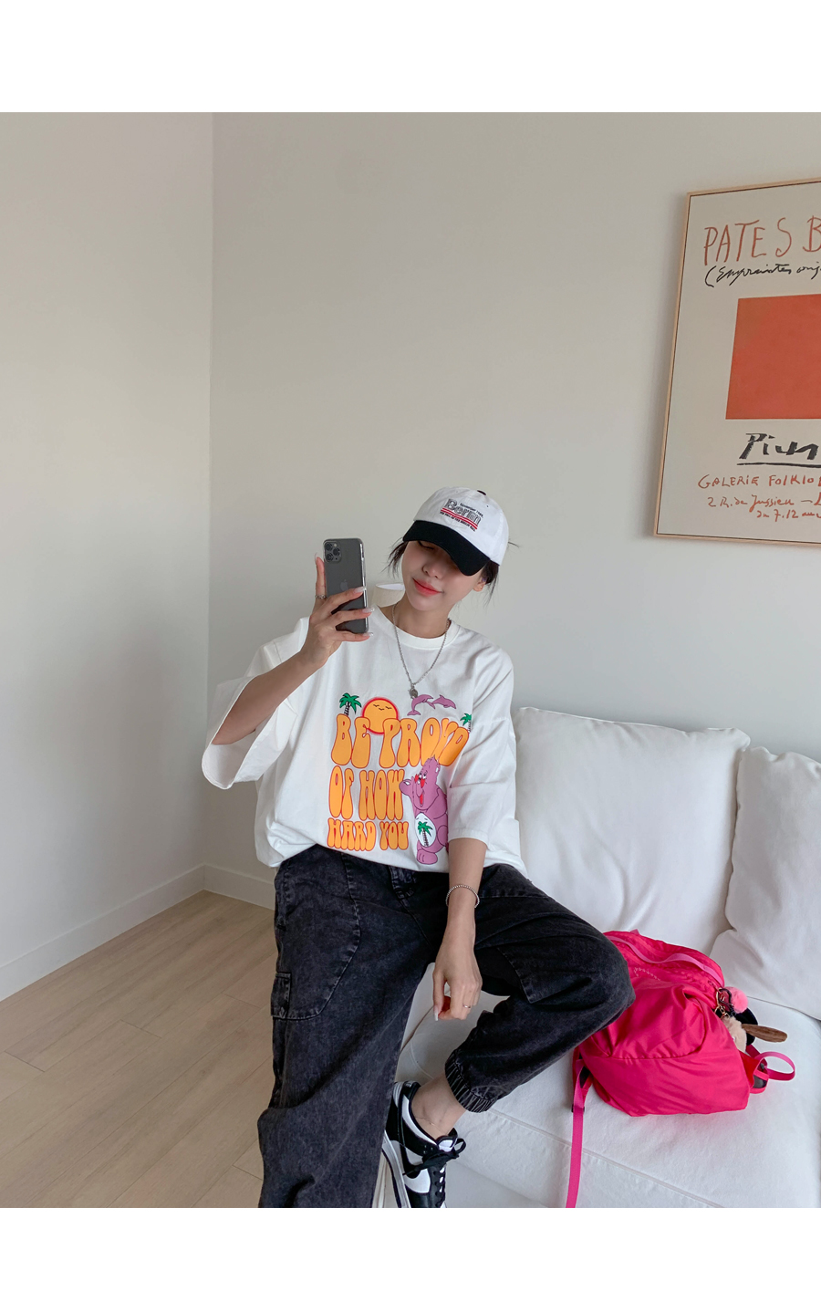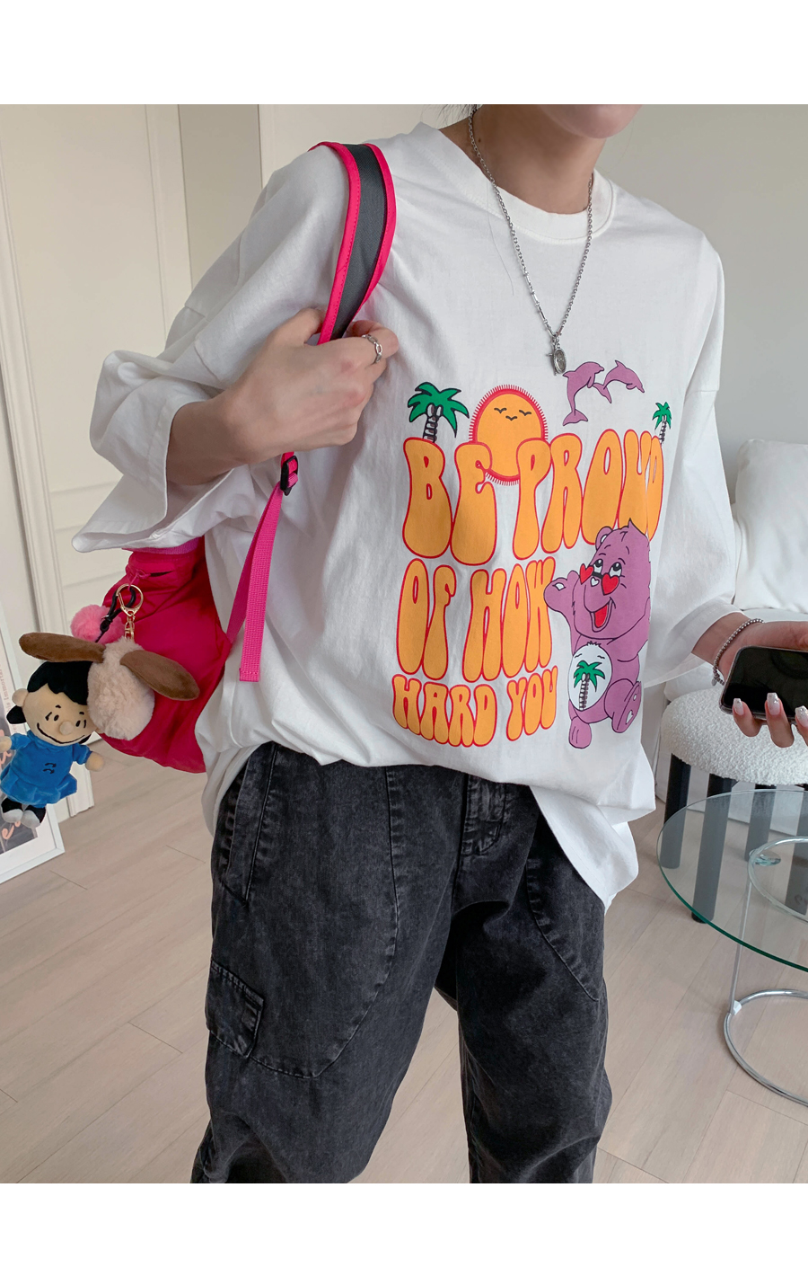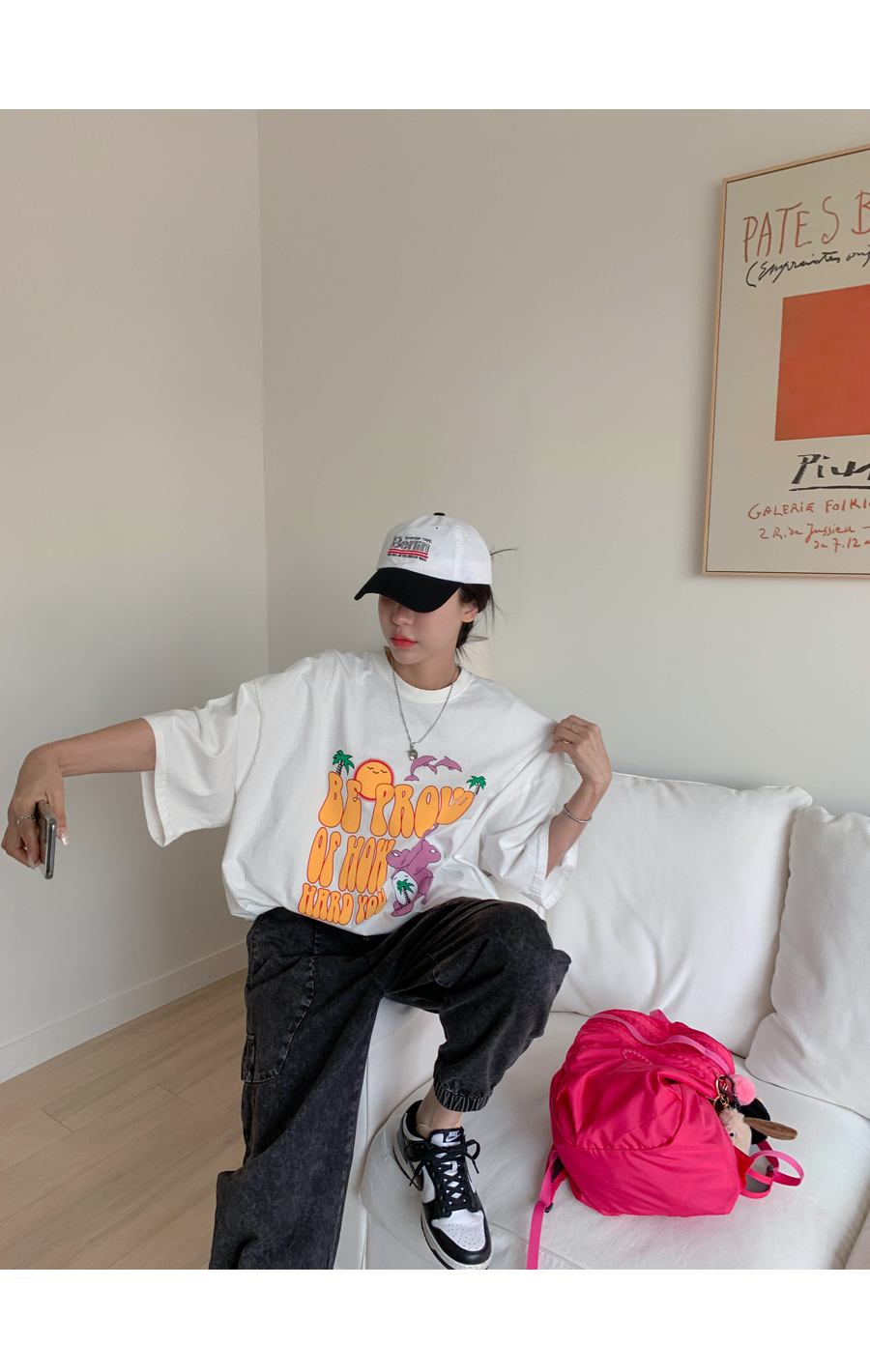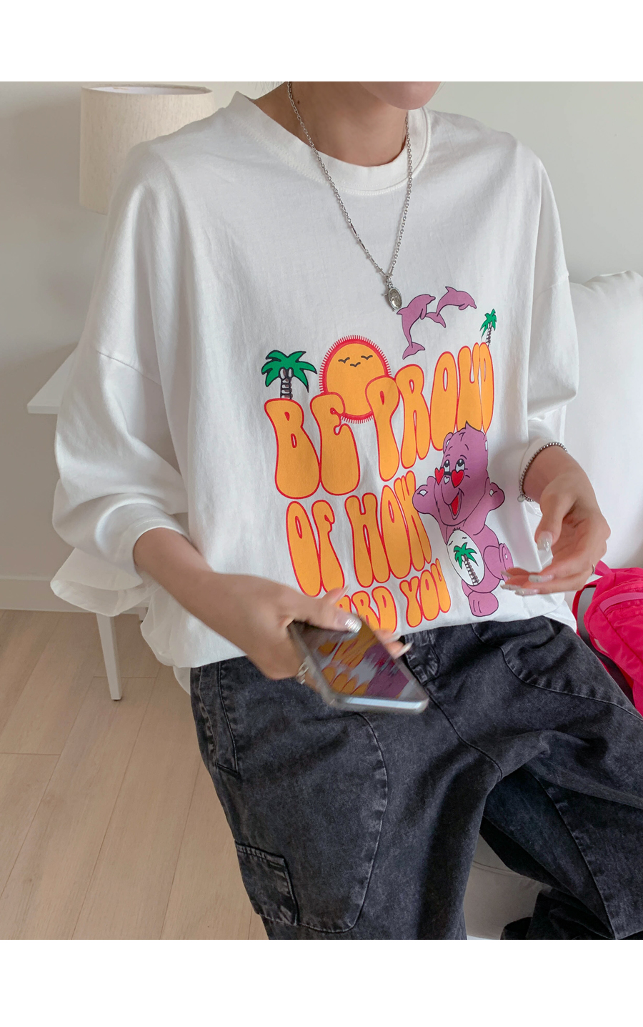 Dolphin Printing Pigment Long Short Sleeve Tee
