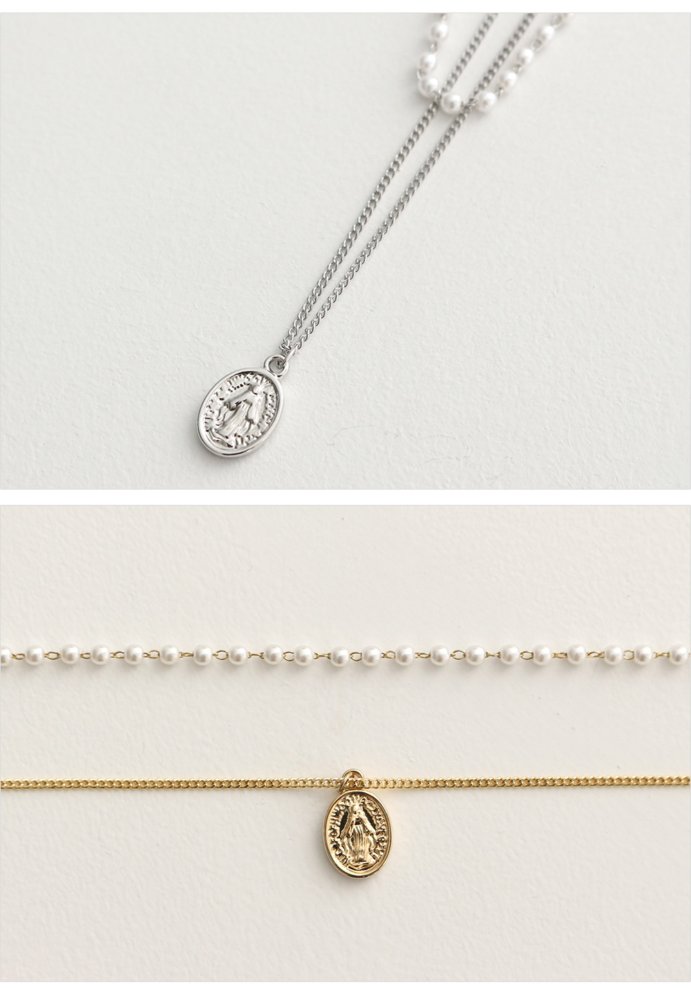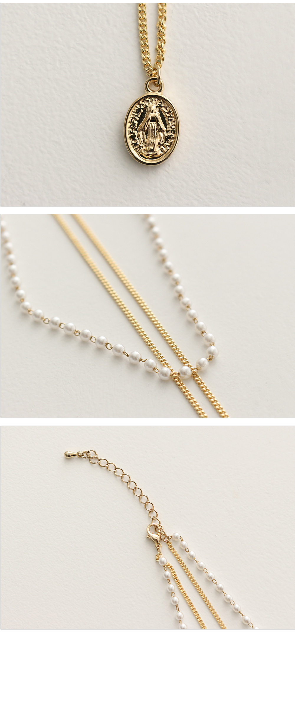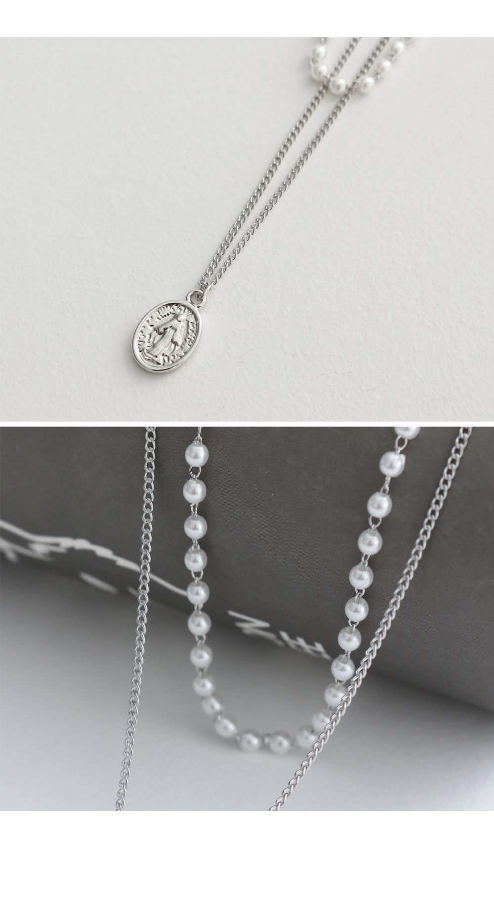 진주와 원형 팬던트, 2줄 레이어드 디자인으로
