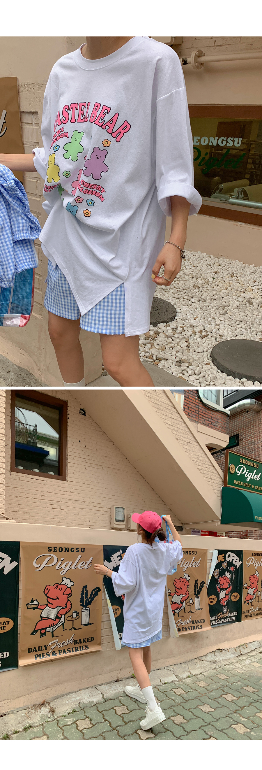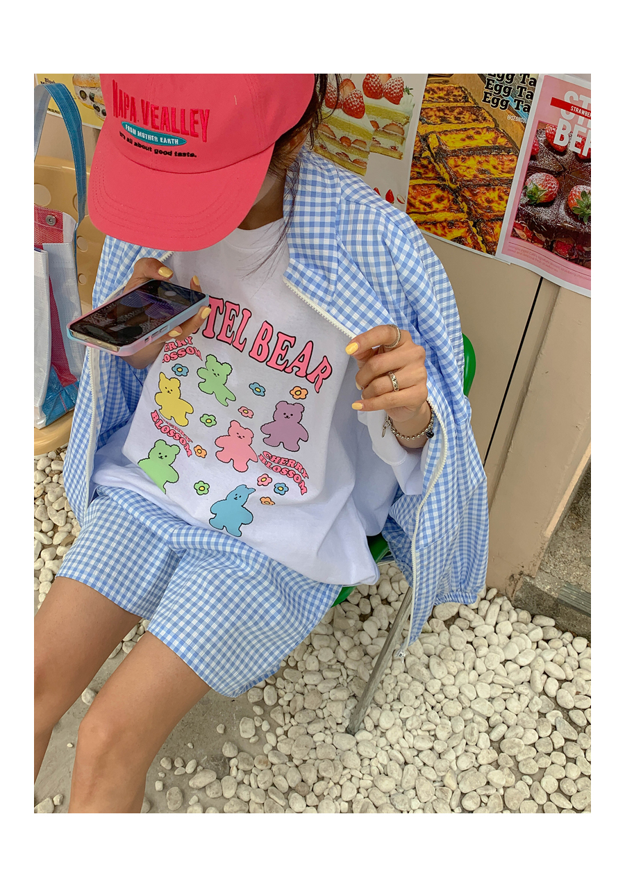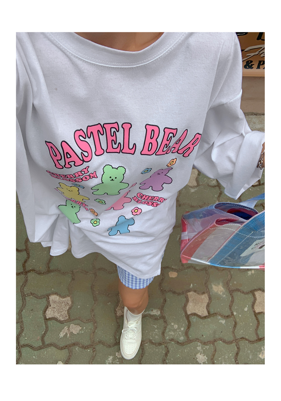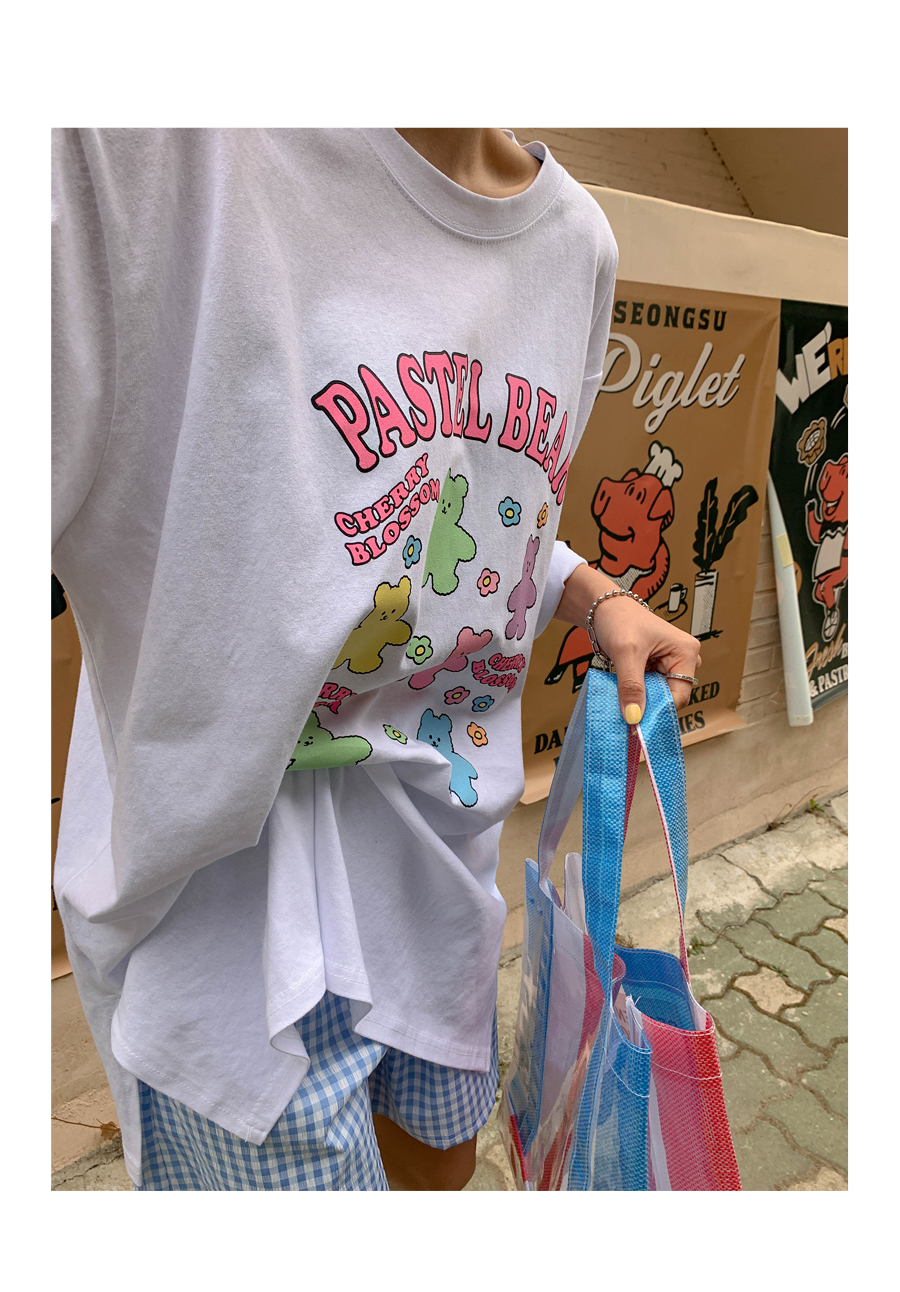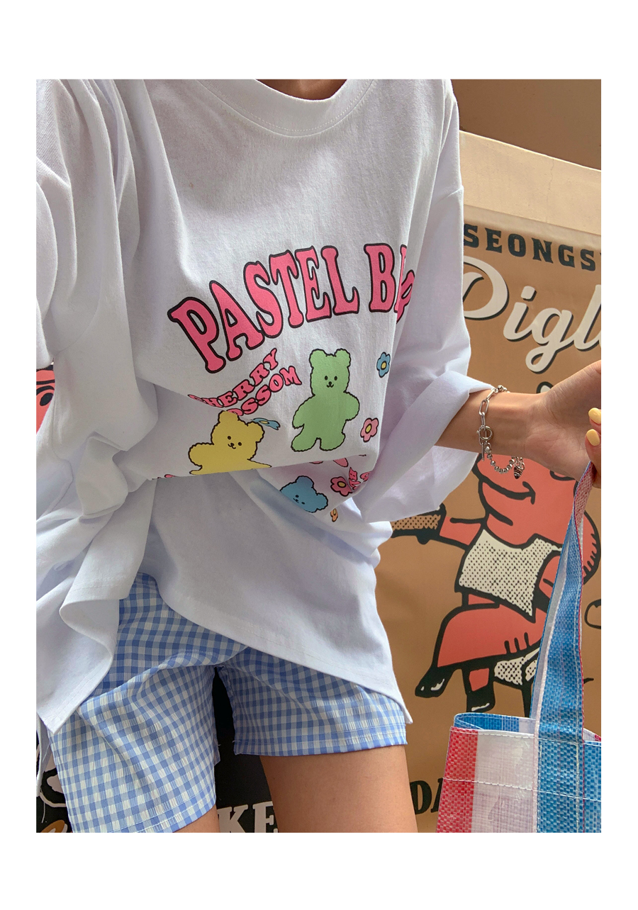 Cherry Bear Printed Split Long T-shirt