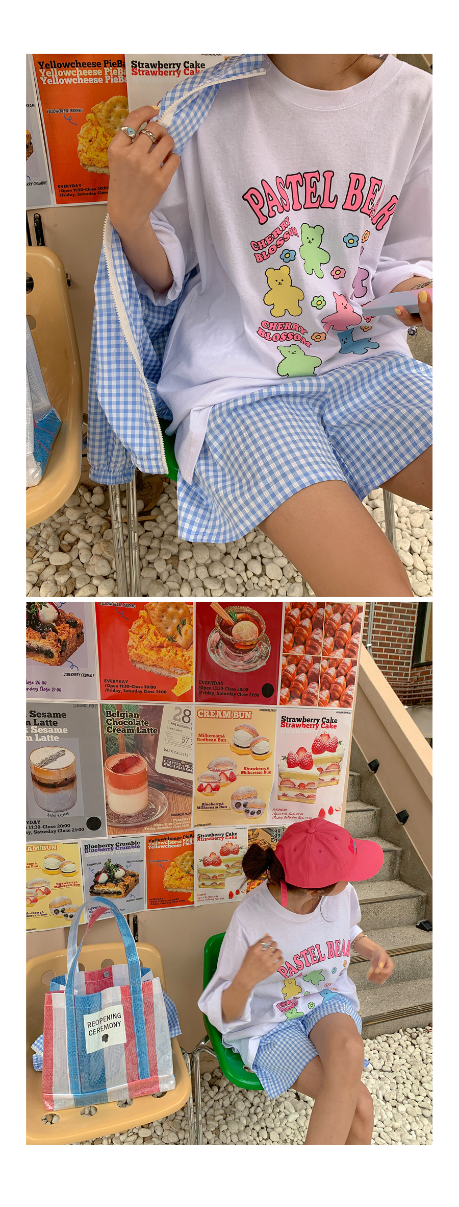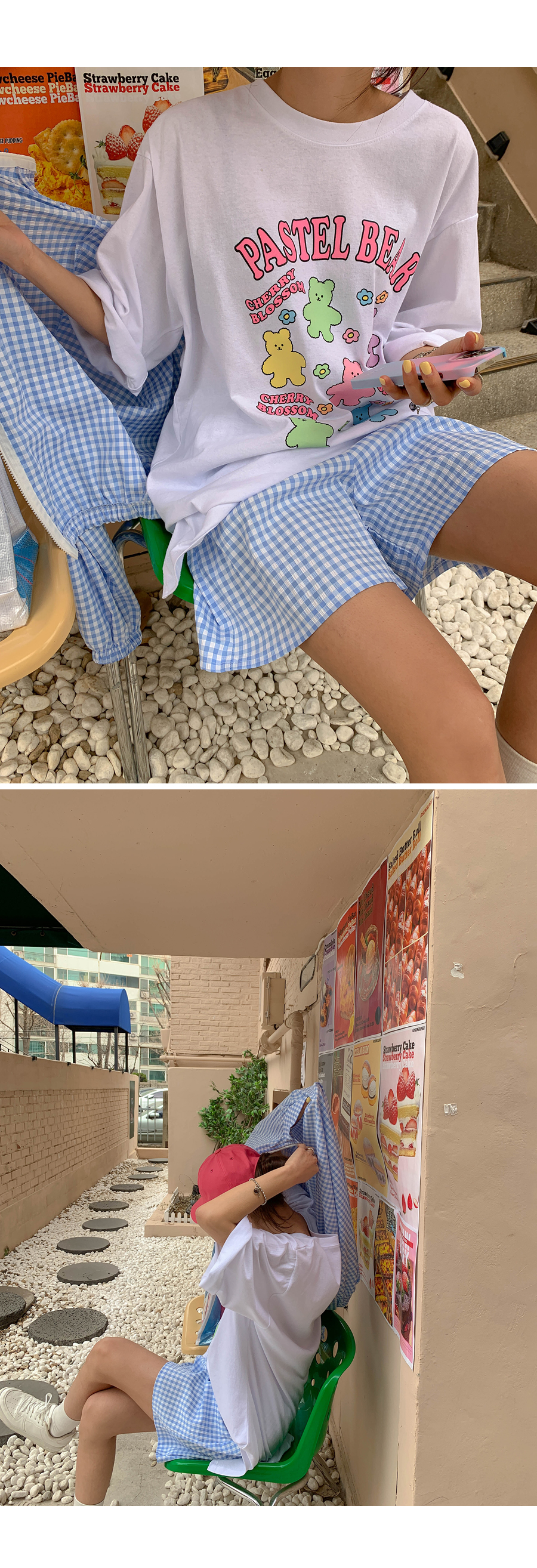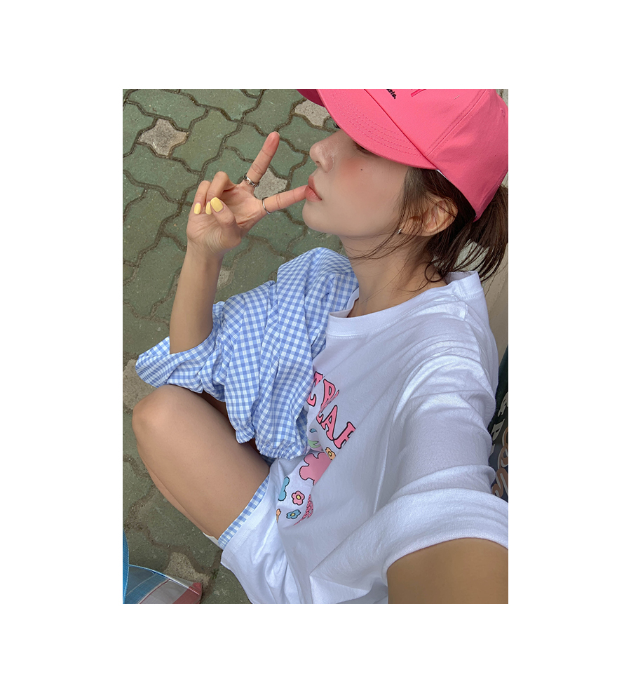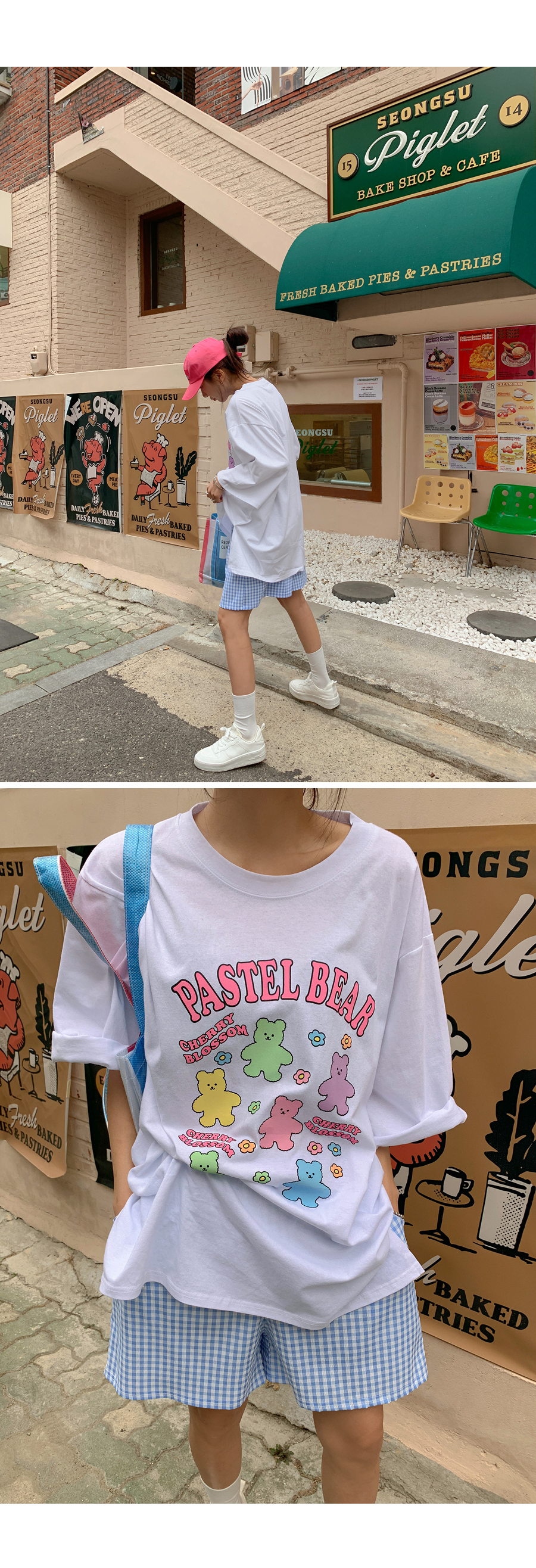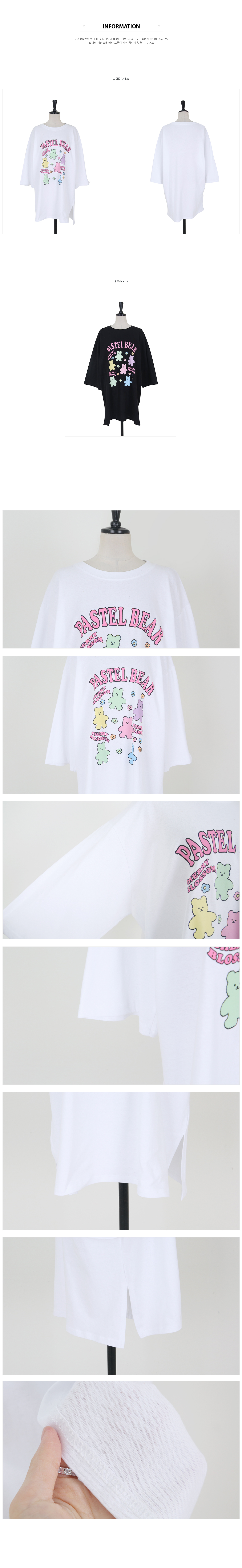 Cherry Bear Printed Split Long T-shirt