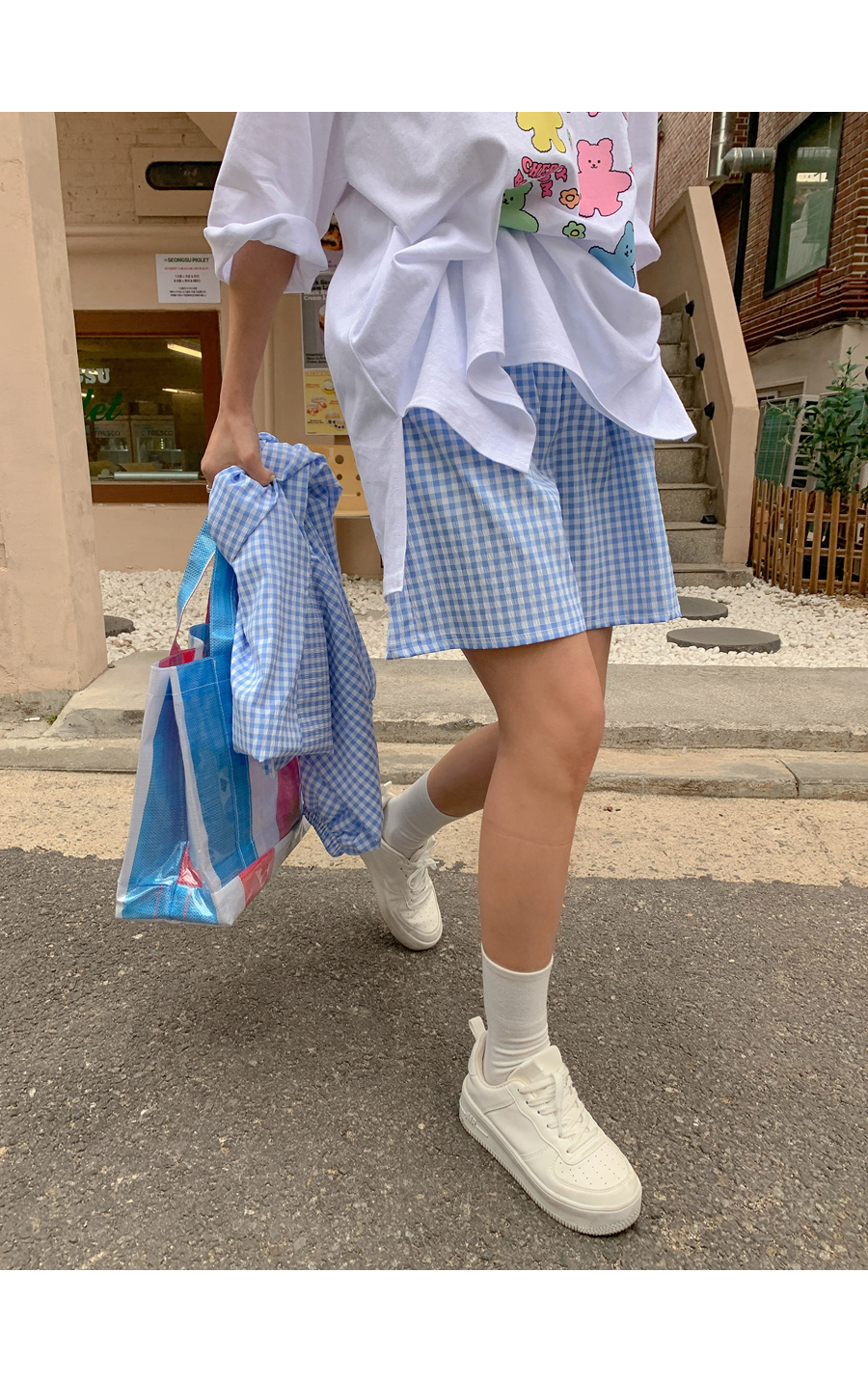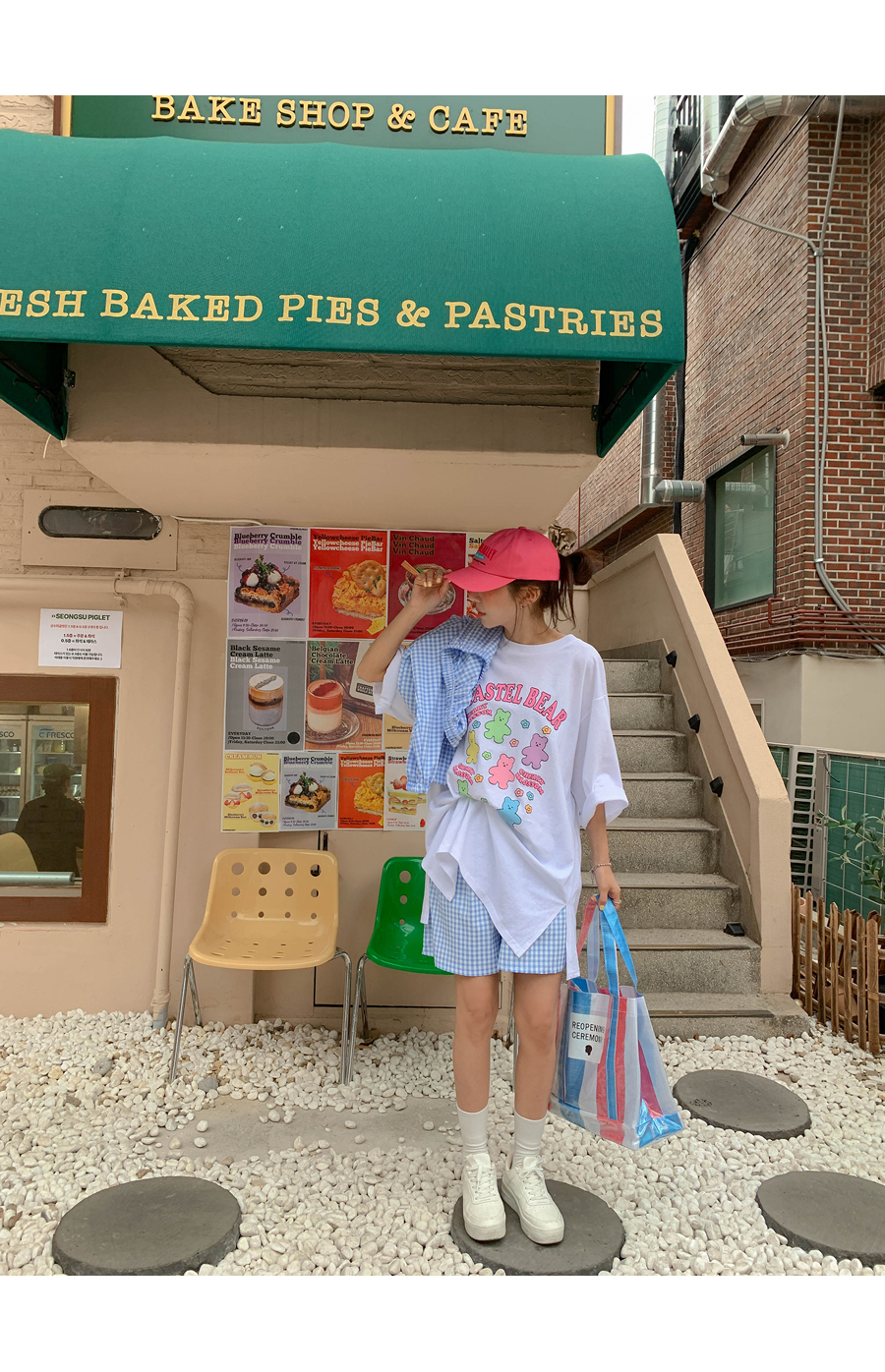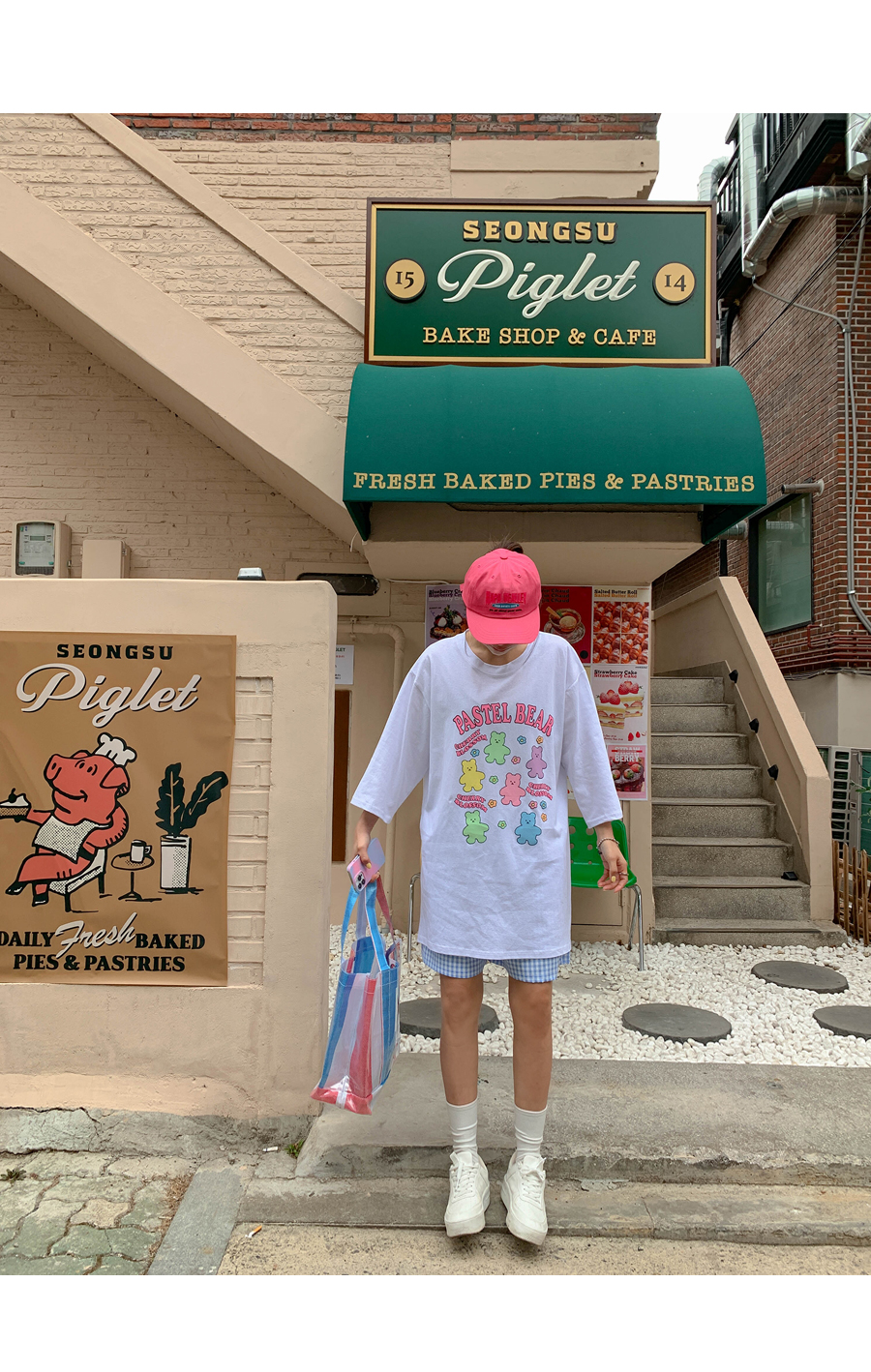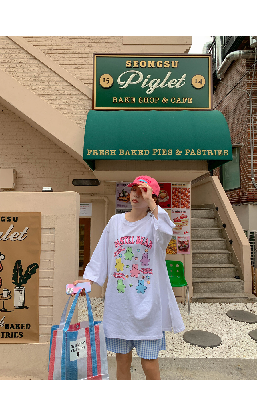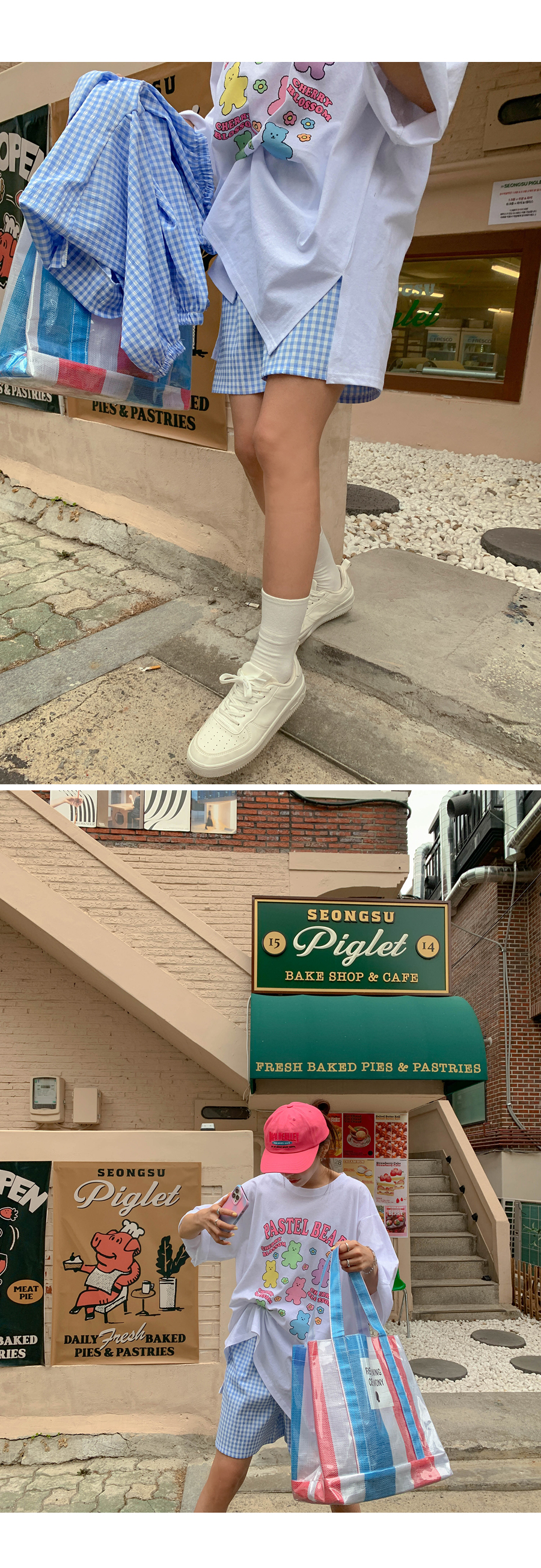 Cherry Bear Printed Split Long T-shirt