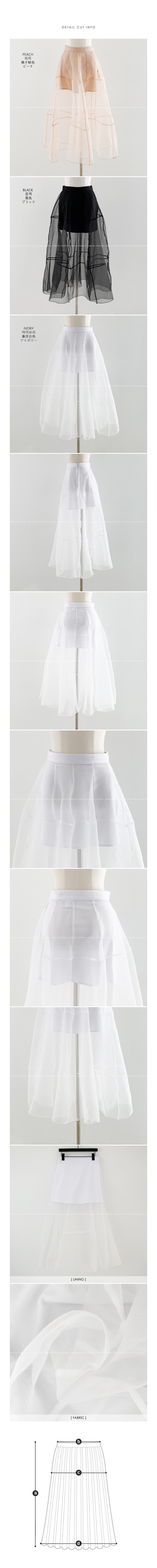시스루 원단과 안쪽에 안감 스커트가 보이는