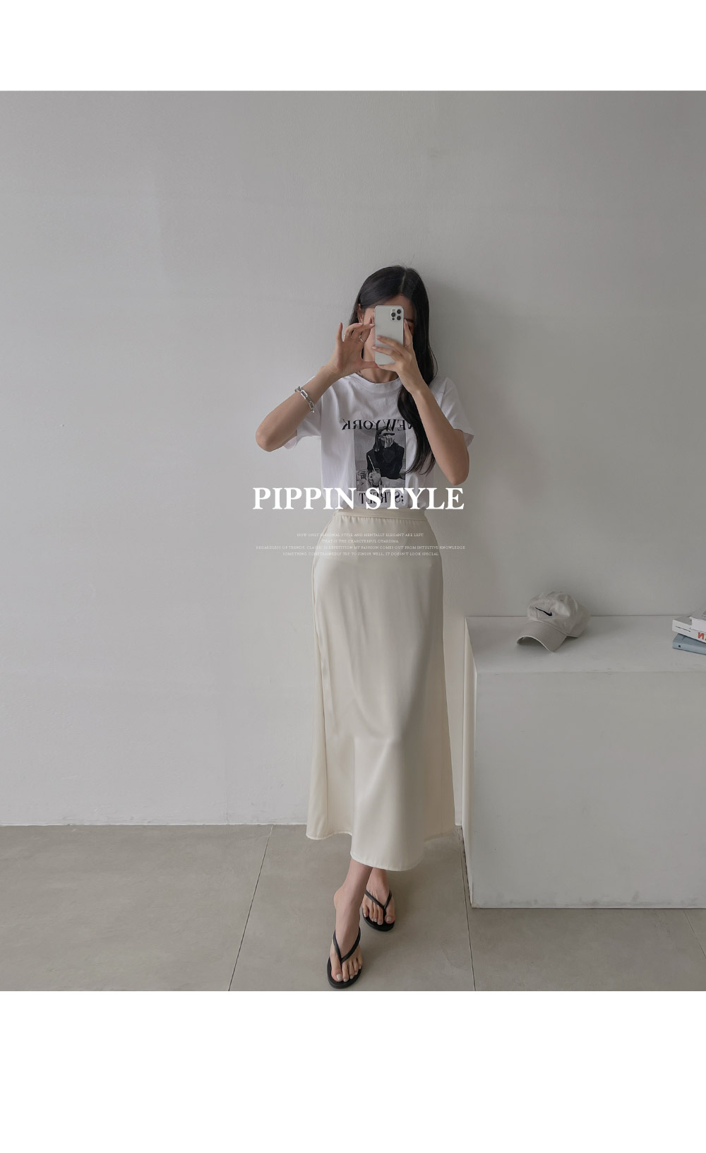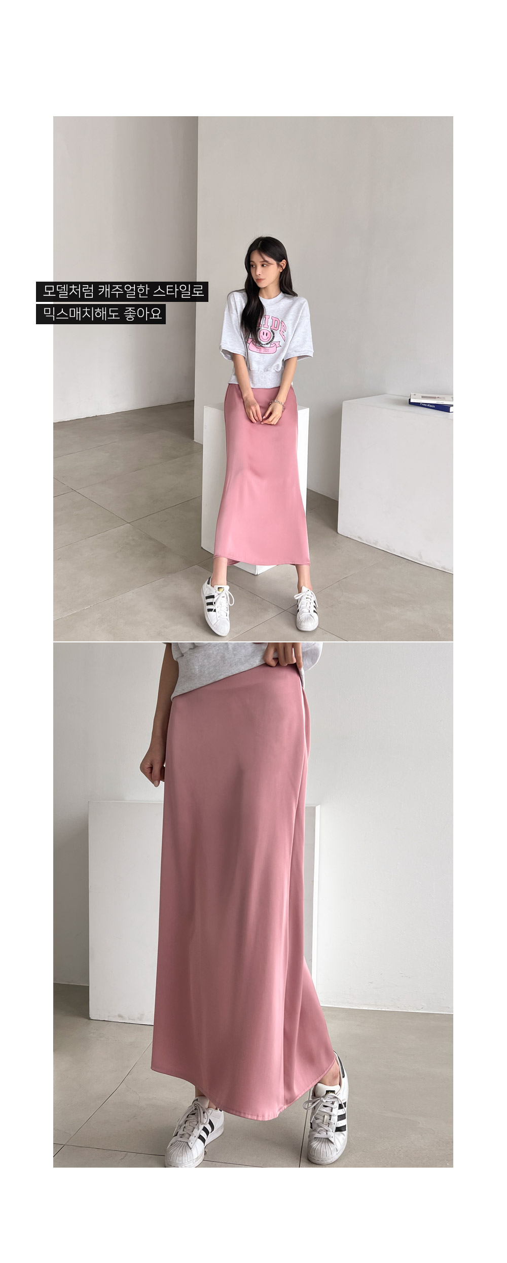 자체제작/글로시 뒷밴딩 롱스커트 #53247
