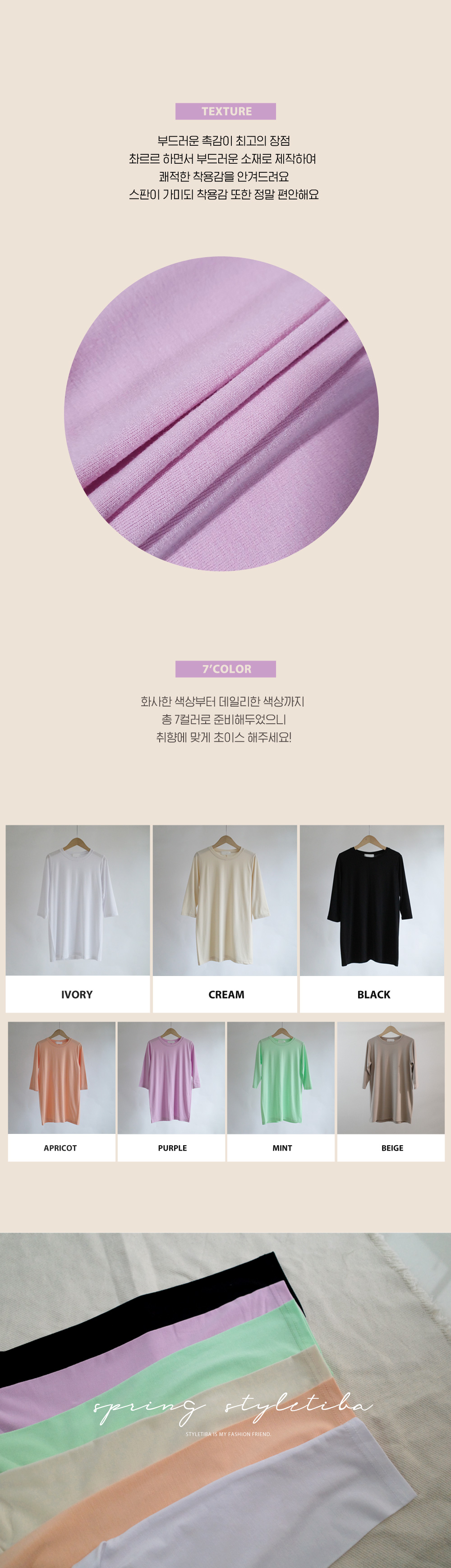 ![뒷라인 7부 베이직 티셔츠-7color, 소프트 스판 7부티-[MD추천] 늘 이쁜 예쁜핏 강조 - 스타일티바](/goods_images/2043/7128151_LIST.png)