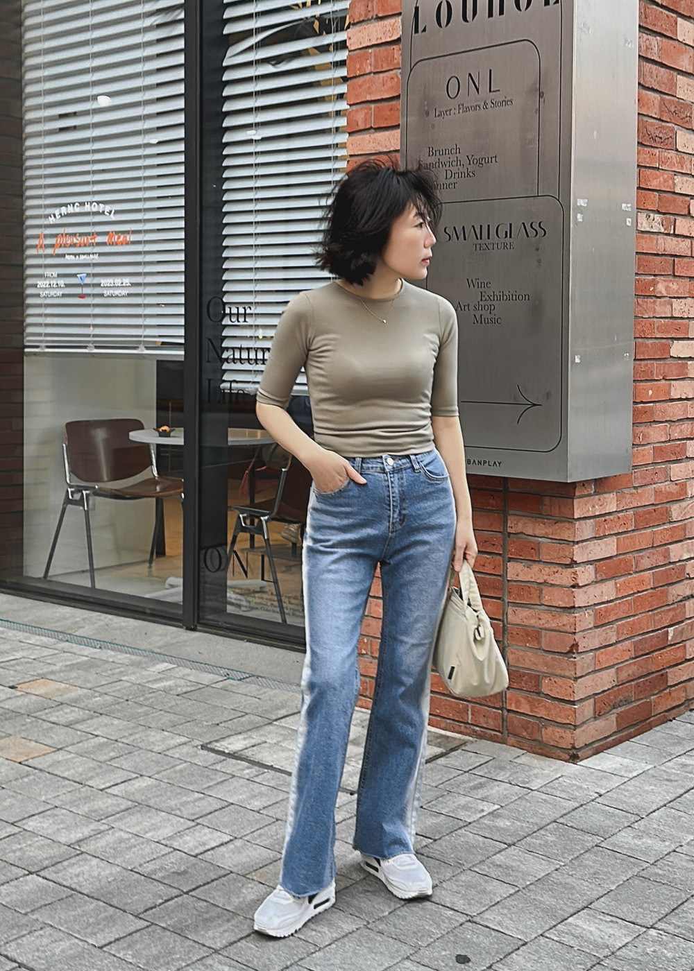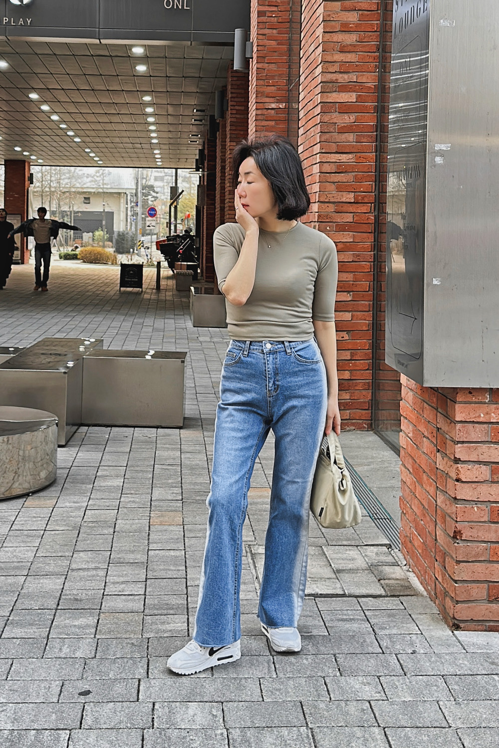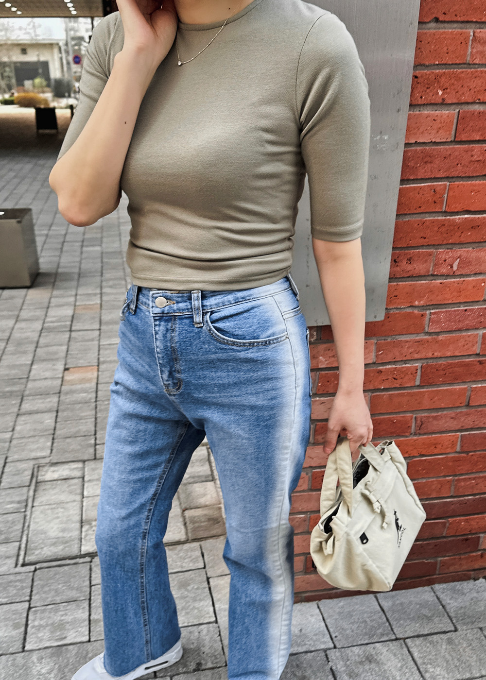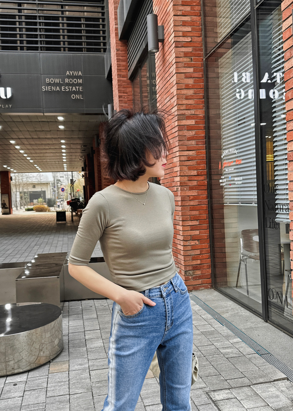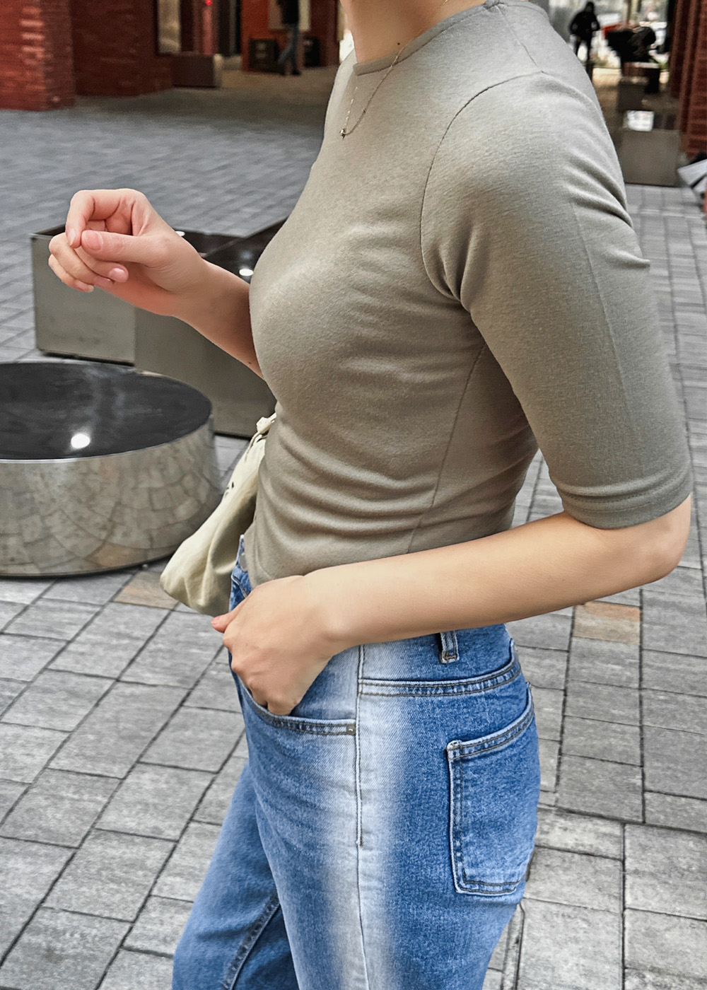 존쫀스판 크롭 5부반팔티-3color - 스타일티바