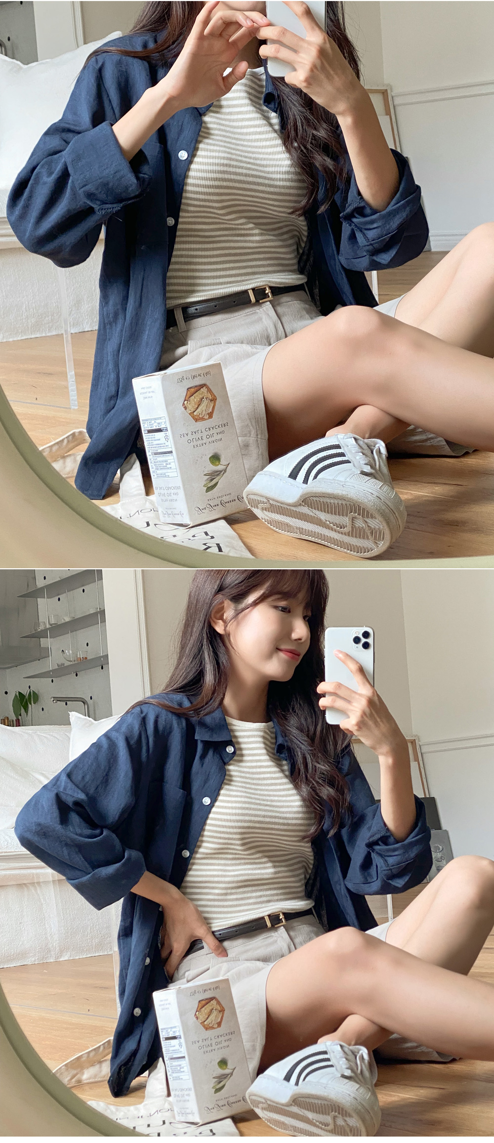 브릿 스트라이프 골지나시-4color, 담백한 단가라나시-늘 매력적인 스트라이프패턴-스판골지라인으로 더욱 슬림하게! - 스타일티바