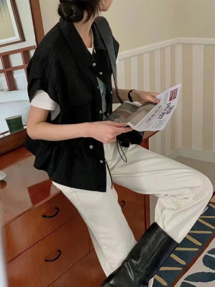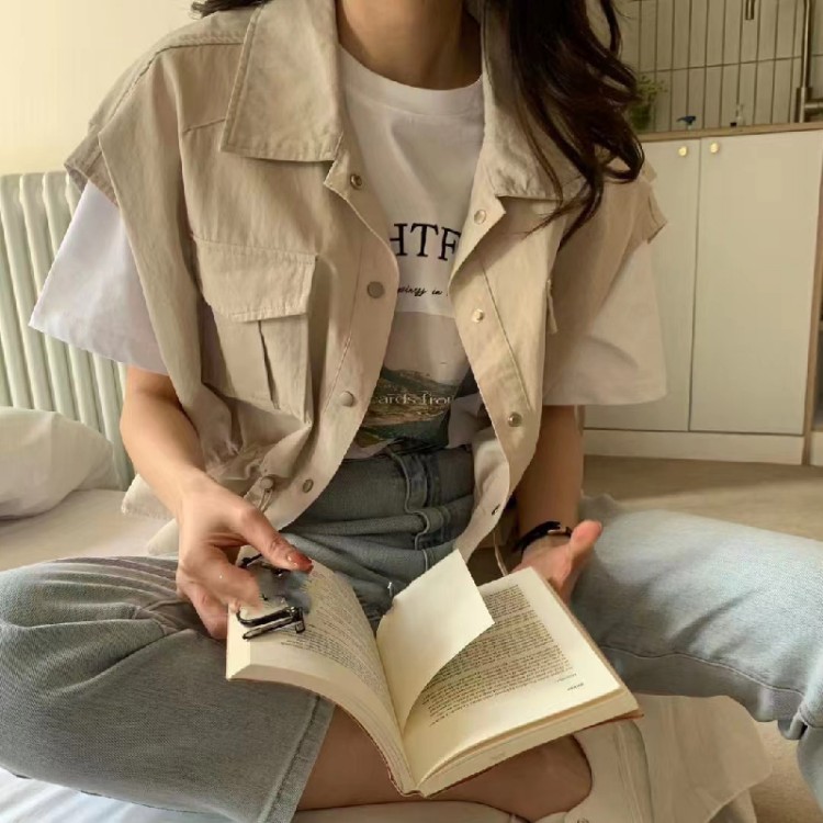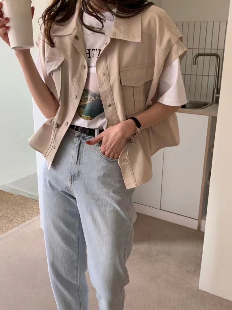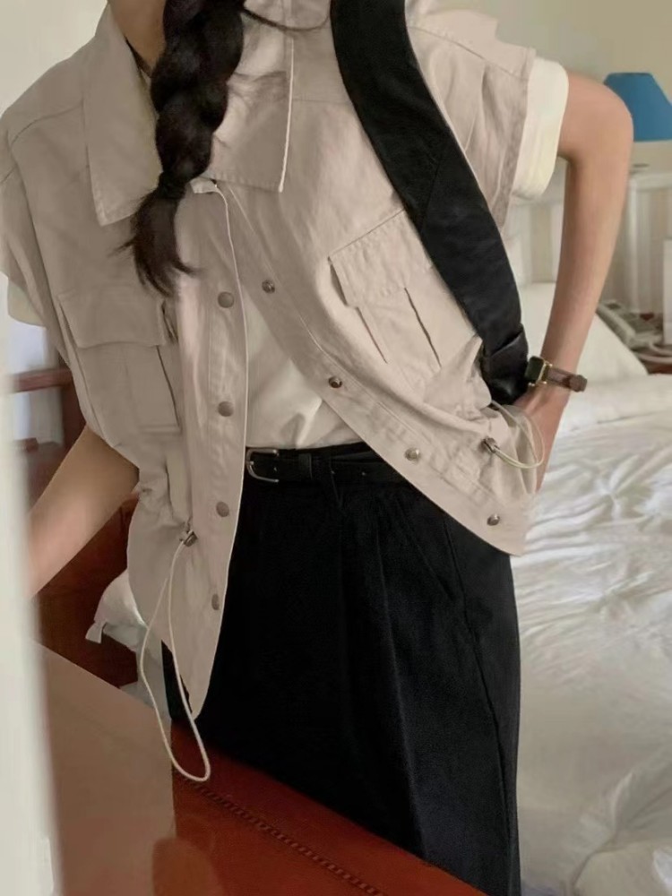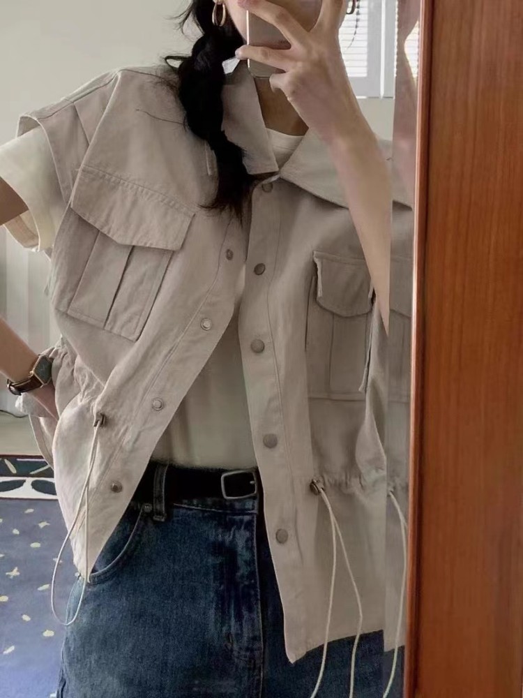 아미드 포켓 사파리 조끼 자켓