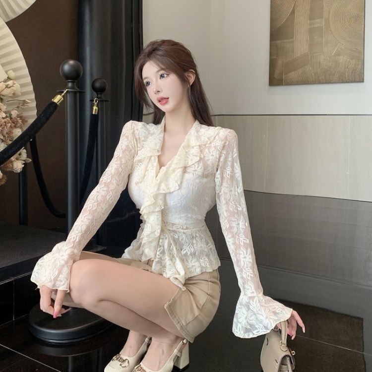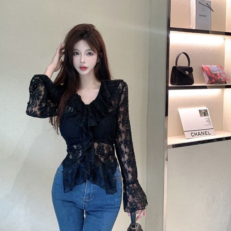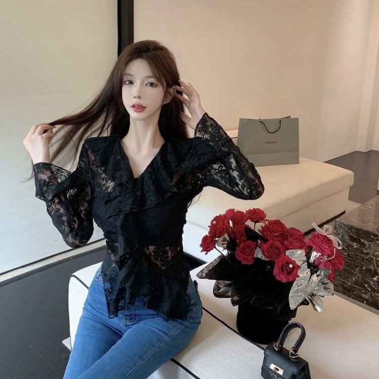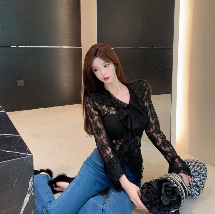 국내상품 / 펠리아 시스루 레이스 블라우스