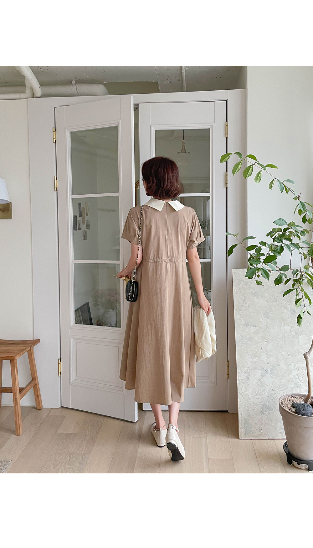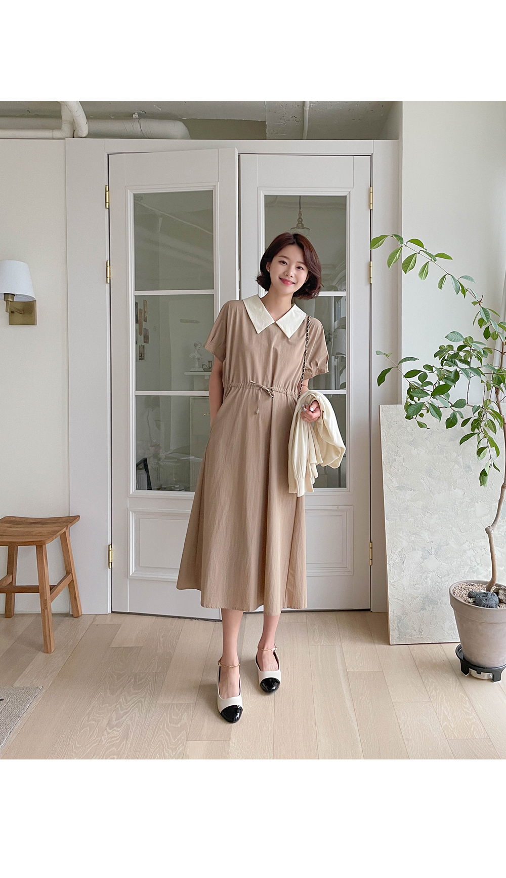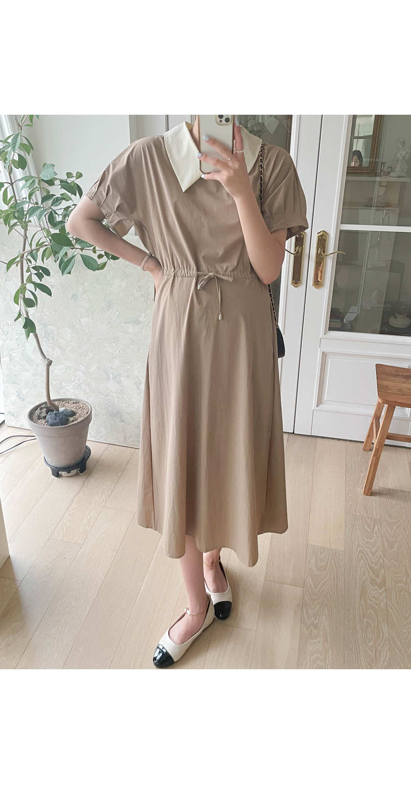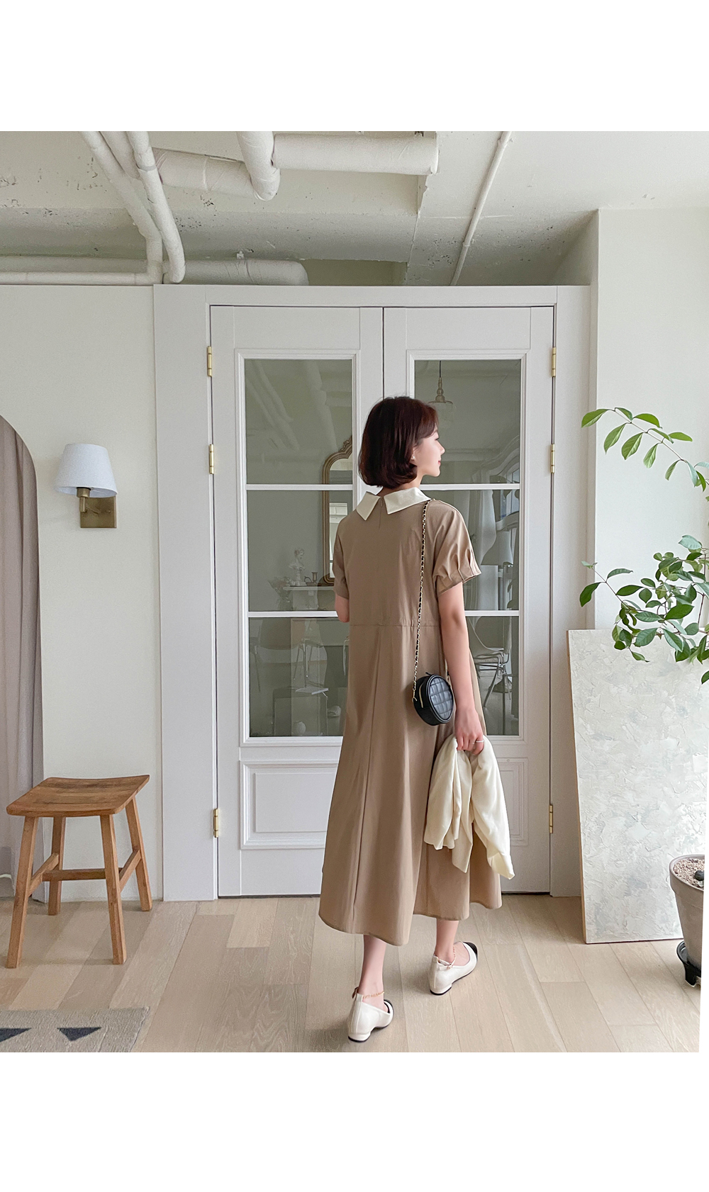 배색 카라 디자인이 포인트로 들어간 원피스에요