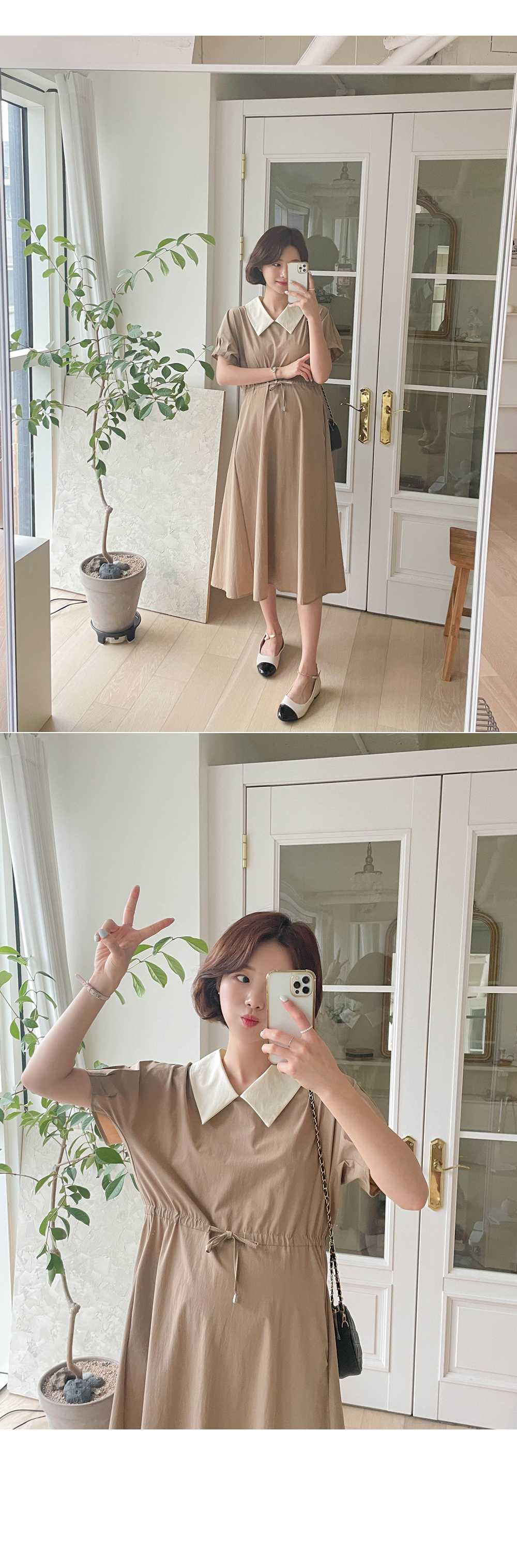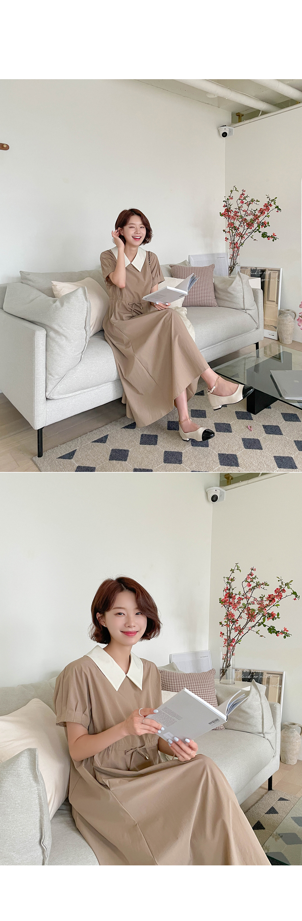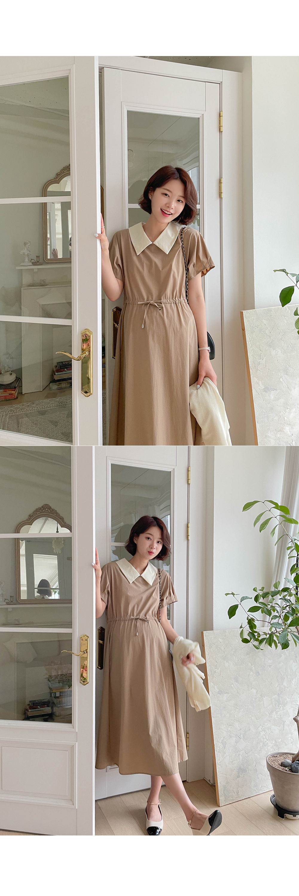 배색 카라 디자인이 포인트로 들어간 원피스에요