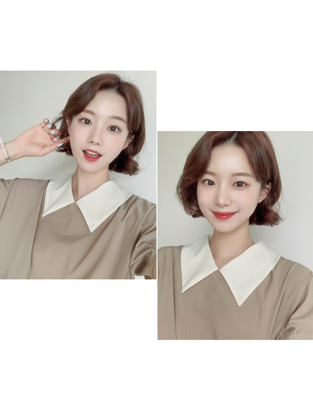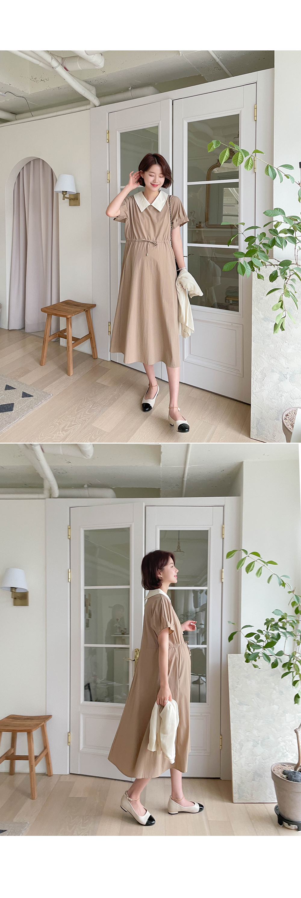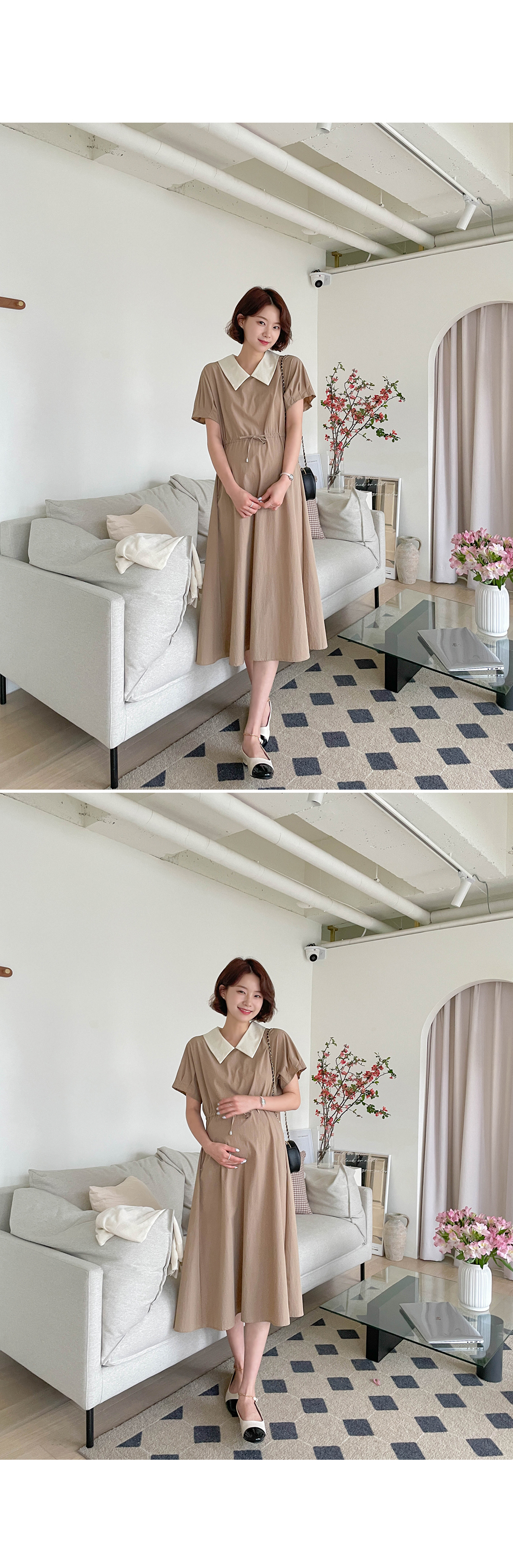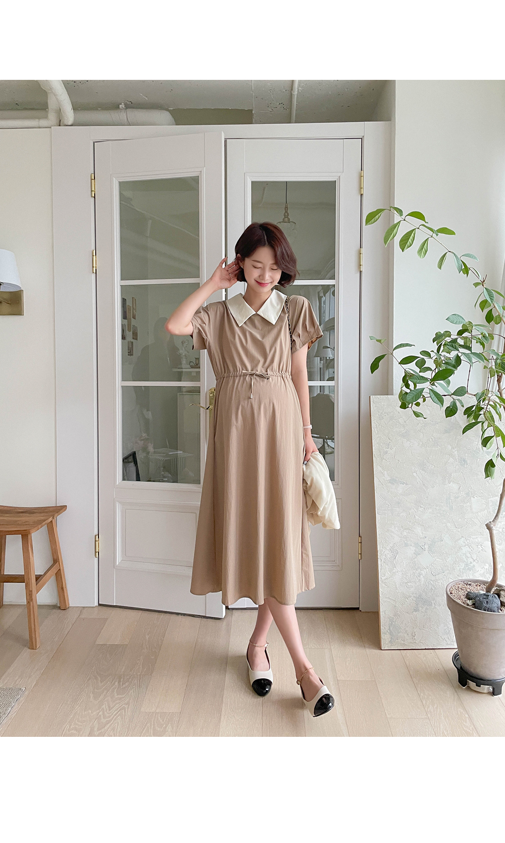 배색 카라 디자인이 포인트로 들어간 원피스에요