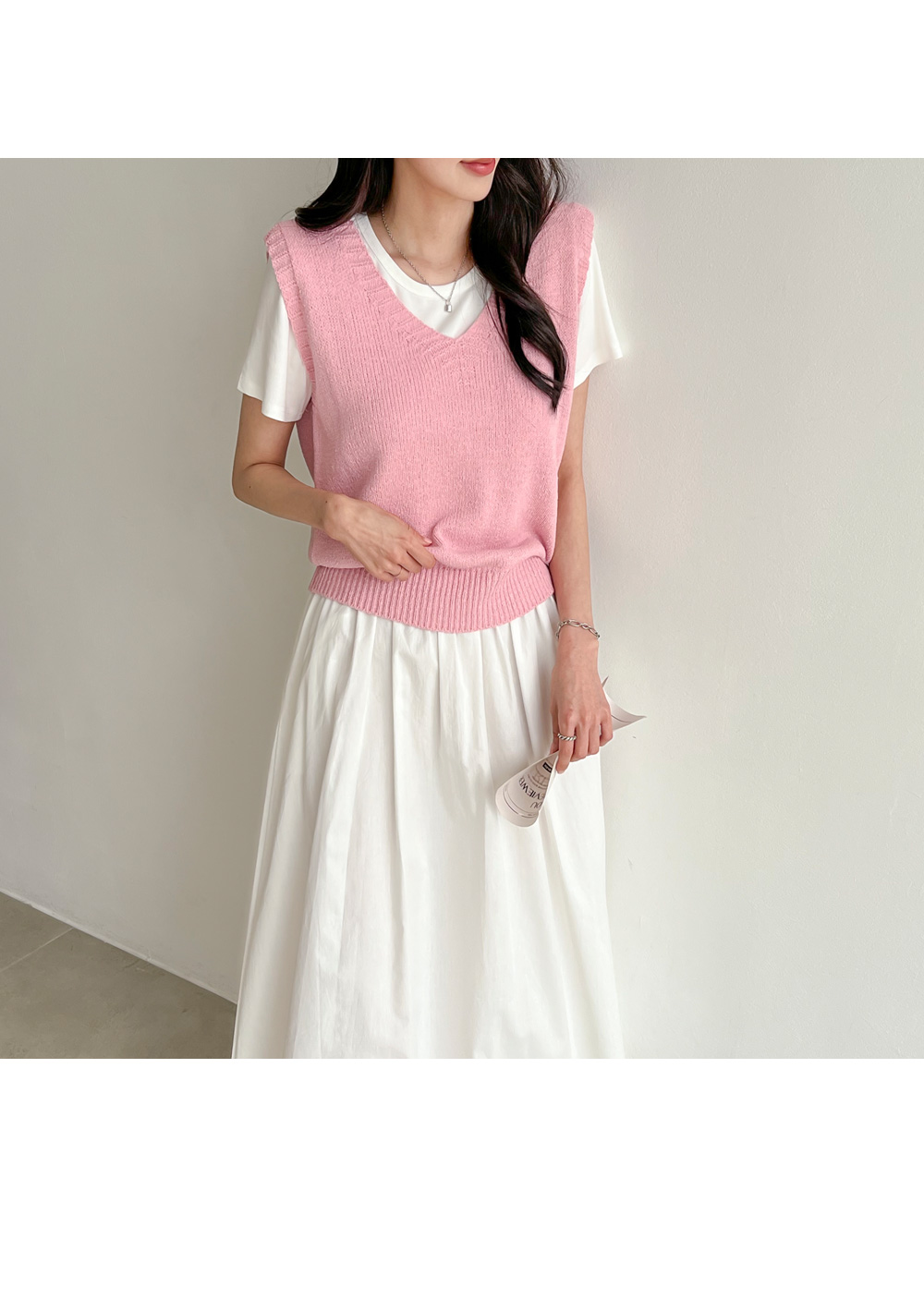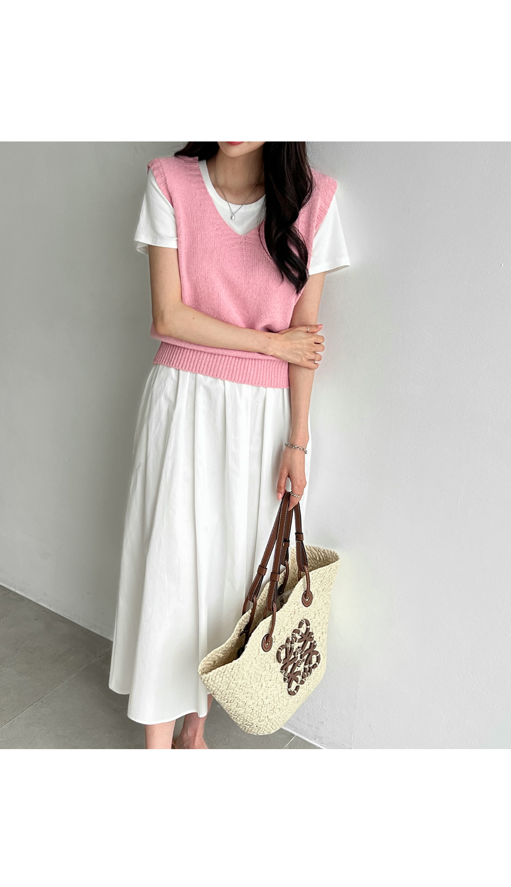 2종택1 나시or 반팔 라운드넥 롱 원피스 #38521,#38522