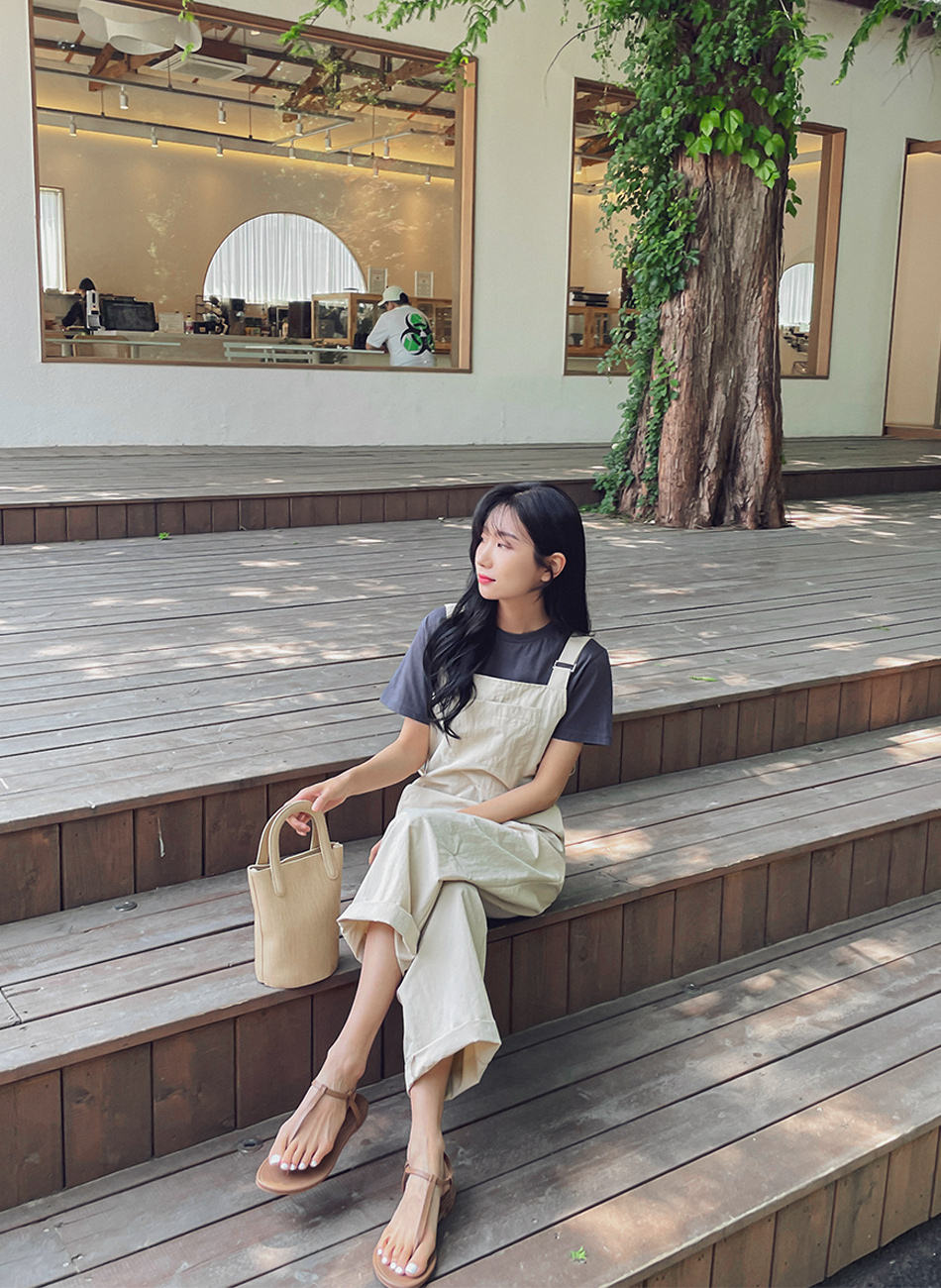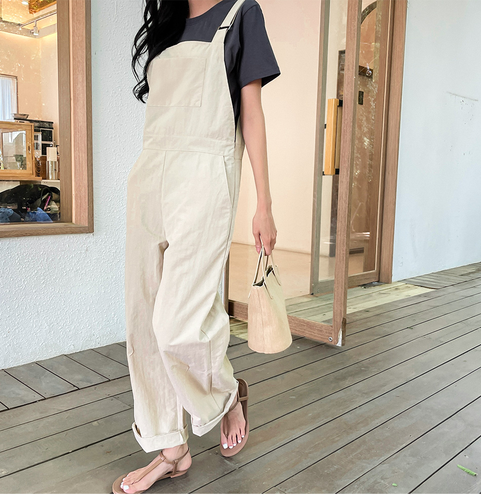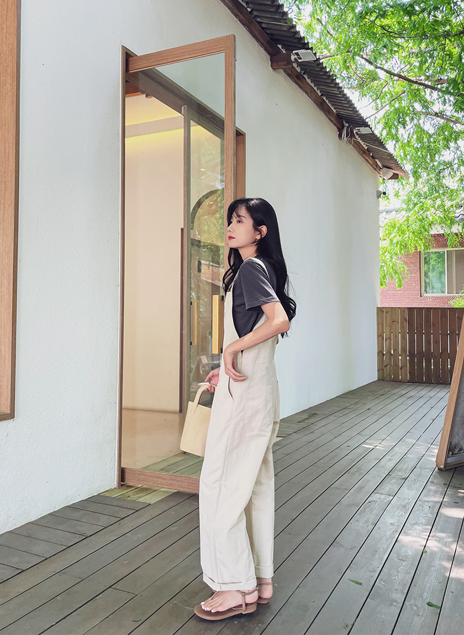 Montblanc crumbly jumpsuit-2color, crumbly comfortable fabric-Can be layered with various tops!-Only navy! - Style Tee