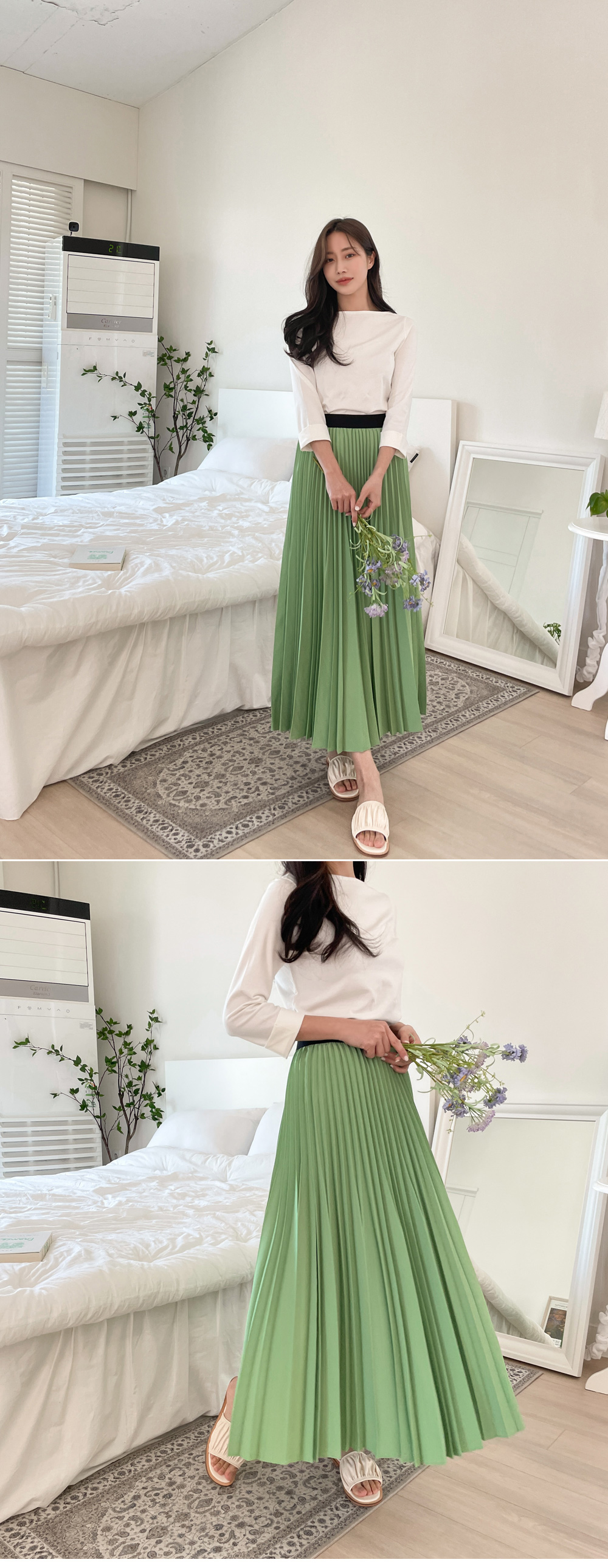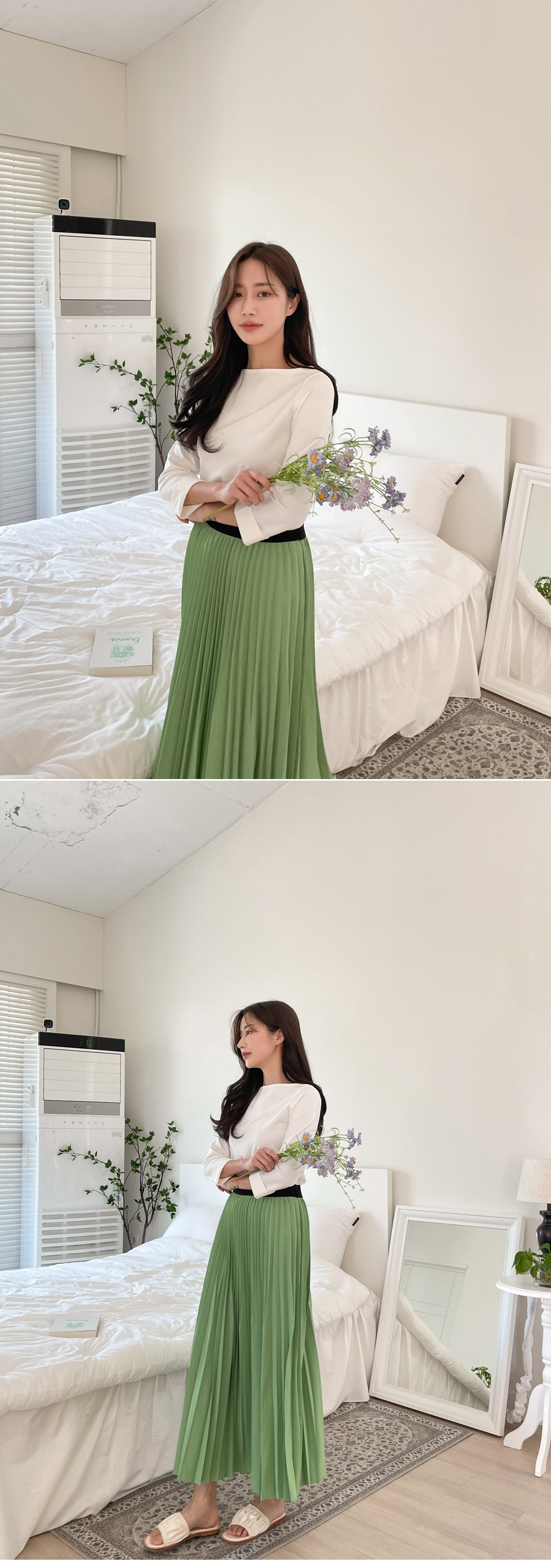 Moldy Banding Pleated Skirt_F(44~77)-5color, fresh color - Pleated detail that is alive with every movement - Style Tiva