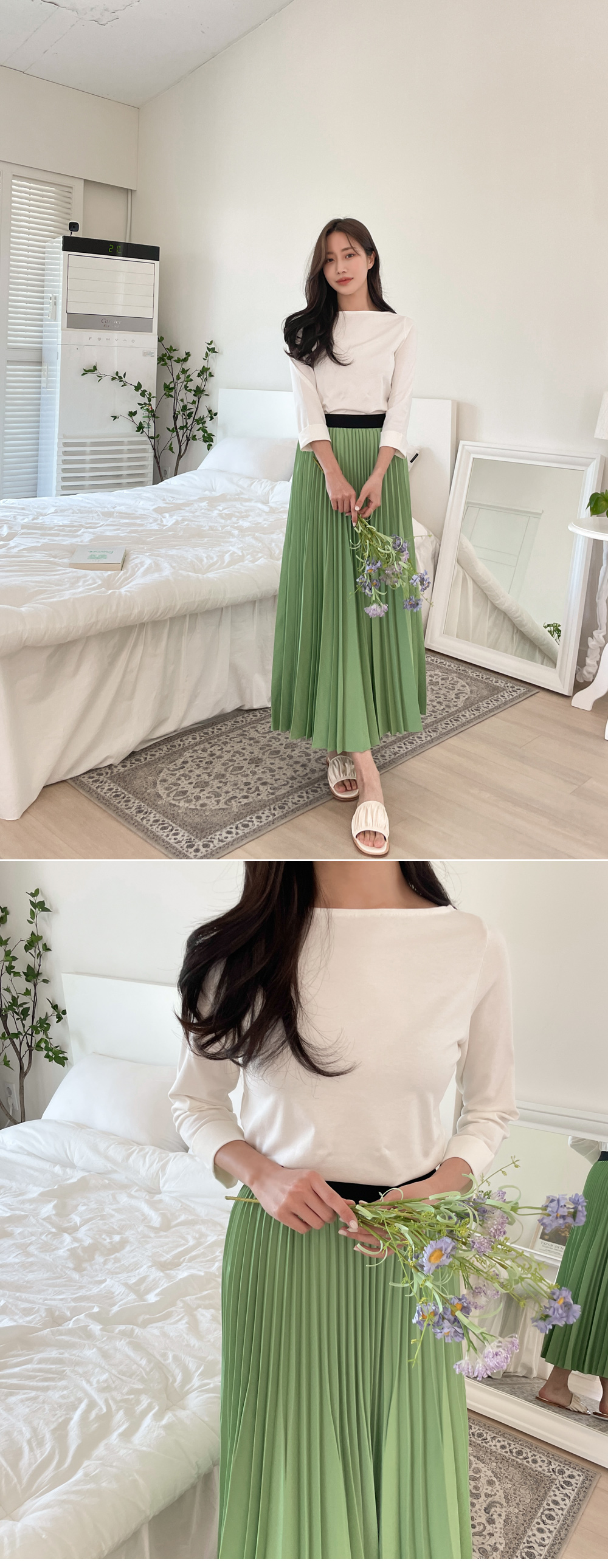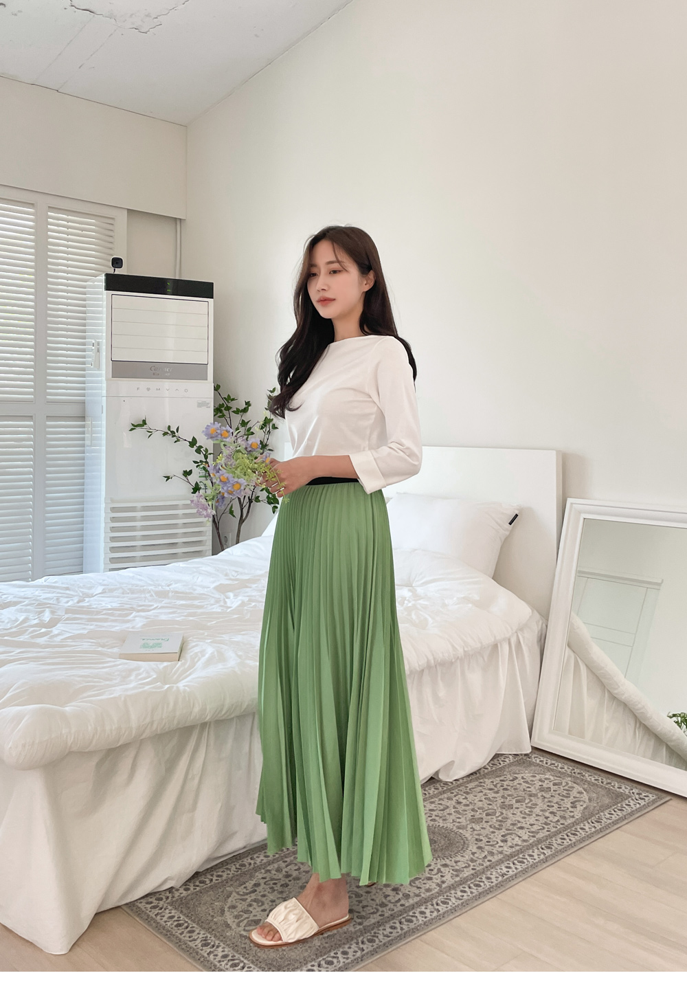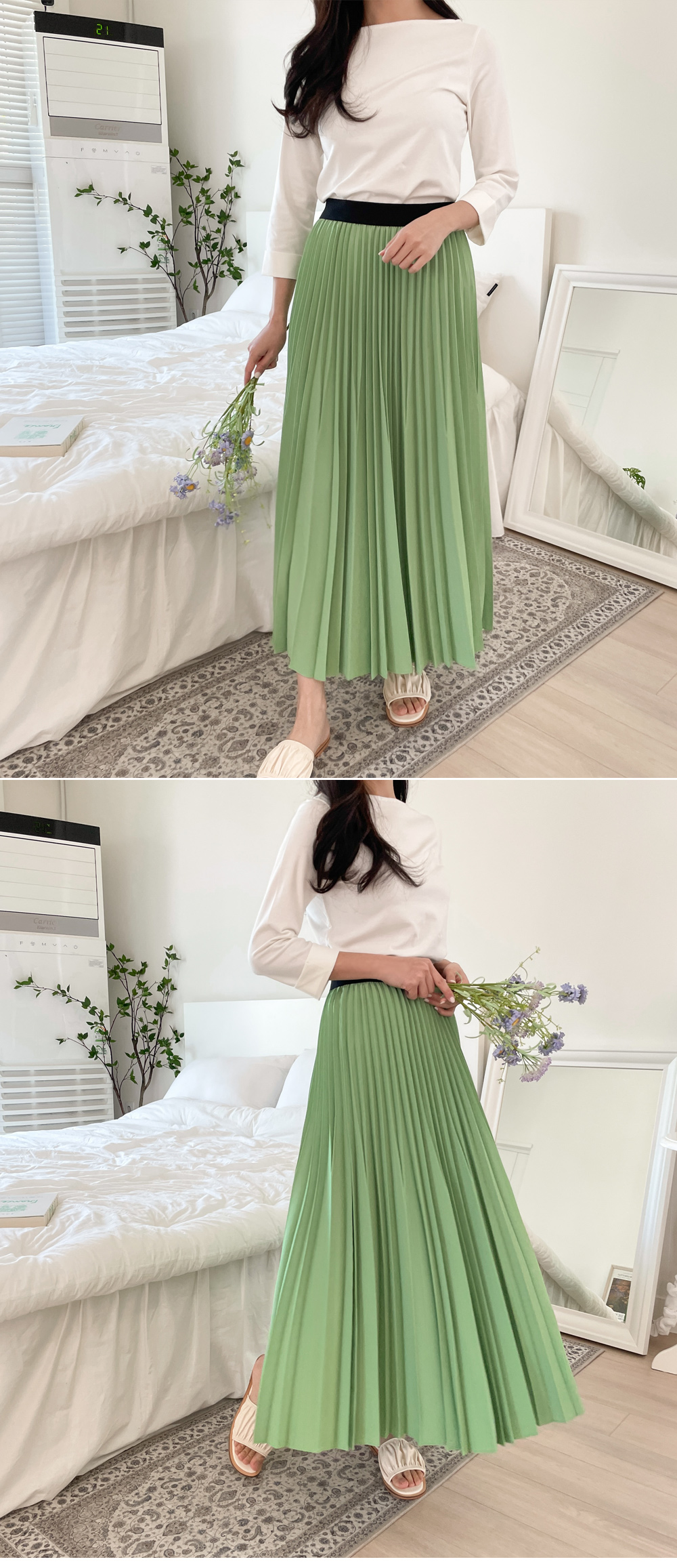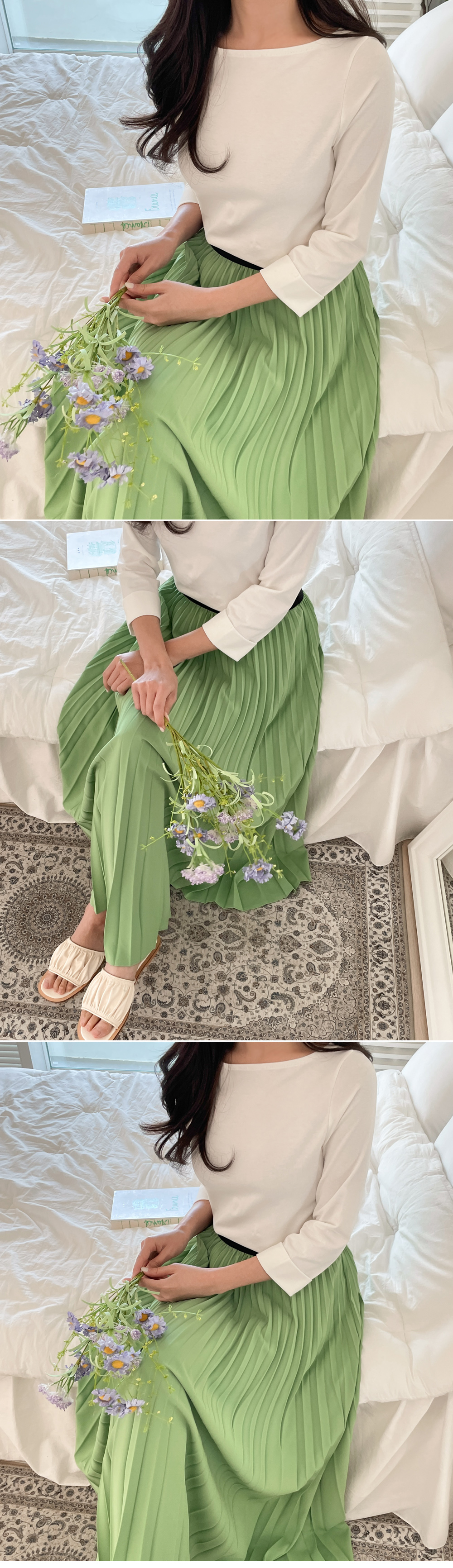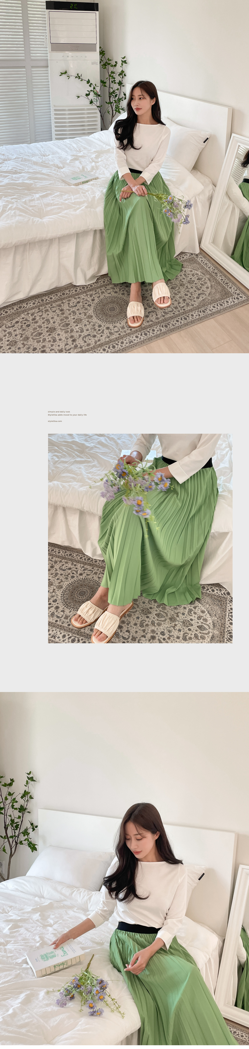 로맨틱분위기를 만들어주는 플리츠스커트