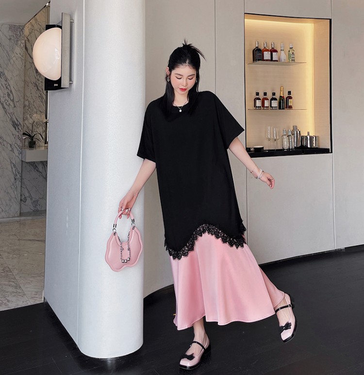 아만다 핑크플레어 롱원피스 - 박시한 빅사이즈 원피스