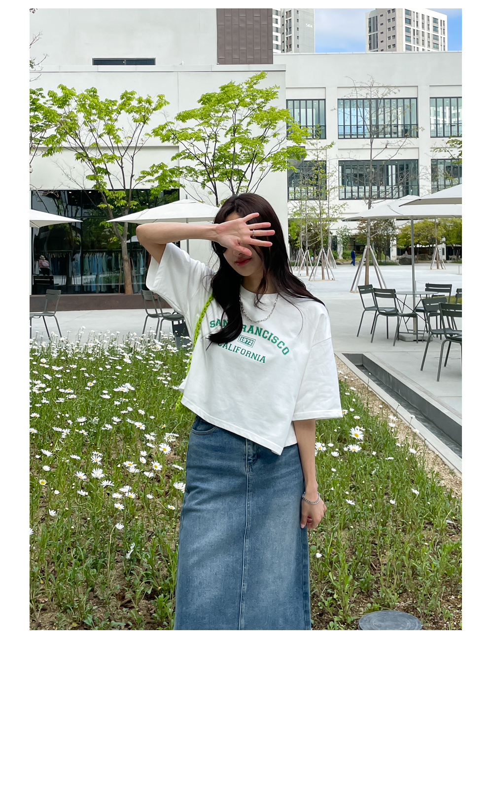 티셔츠,블라우스 등 매치하는 상의에 따라 다른 느낌으로