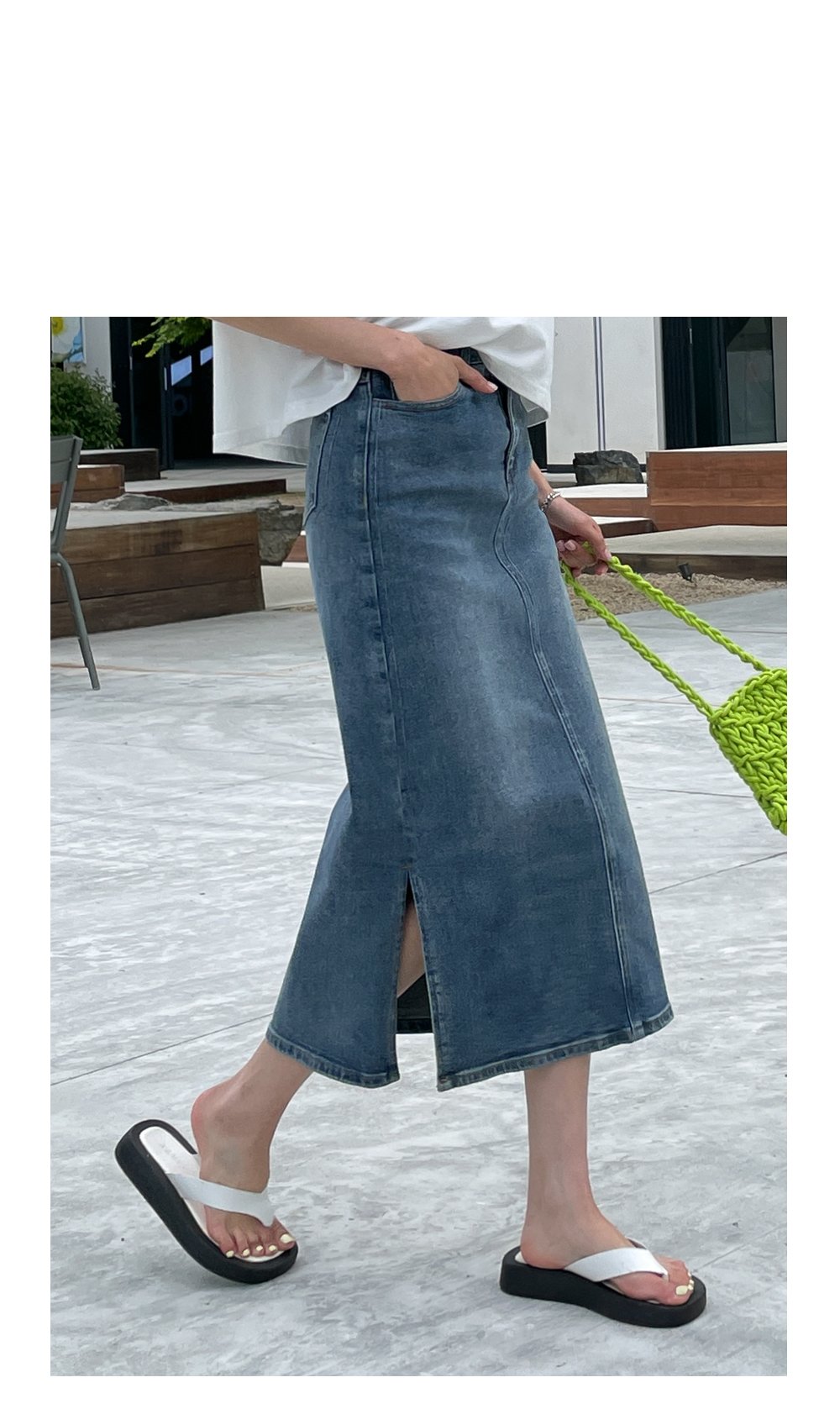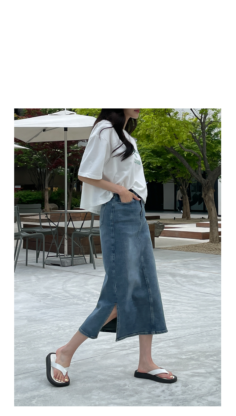 데님 슬릿 롱 스커트 #53257