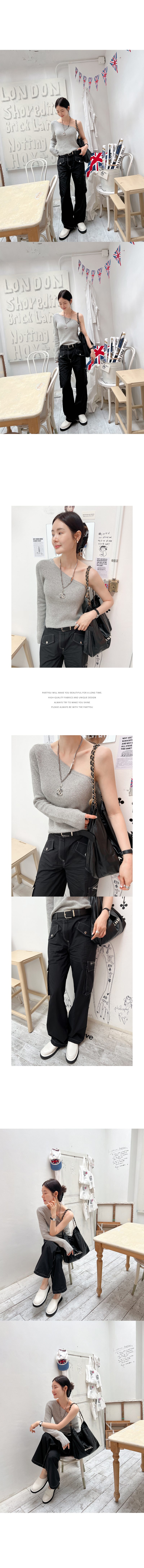 선사해 주는 니트입니다. 한 쪽 어깨가 드러나는