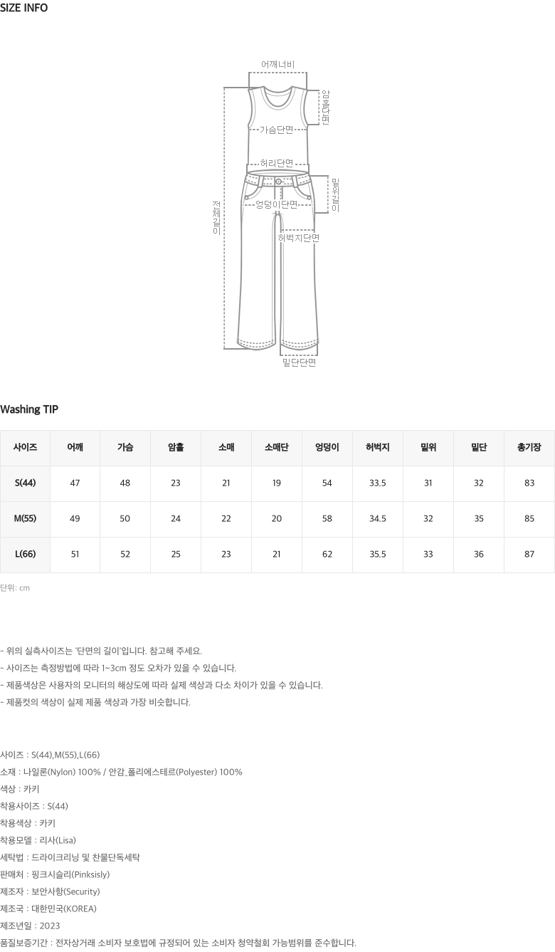 | 비침 | 밝은컬러의 경우 어두운 톤의 이너를 착용할 경우 비침이 있을 수 있습니다 |