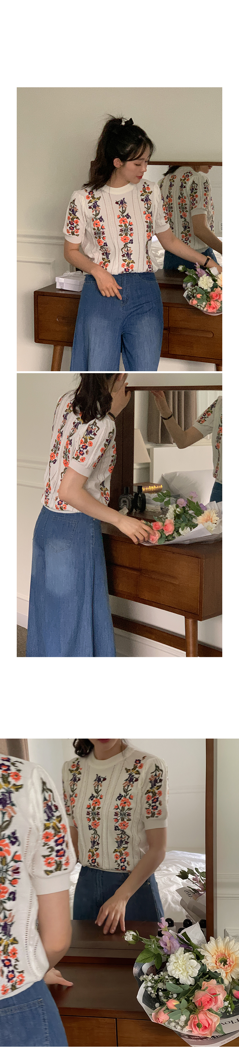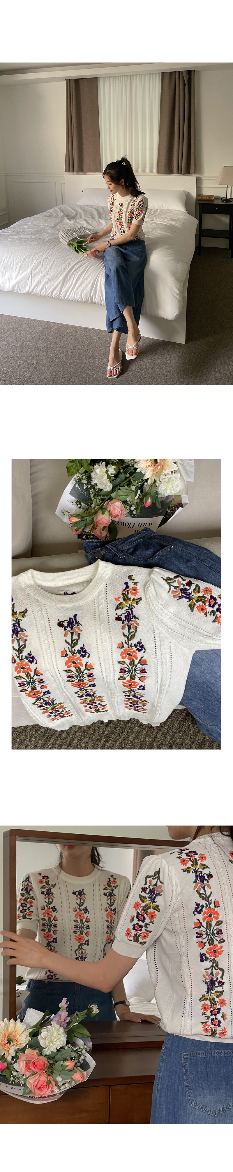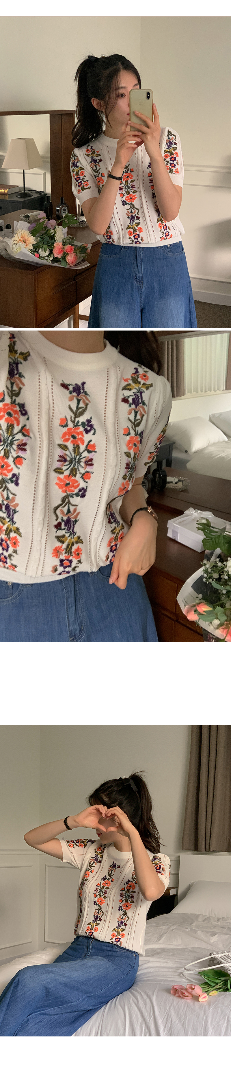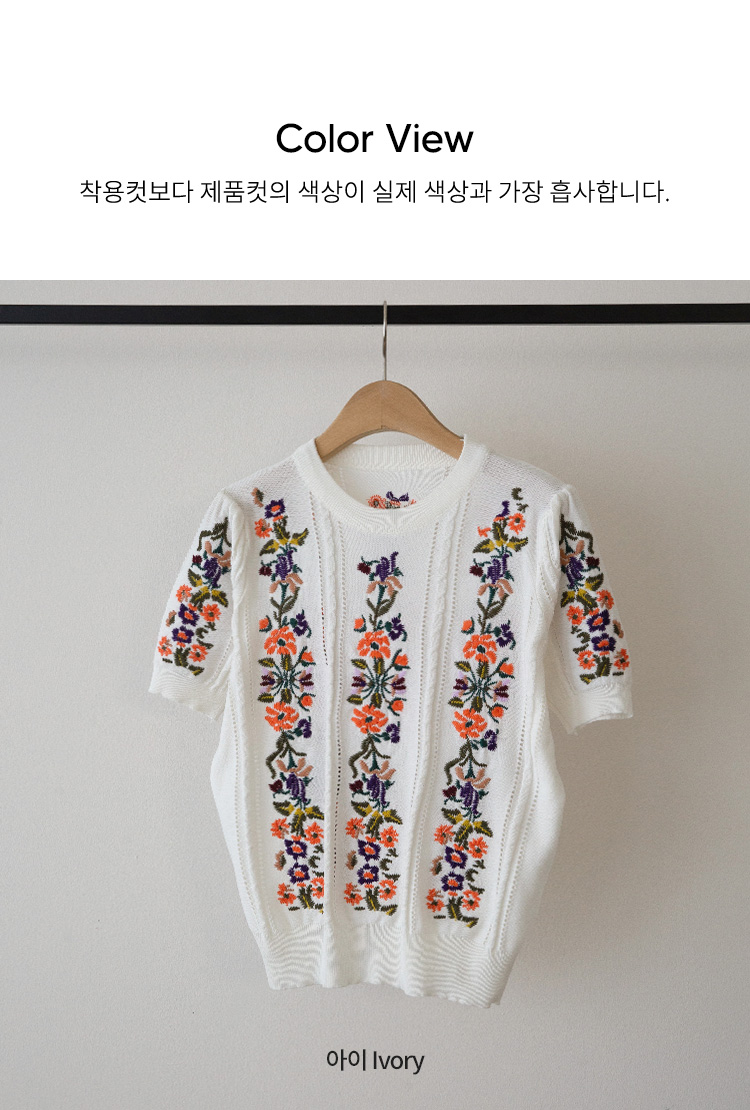 케미 플라 자수 반팔 니트