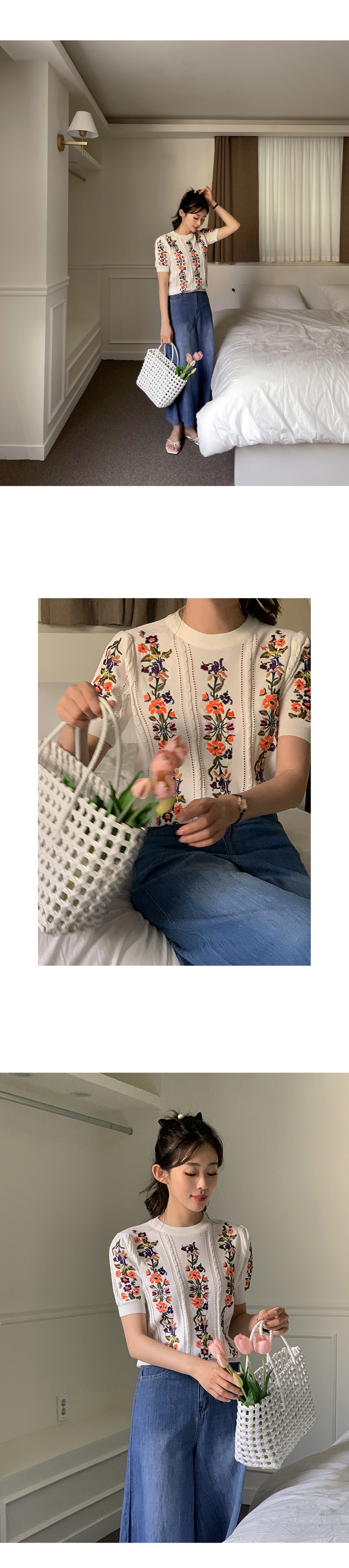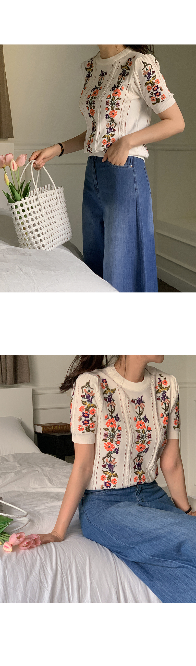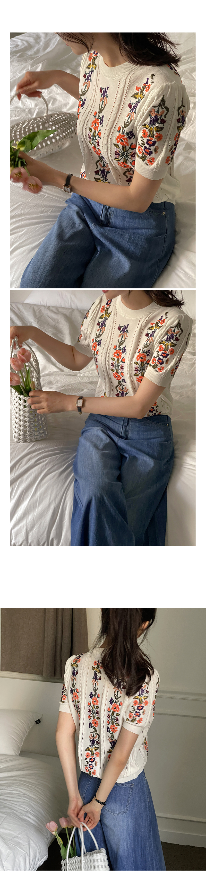 케미 플라 자수 반팔 니트