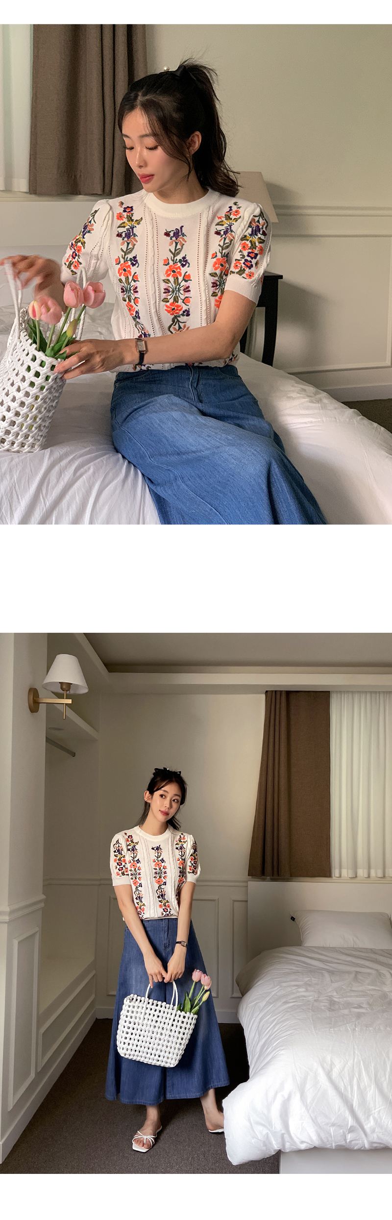 큐롯 데님 팬츠와 매치하면