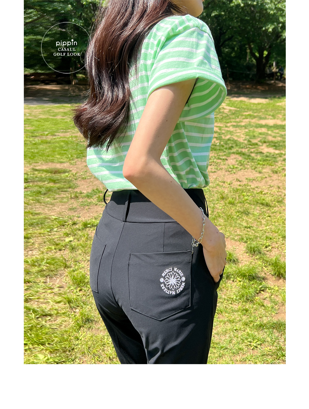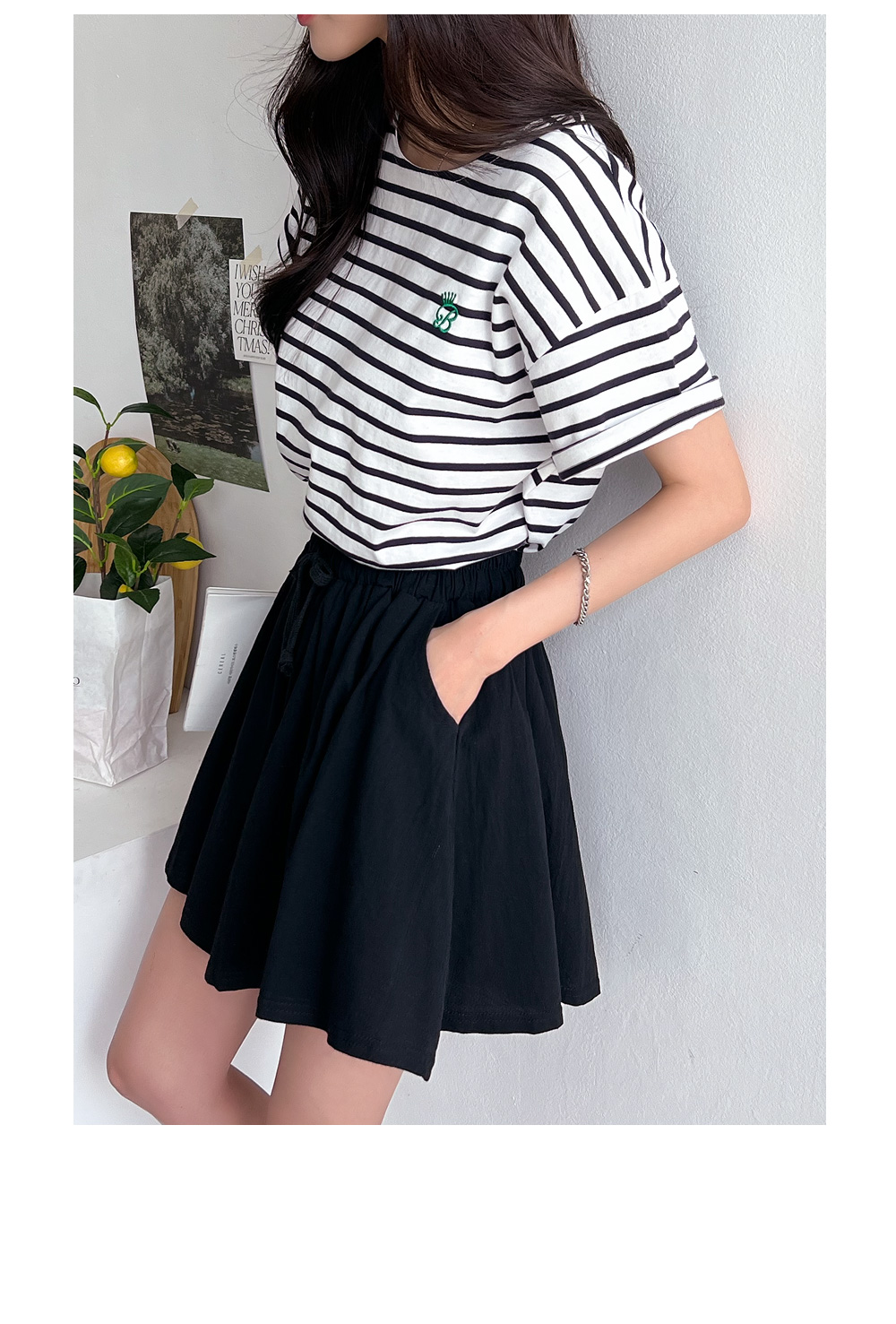 경쾌하게 캐주얼한 무드의 스트라이프 패턴에