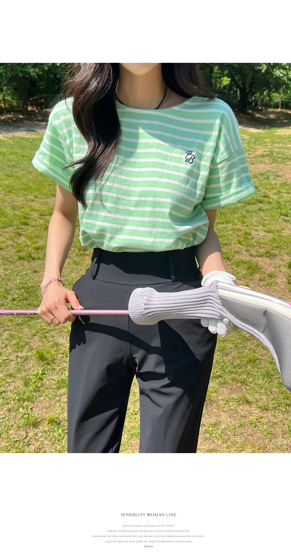 [골프&일상] 스트라이프 B자수 티셔츠 #110694