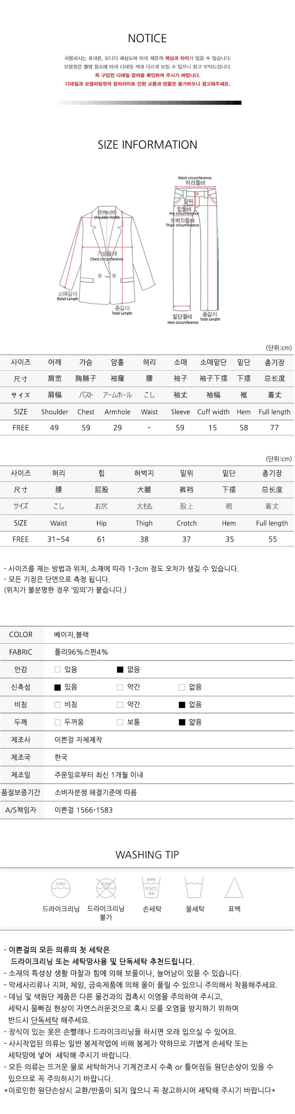 꼼꼼히 상세 사이즈표를 확인하여 주세요