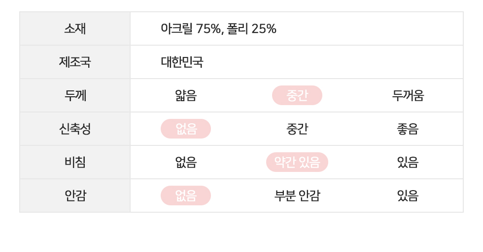 까슬거림 없이 부드러운 아크릴 혼방 원단으로
