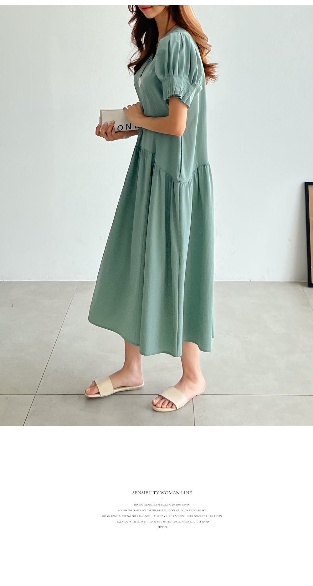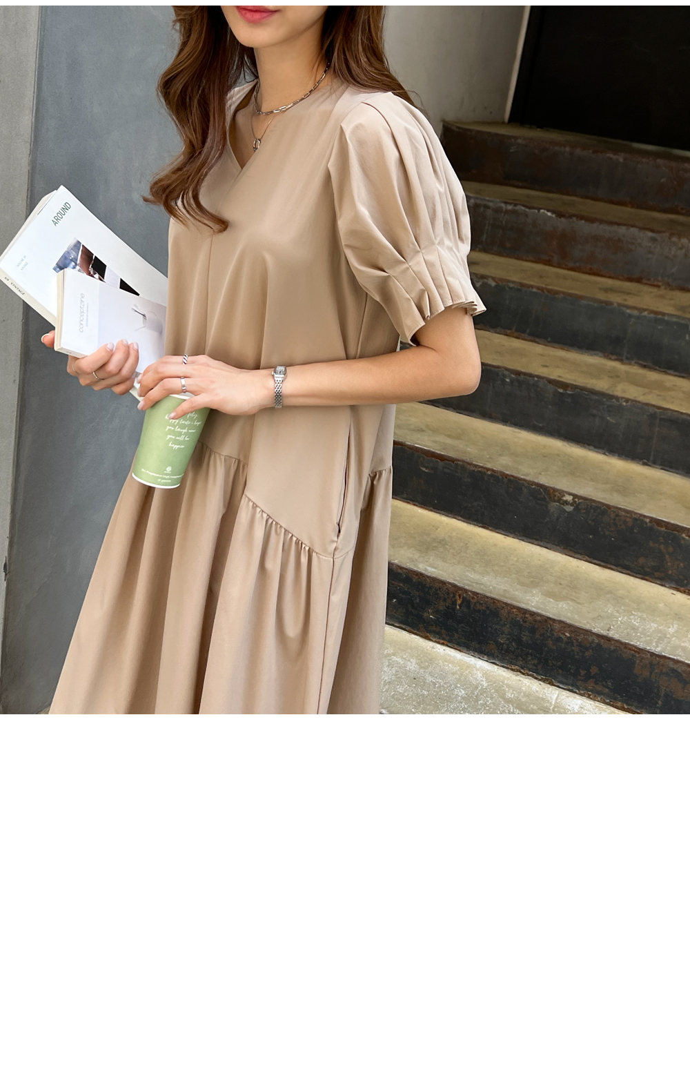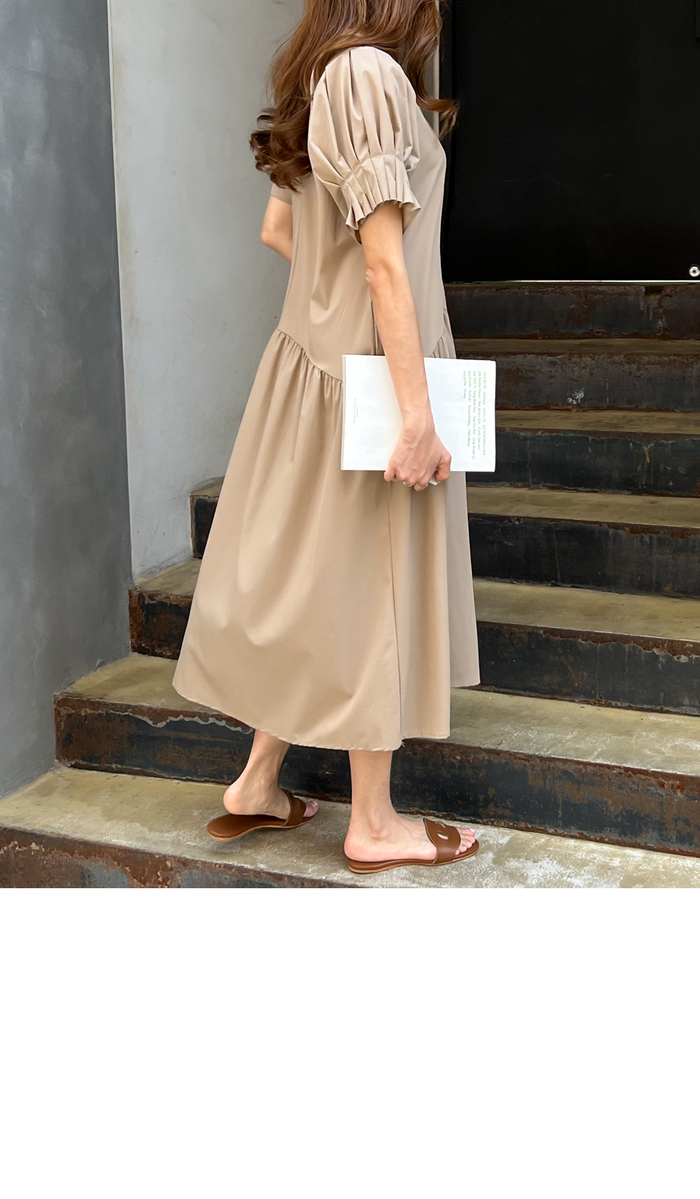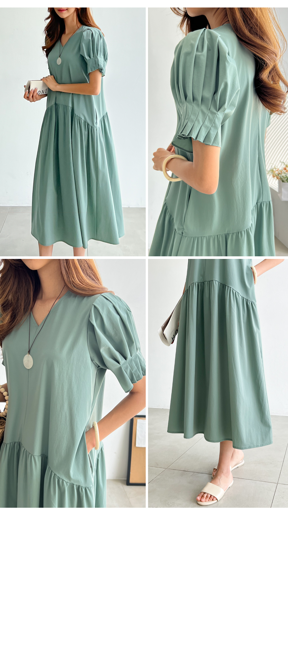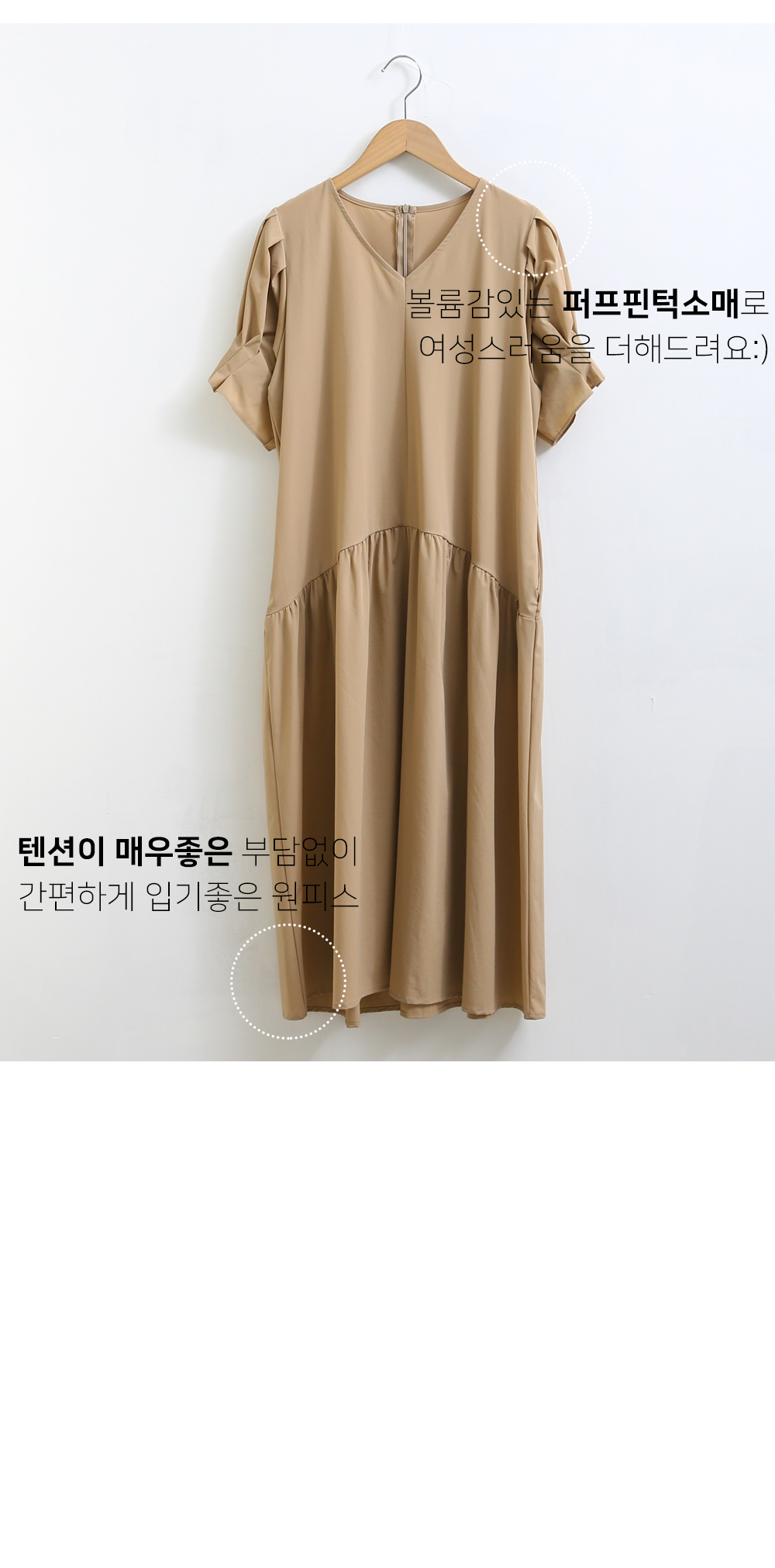 자체제작/ 퍼프 핀턱 소매 텐션 원피스 #38538