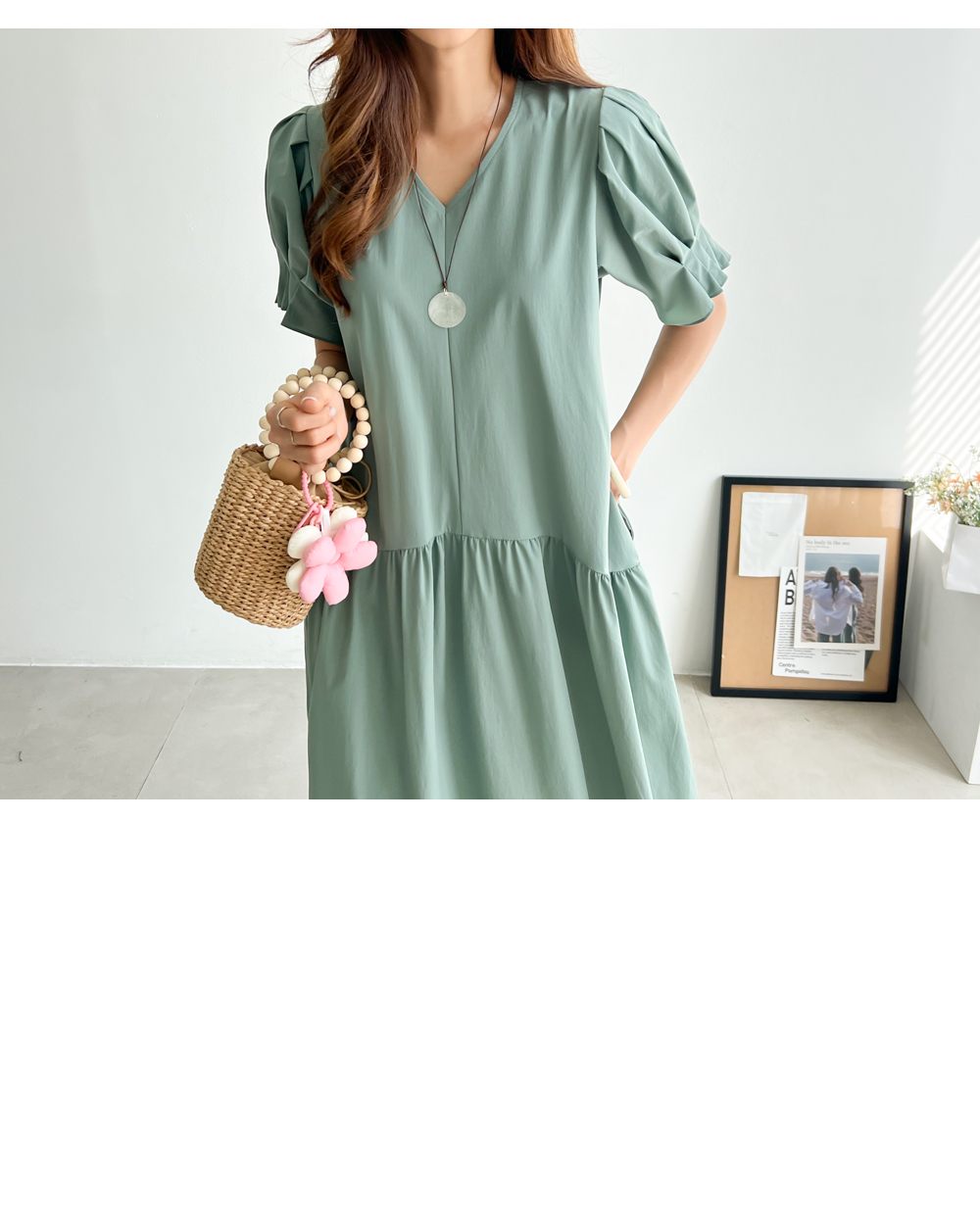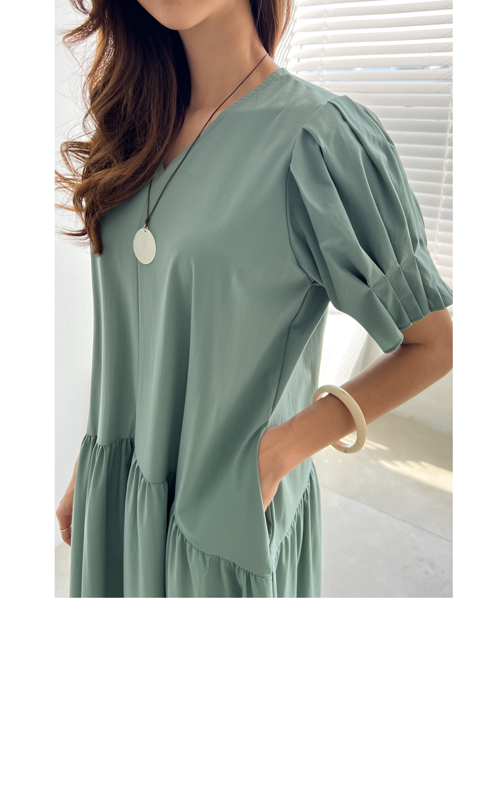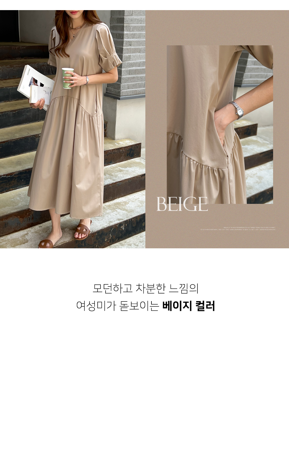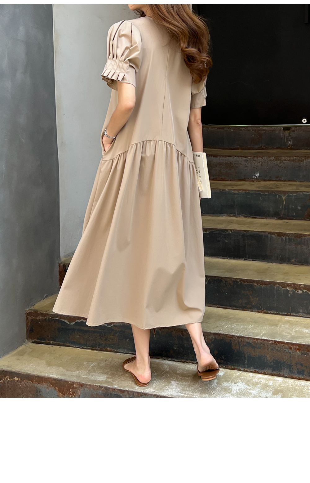 자체제작/ 퍼프 핀턱 소매 텐션 원피스 #38538