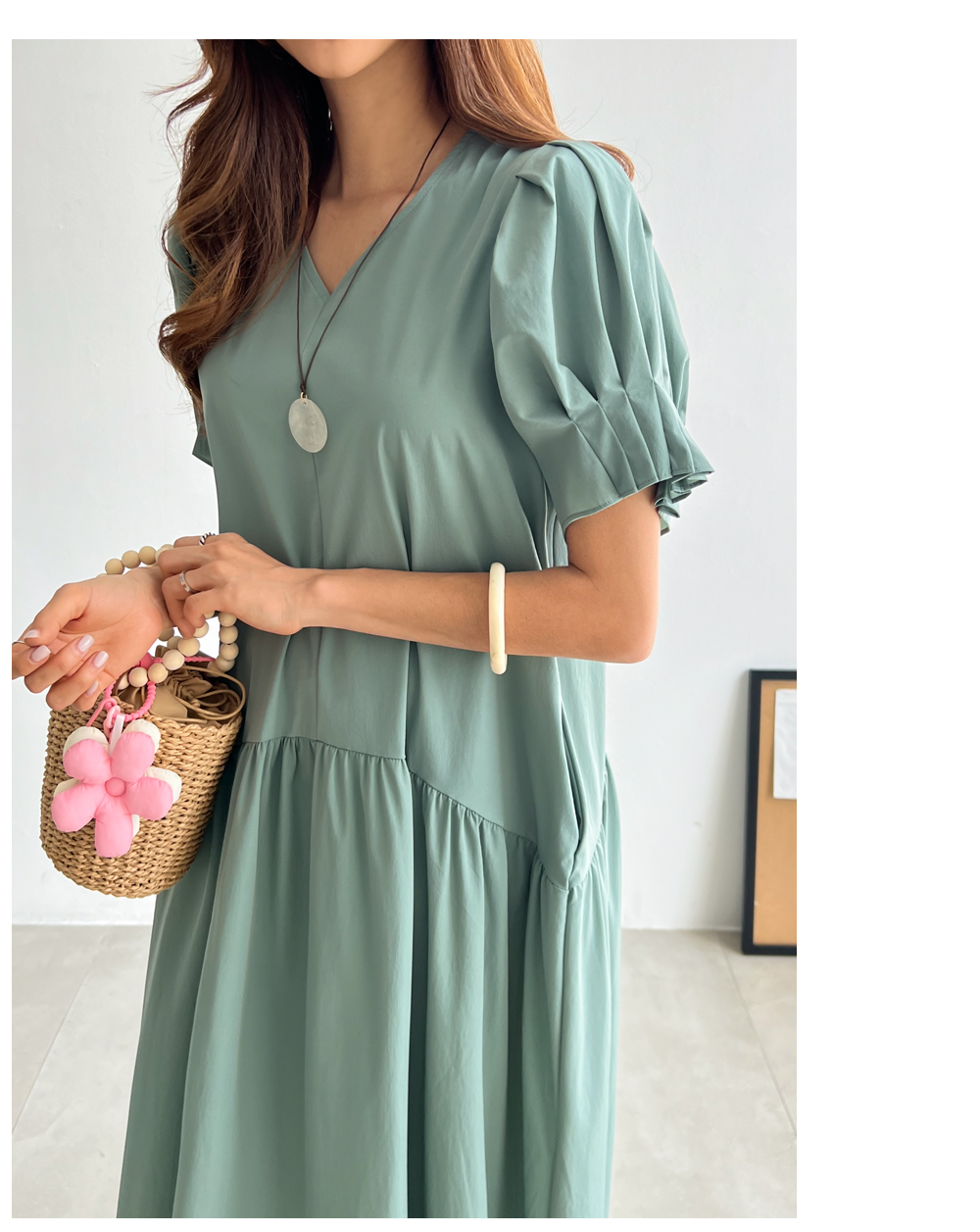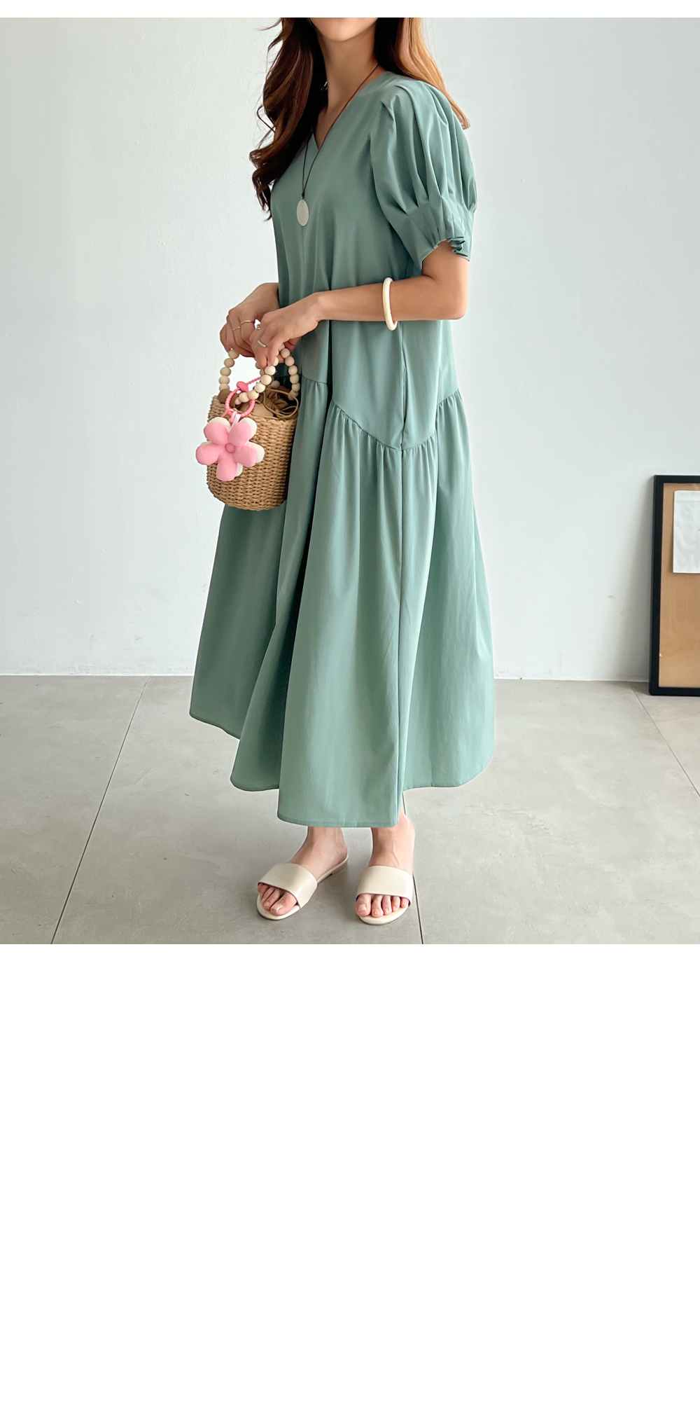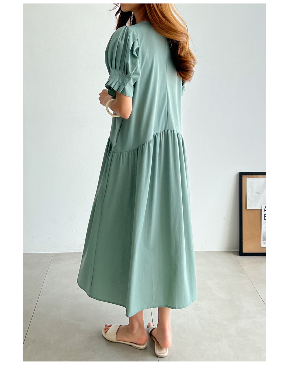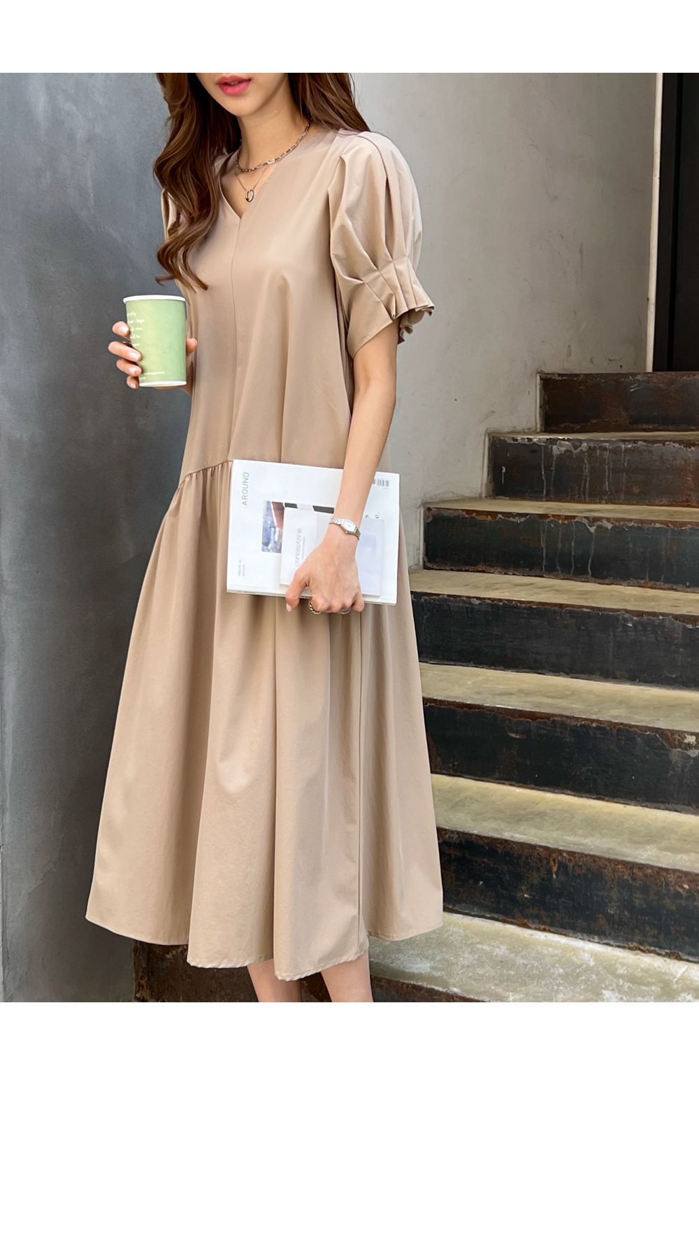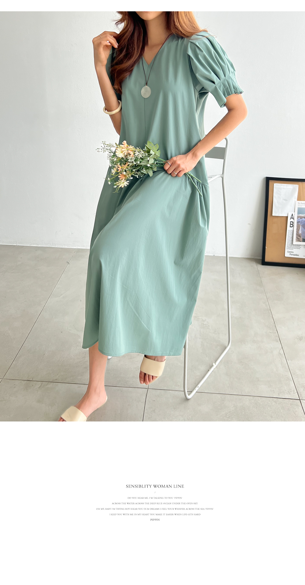 자체제작/ 퍼프 핀턱 소매 텐션 원피스 #38538