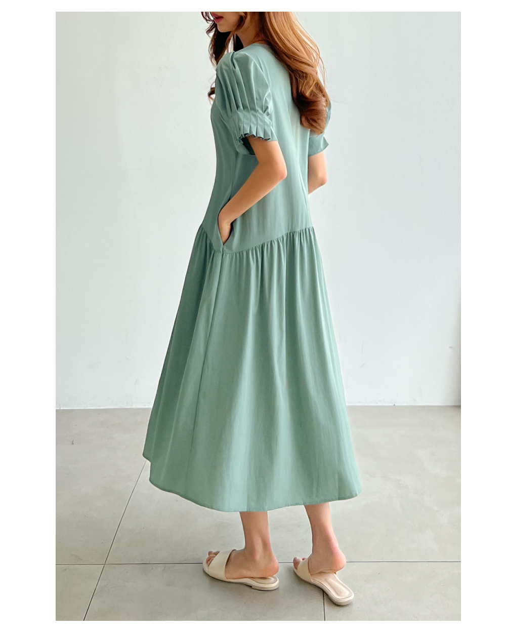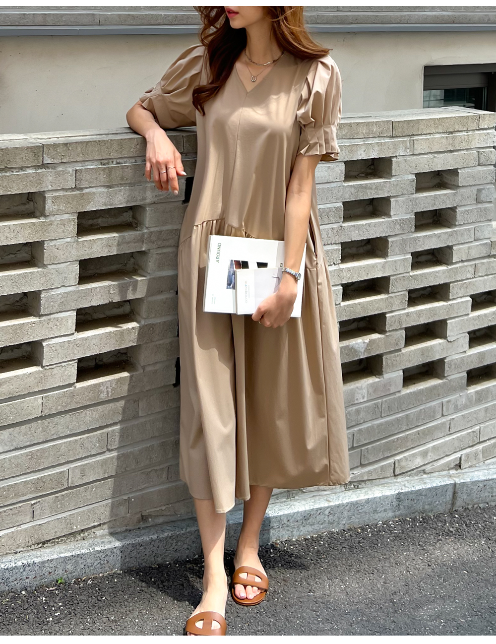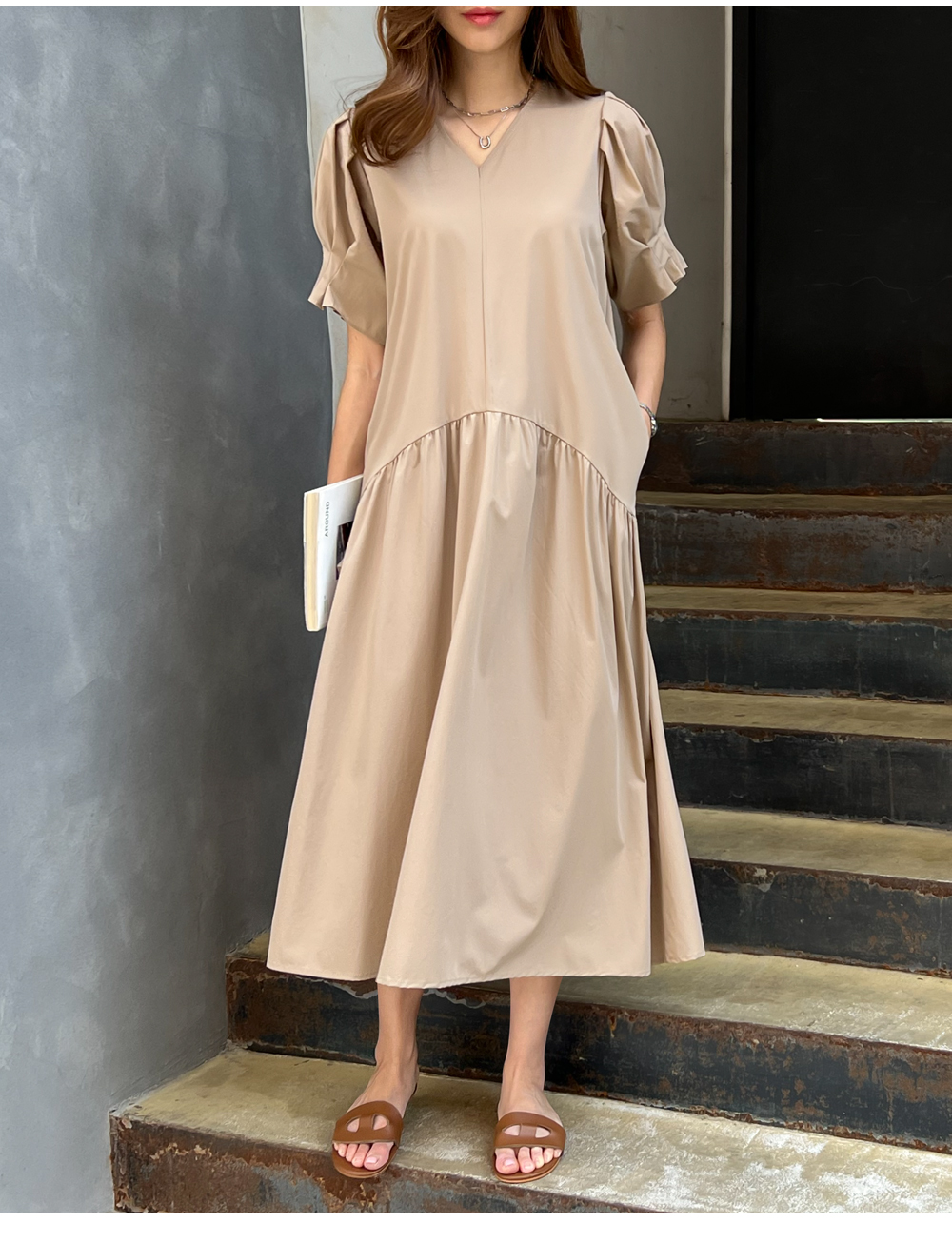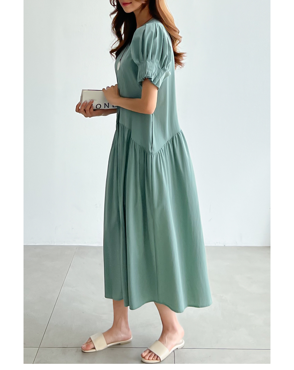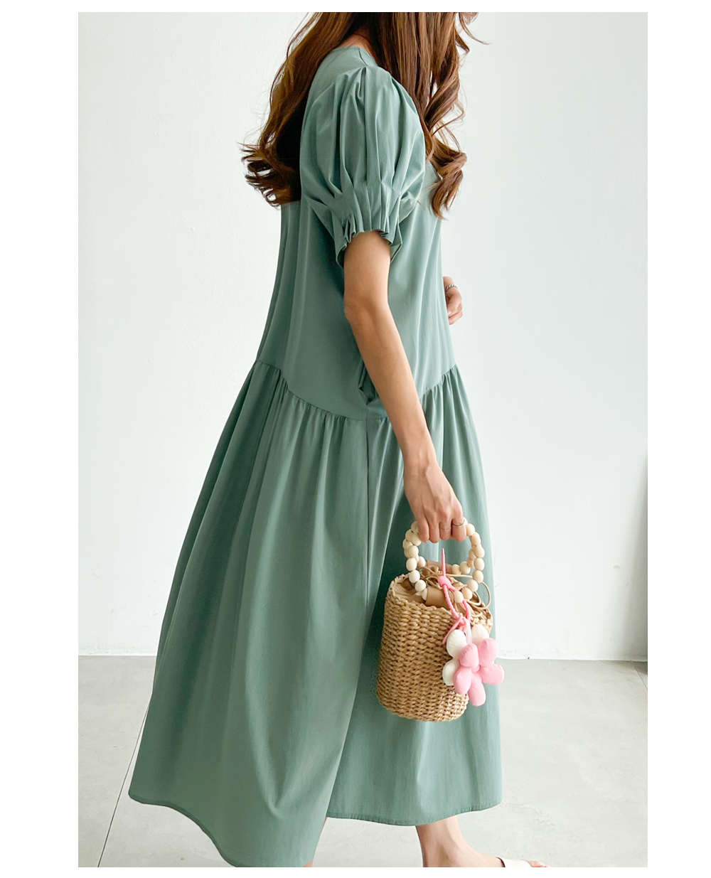 자체제작/ 퍼프 핀턱 소매 텐션 원피스 #38538